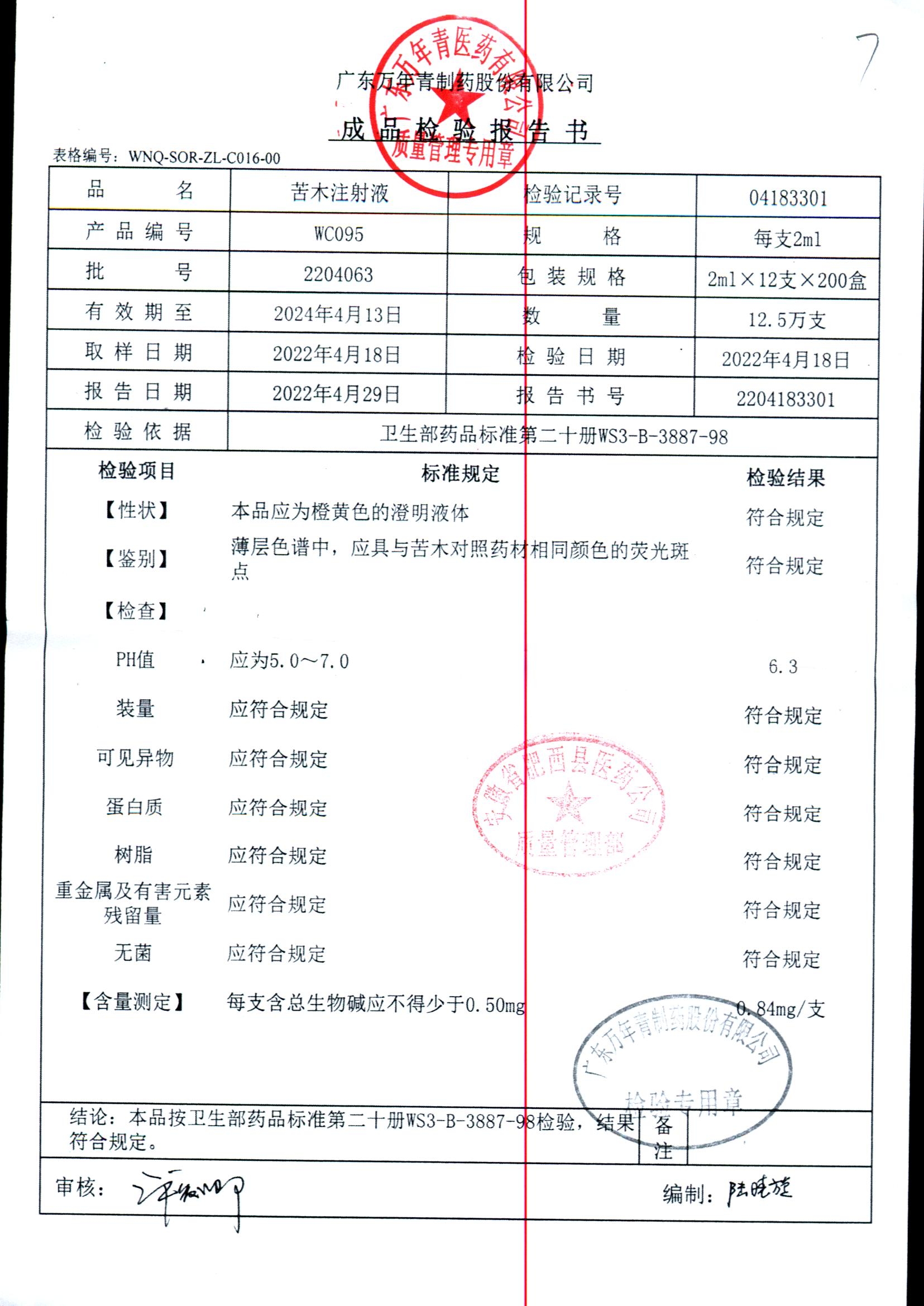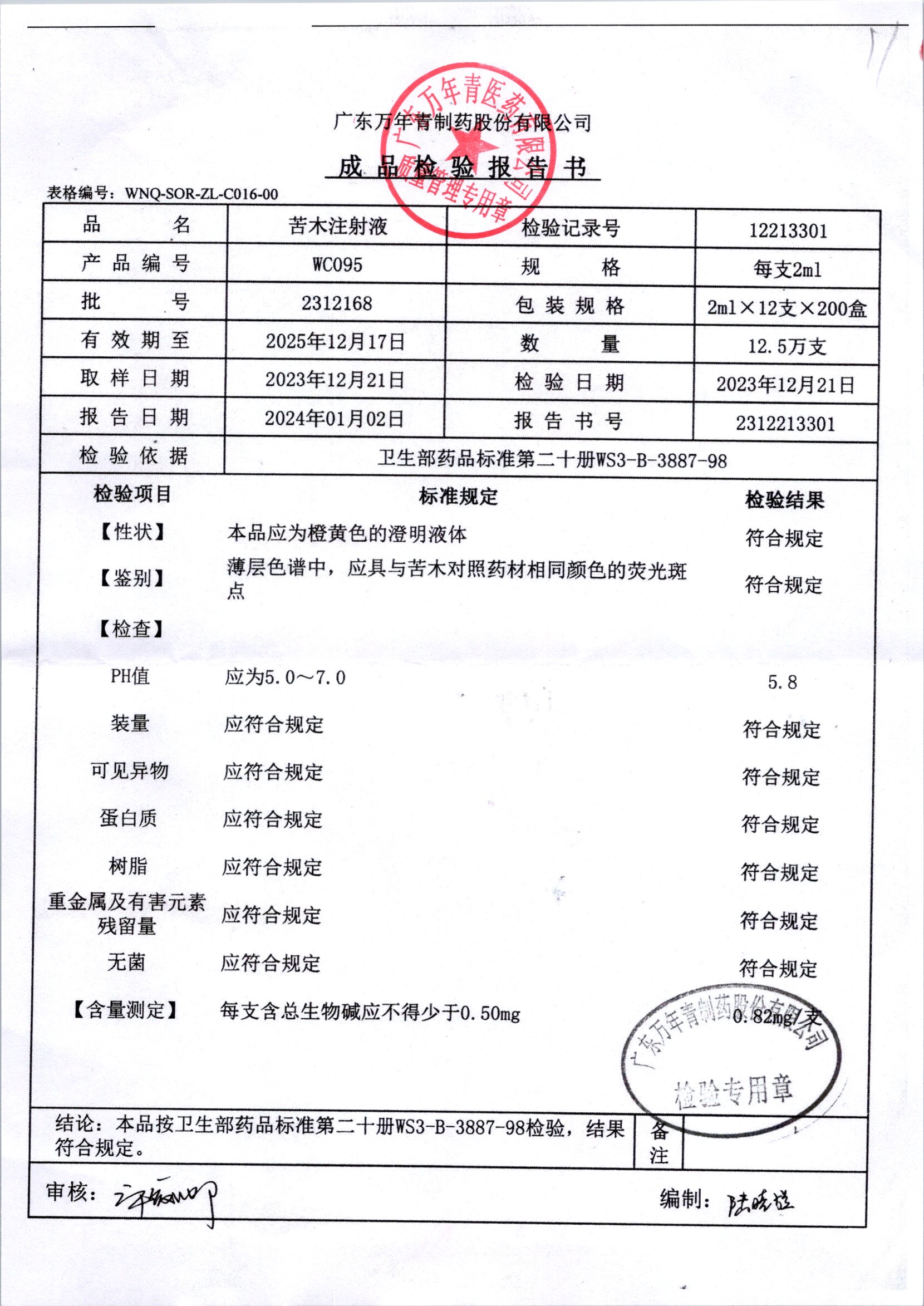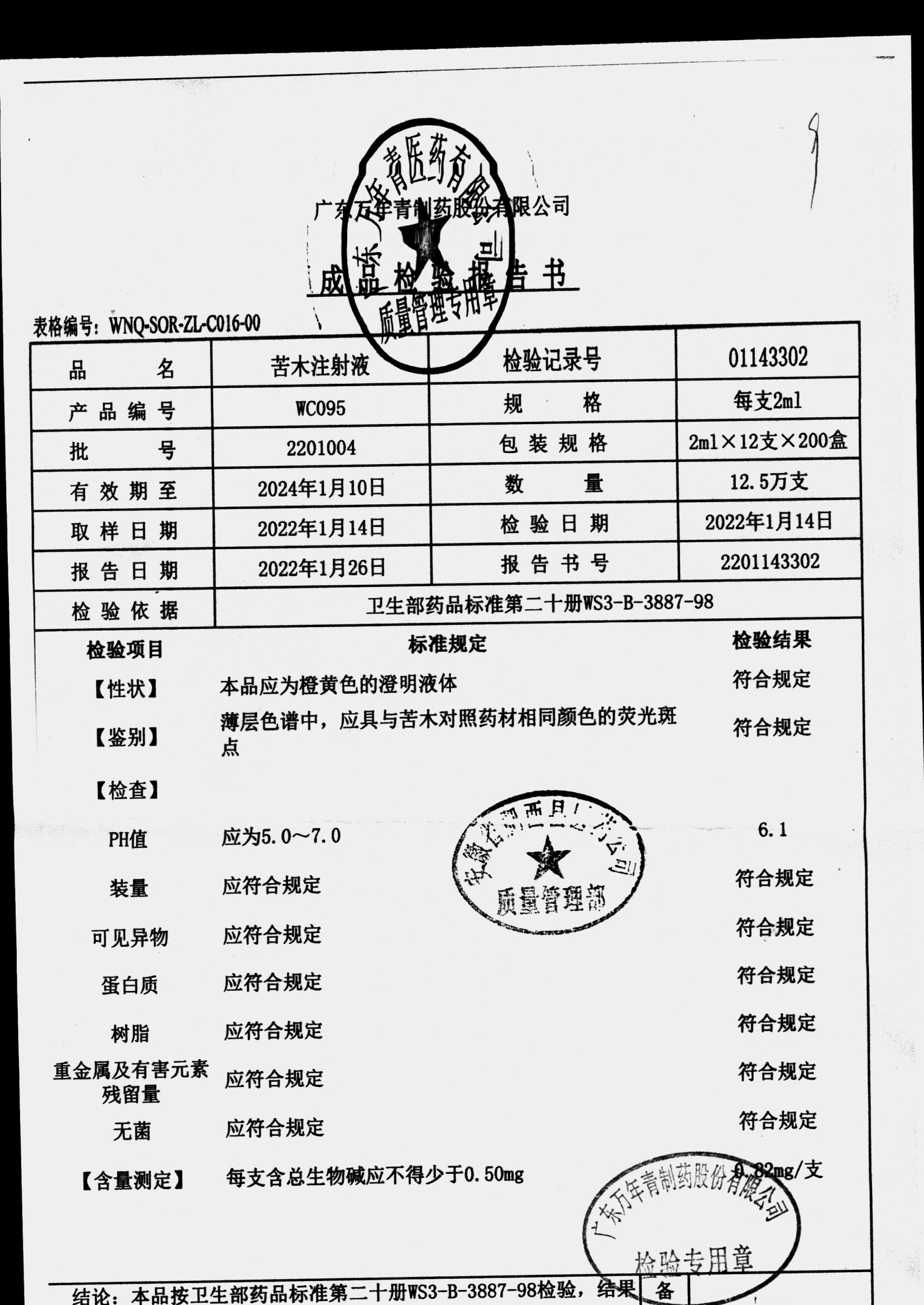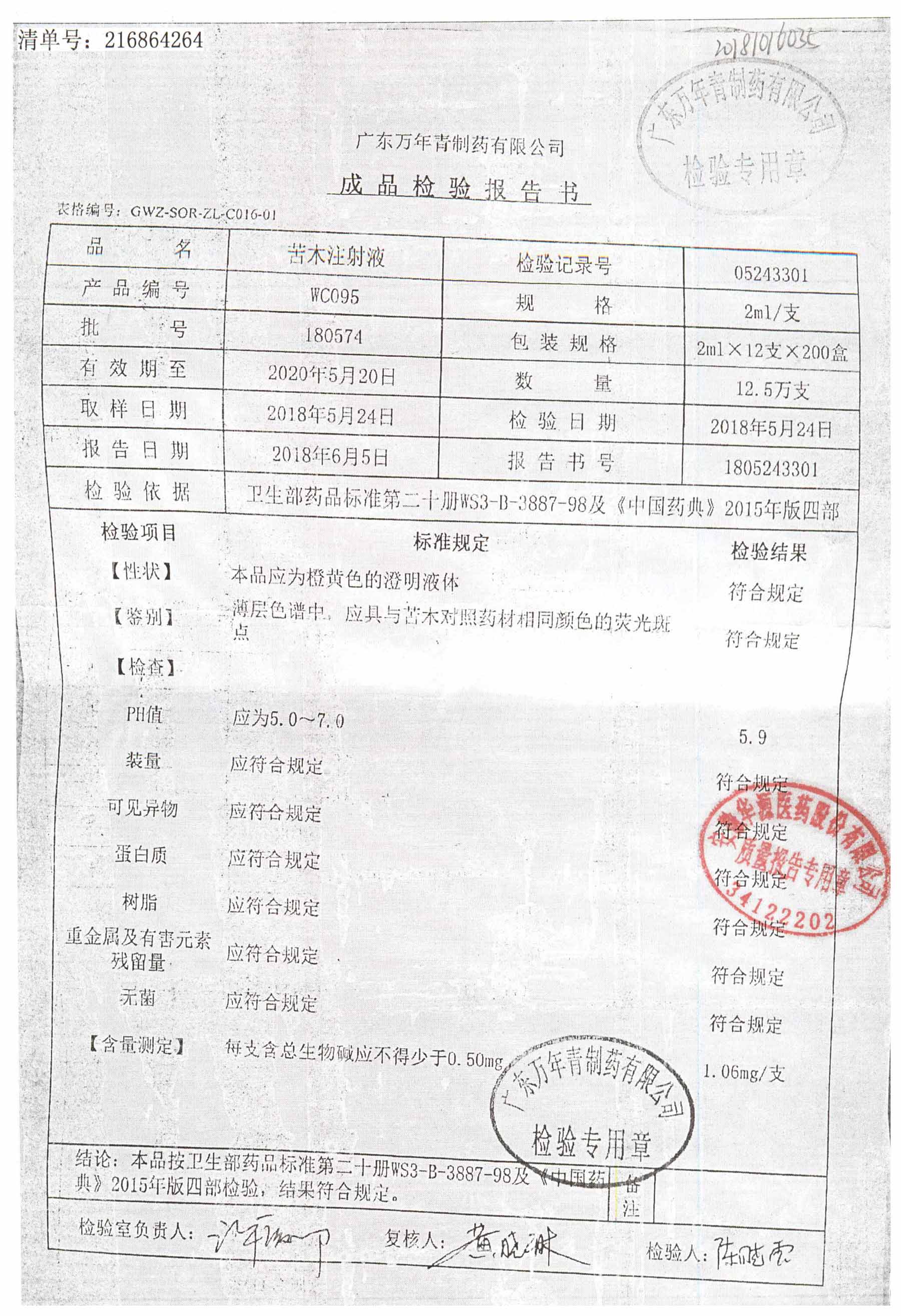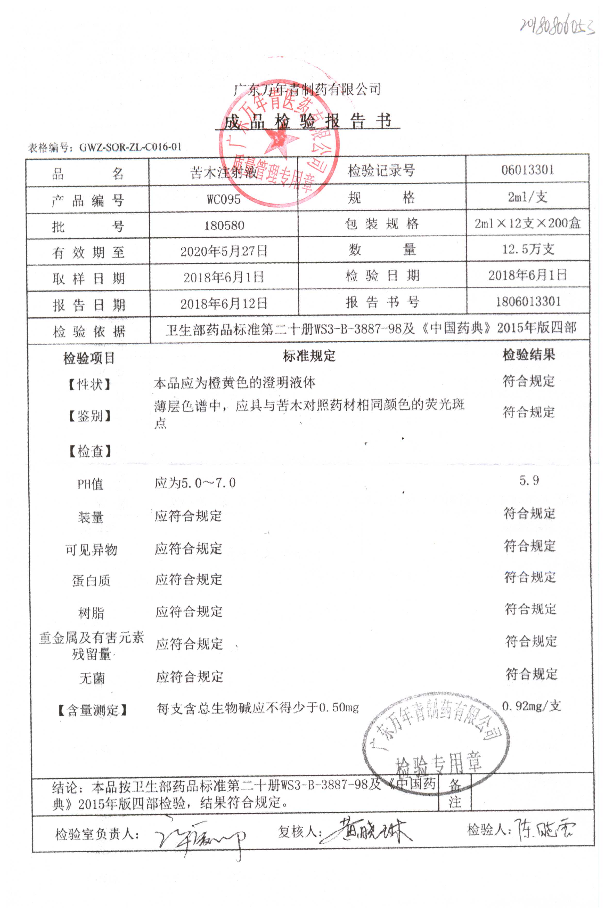 苦木注射液 | 2ml | 210115 | 查看详情 |