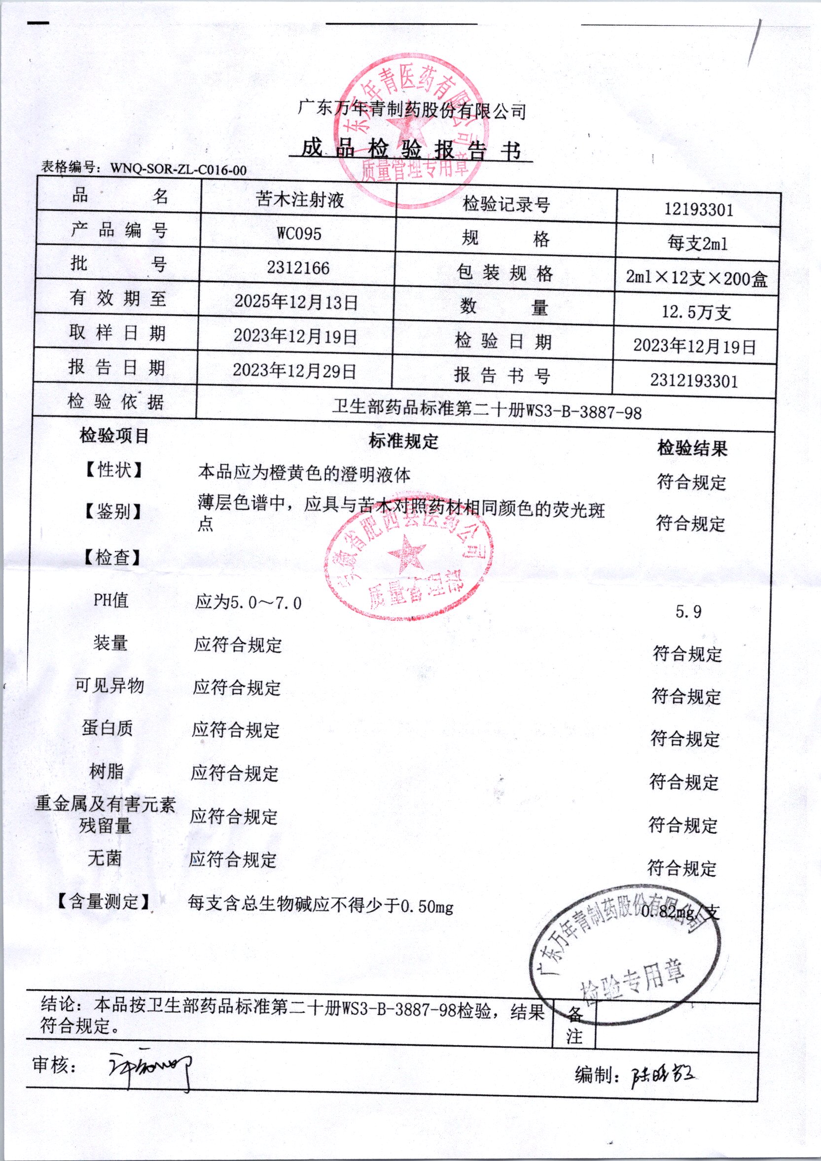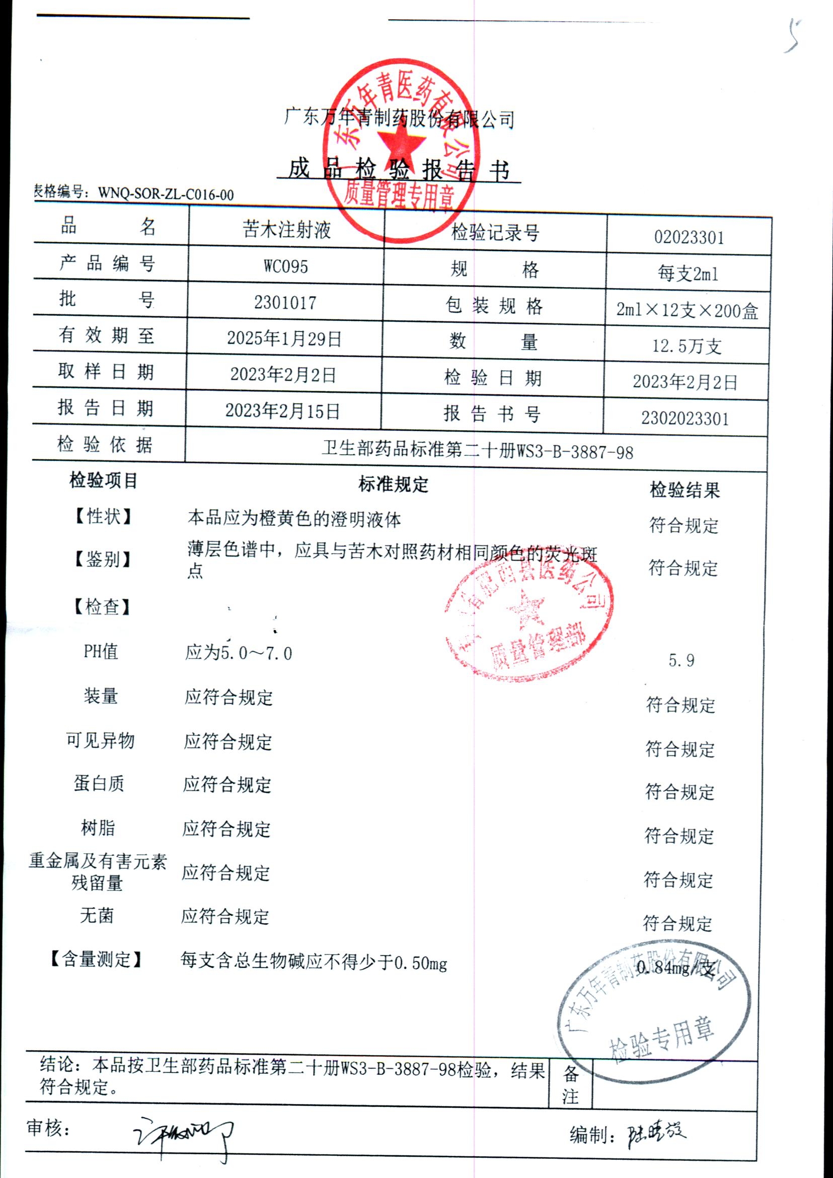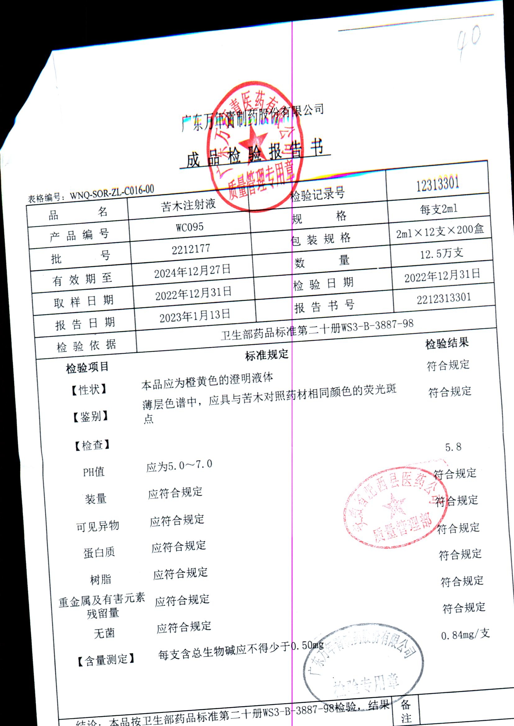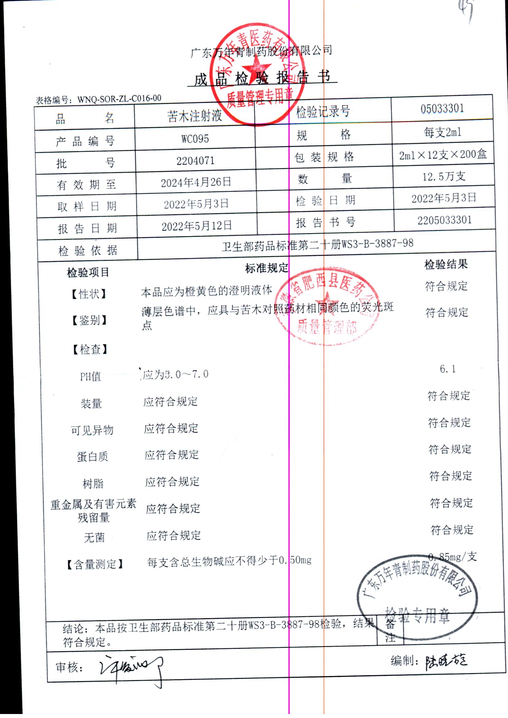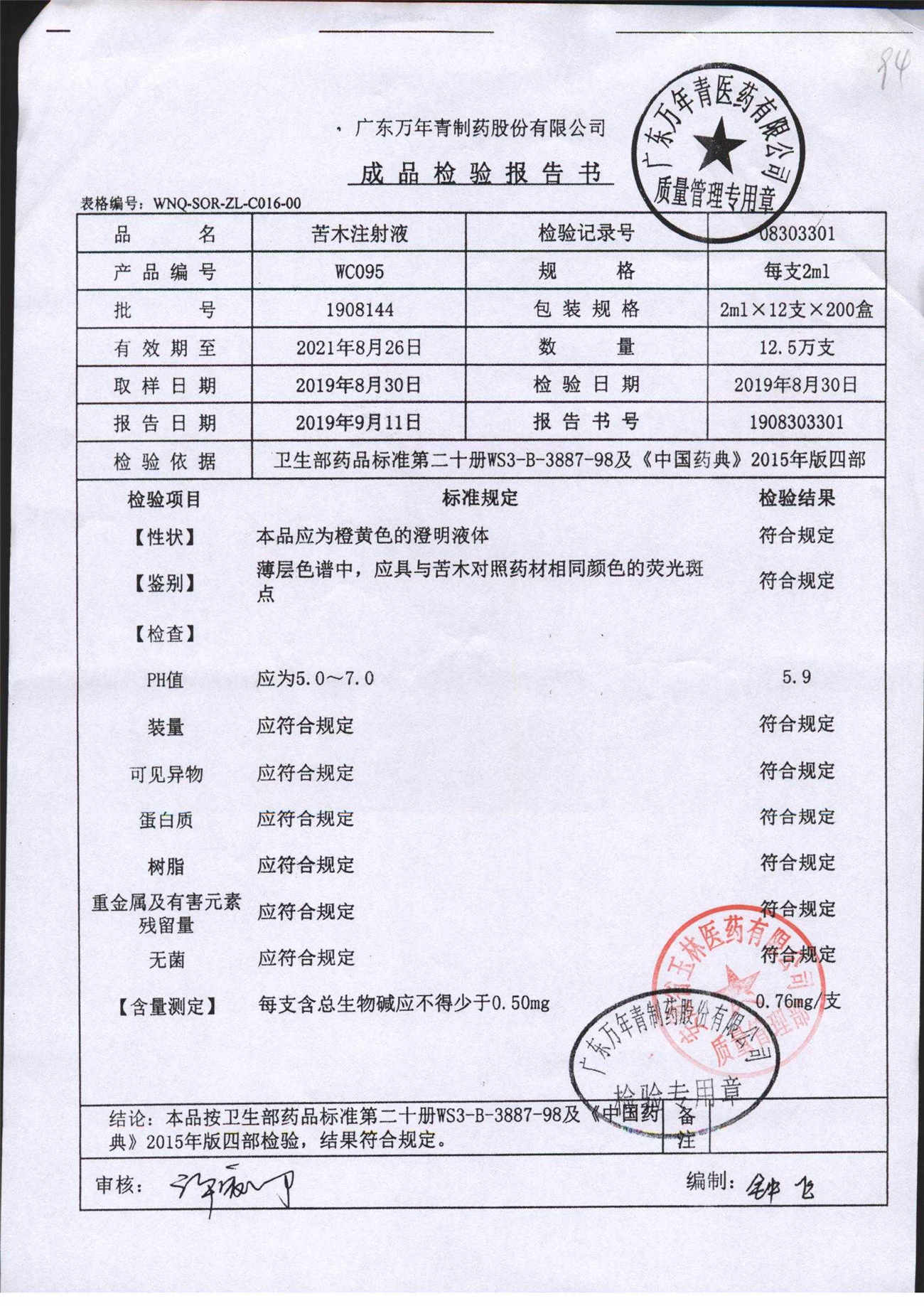苦木注射液 | 2ml | 210115 | 查看详情 |