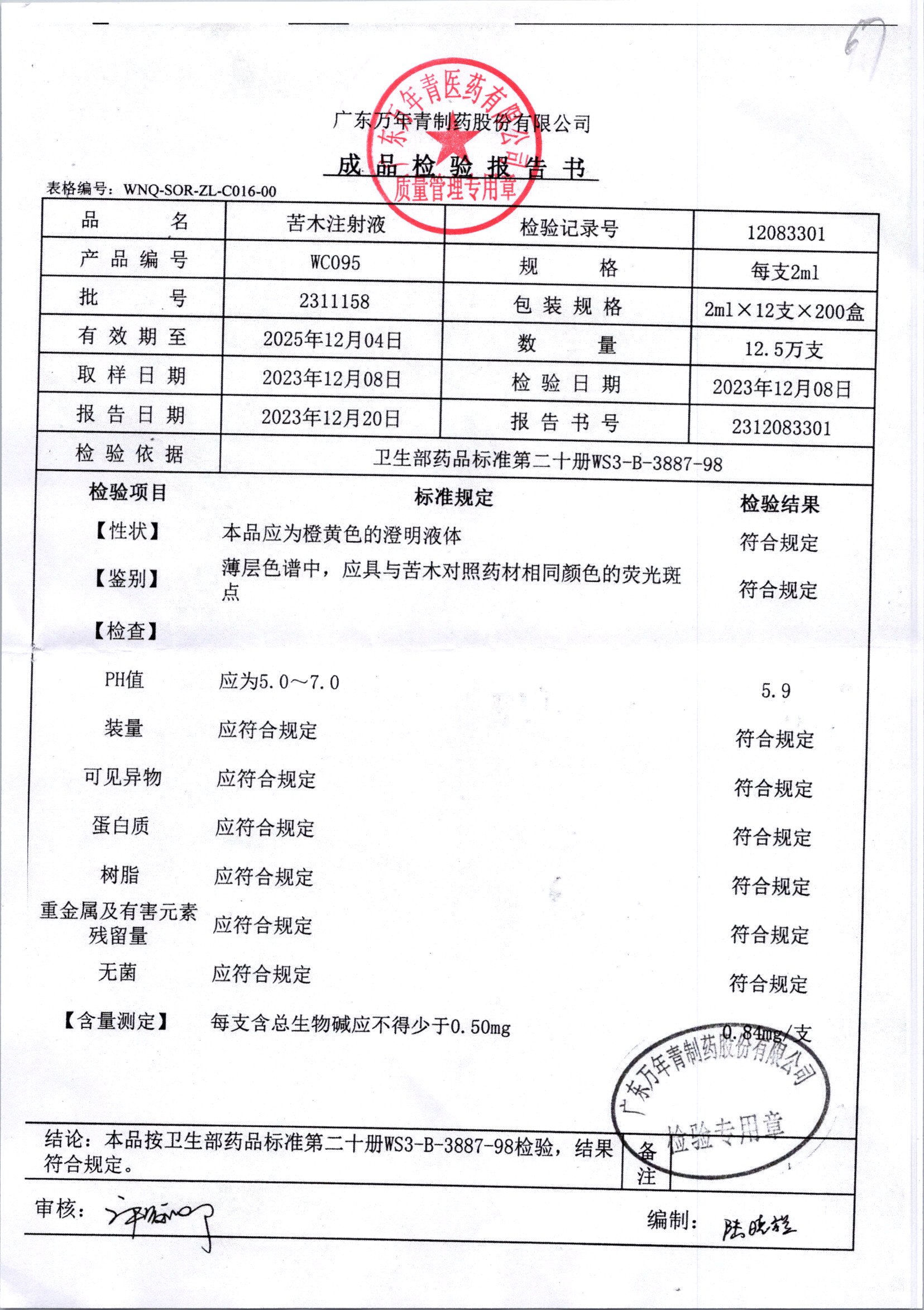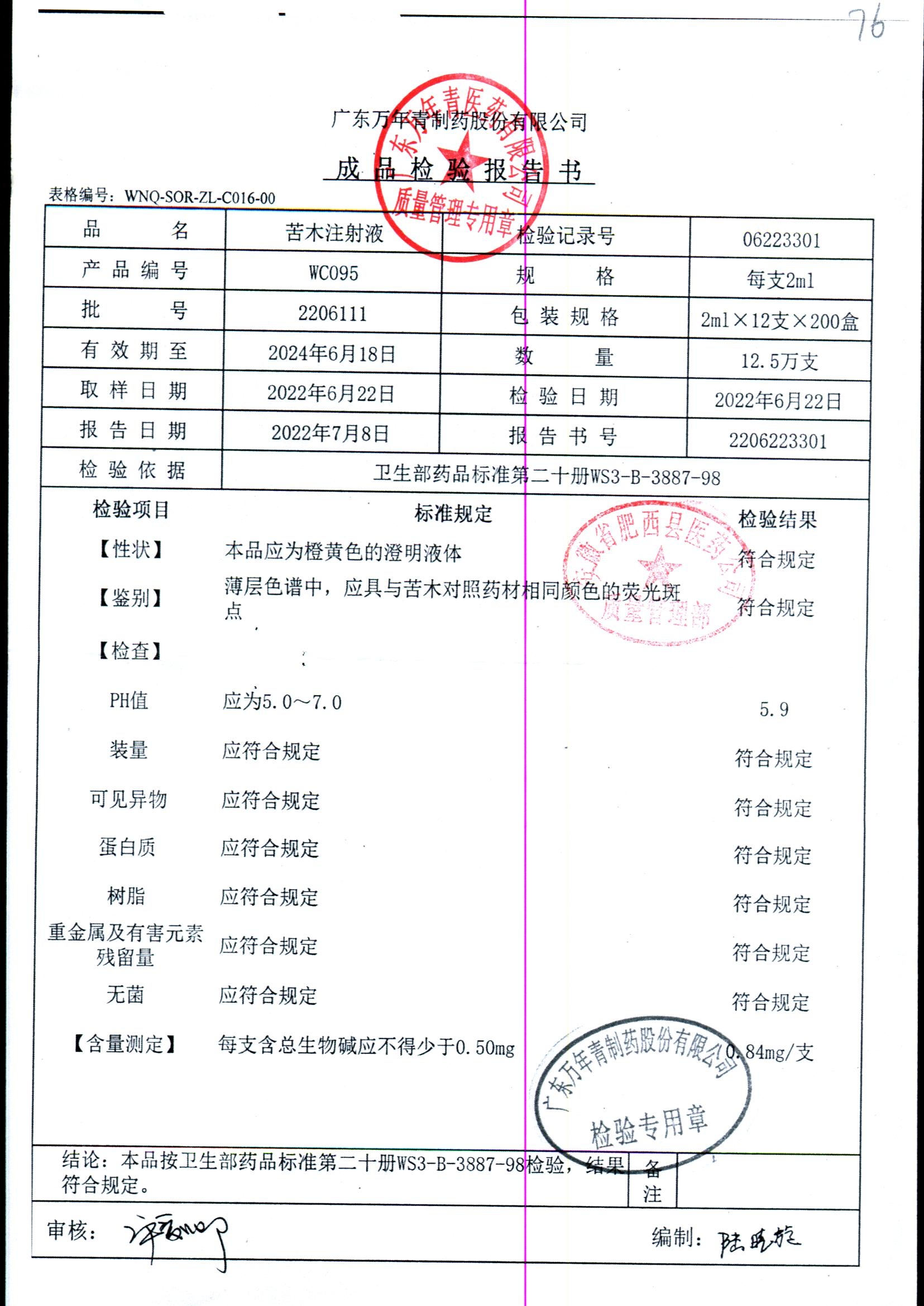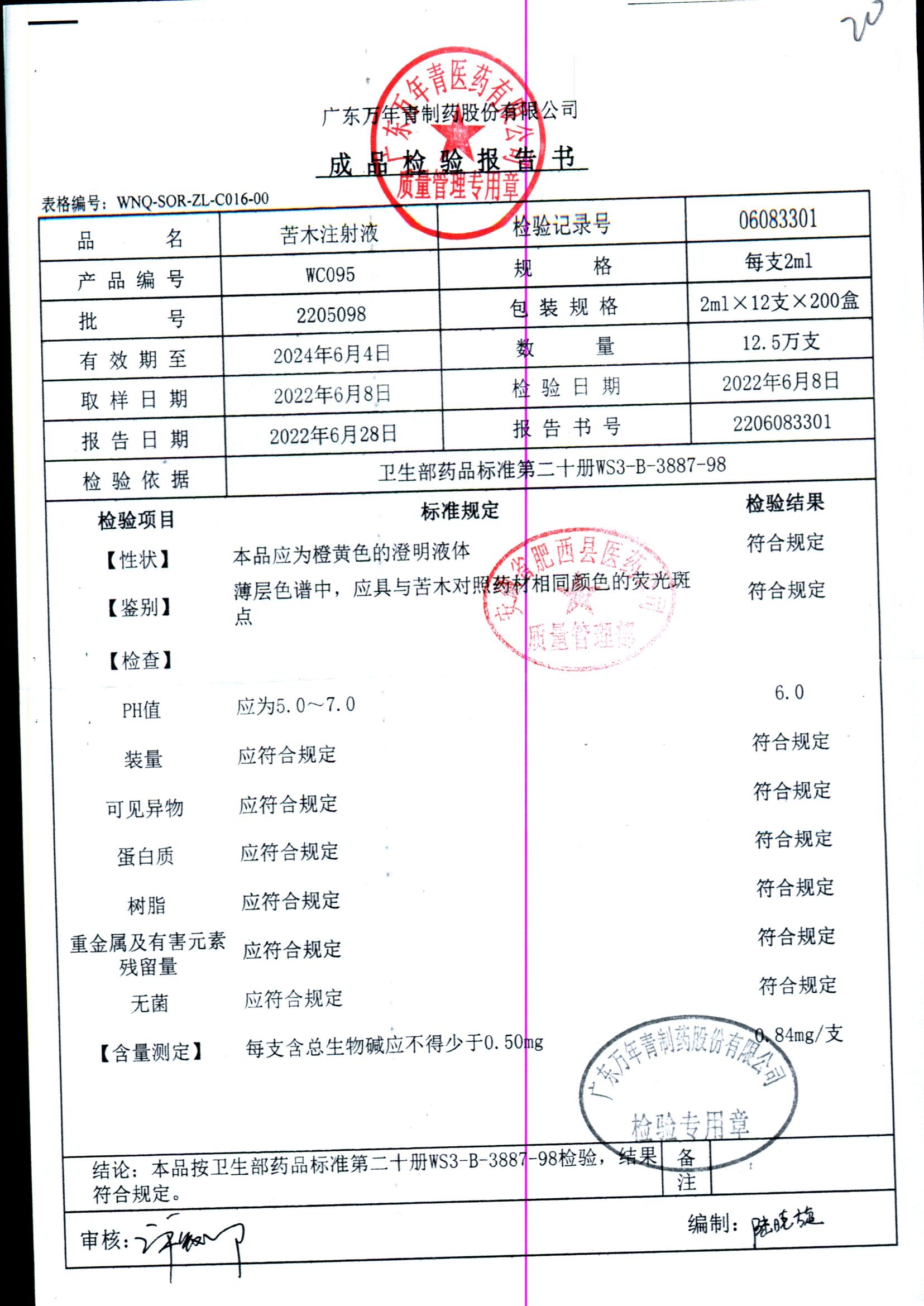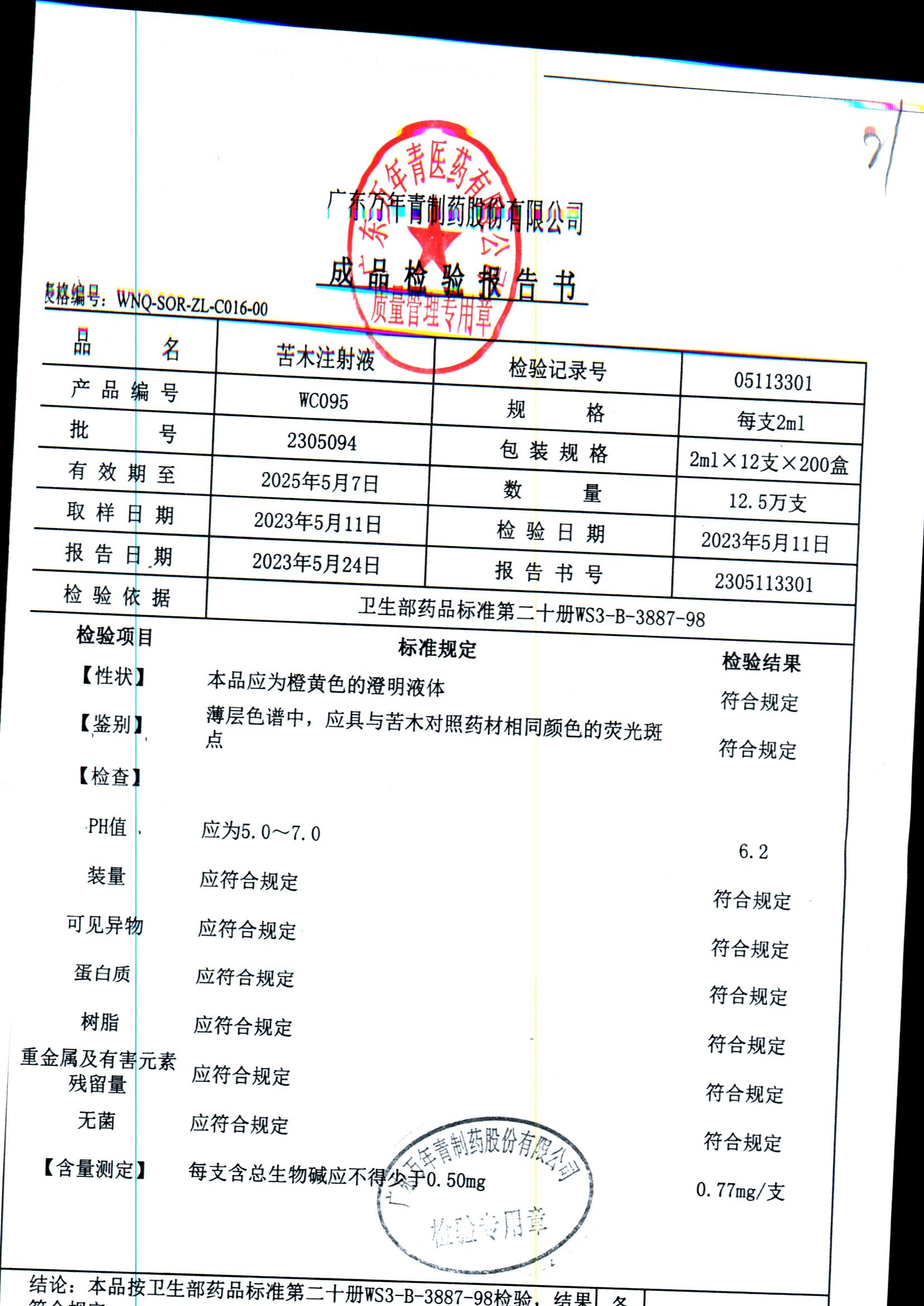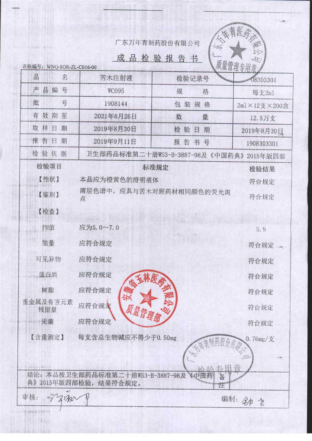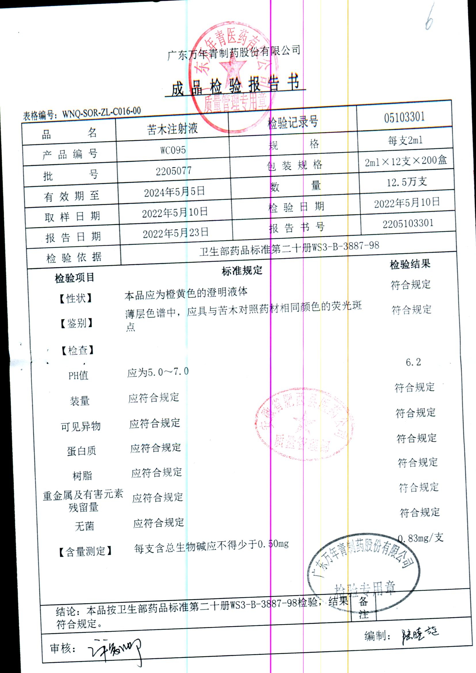 苦木注射液 | 2ml | 210115 | 查看详情 |