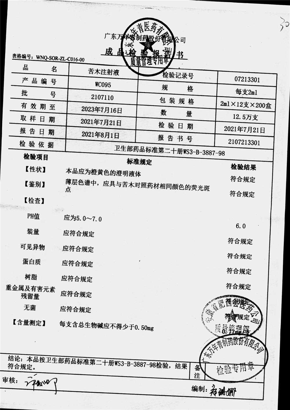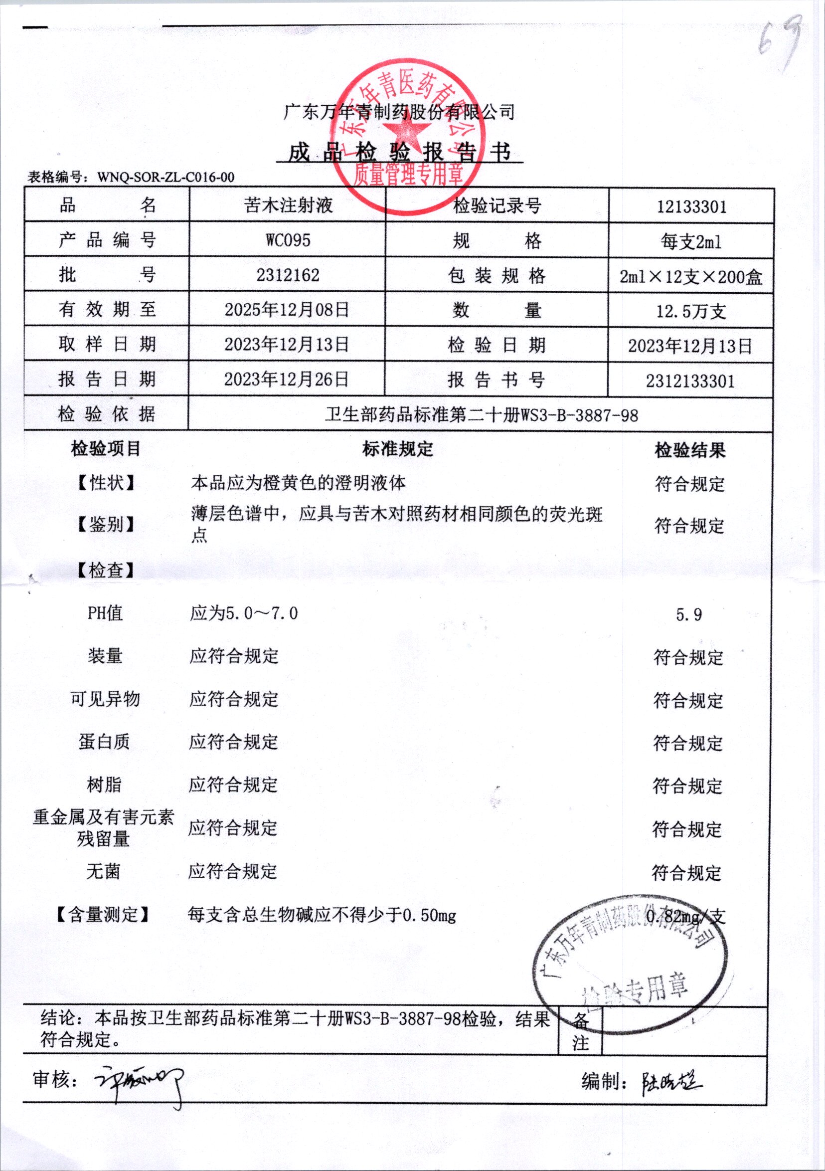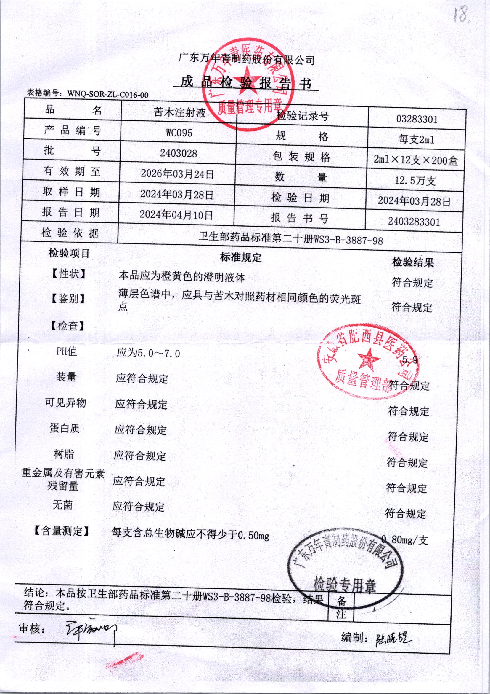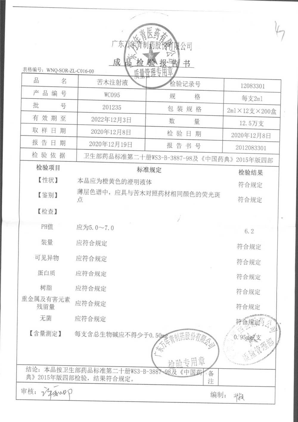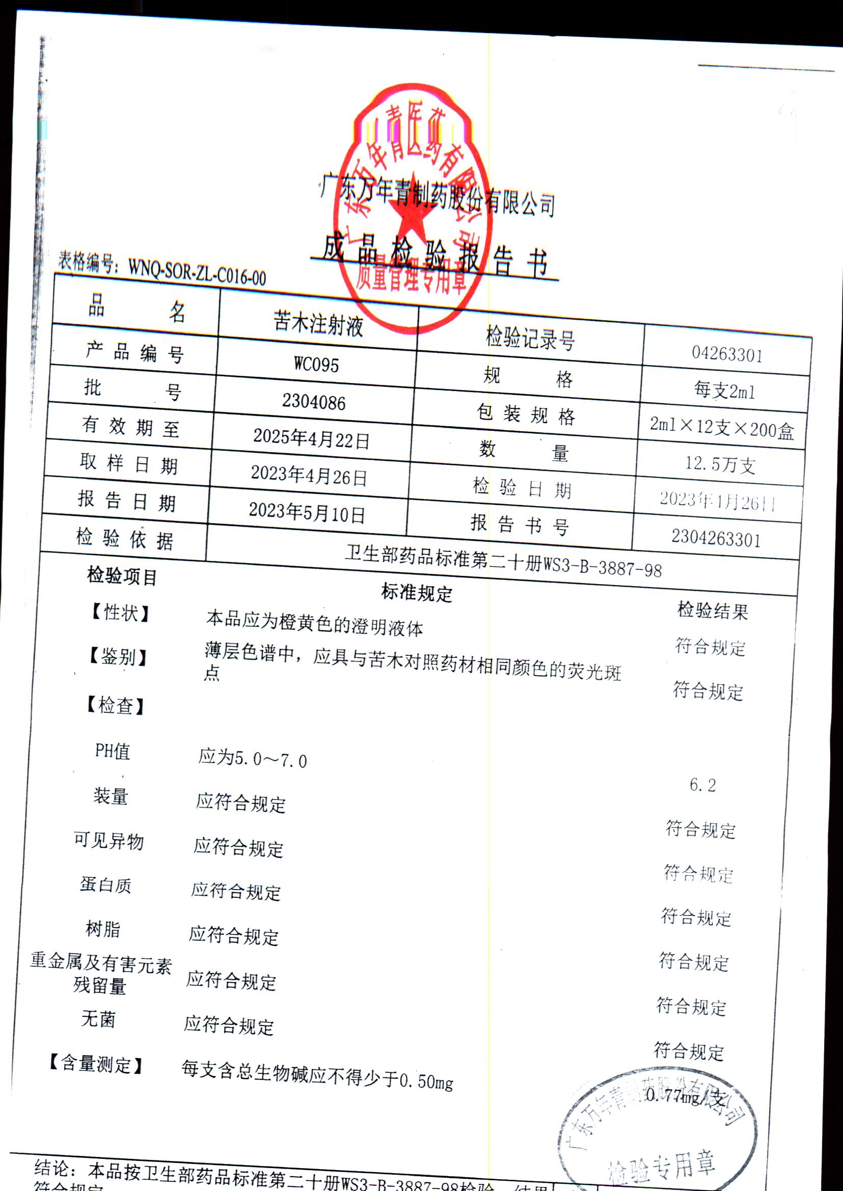 苦木注射液 | 2ml | 210115 | 查看详情 |