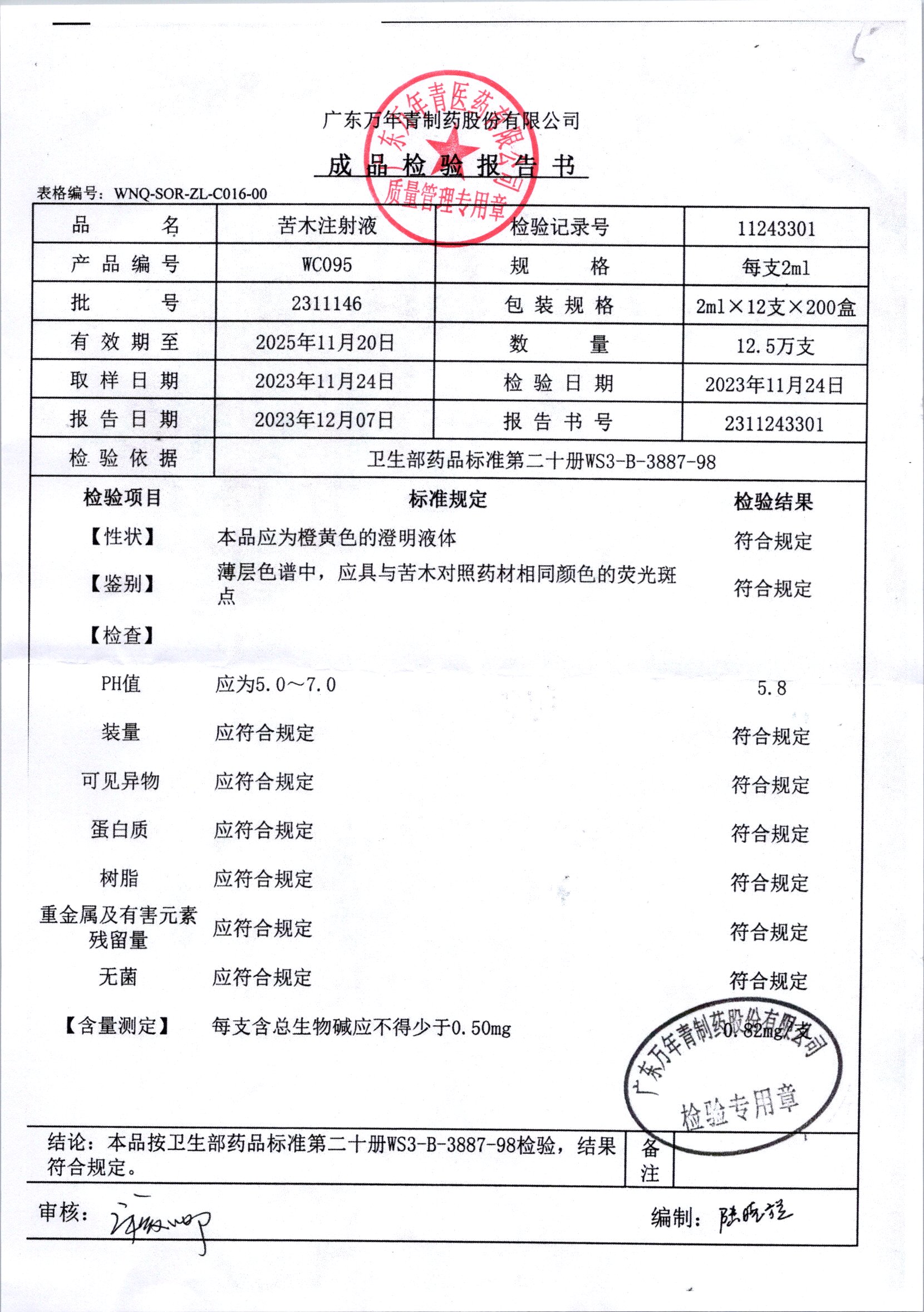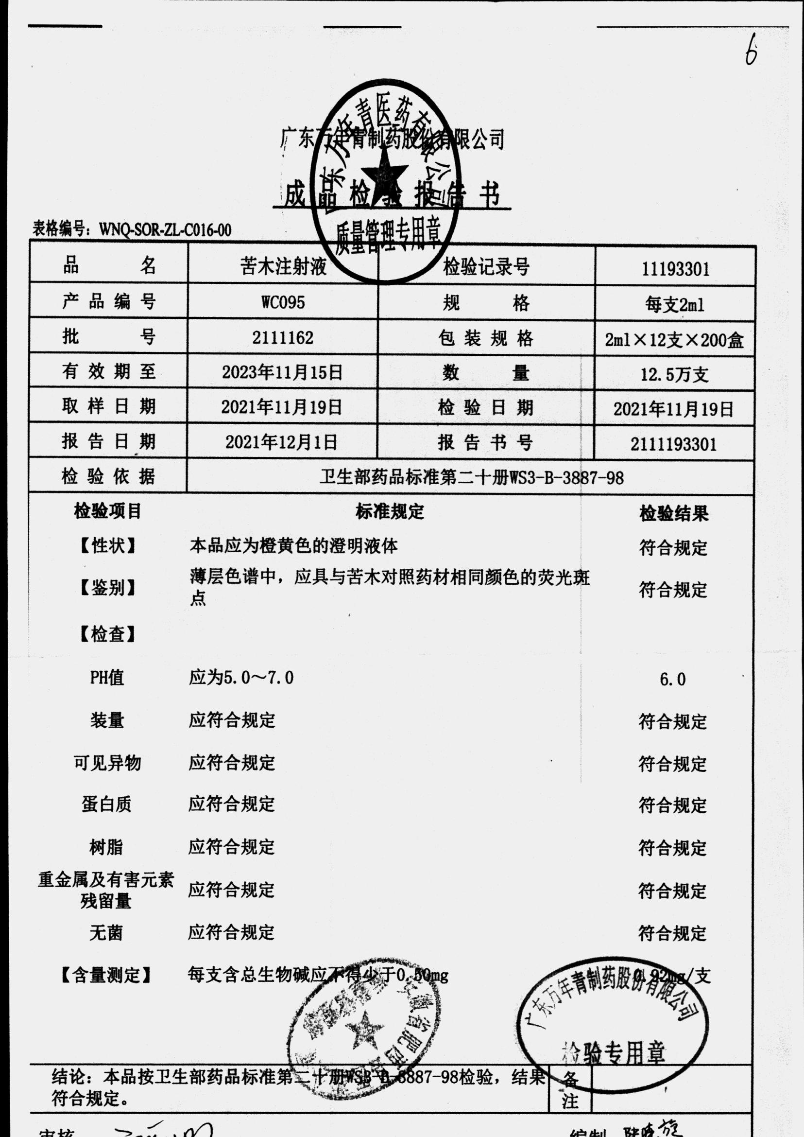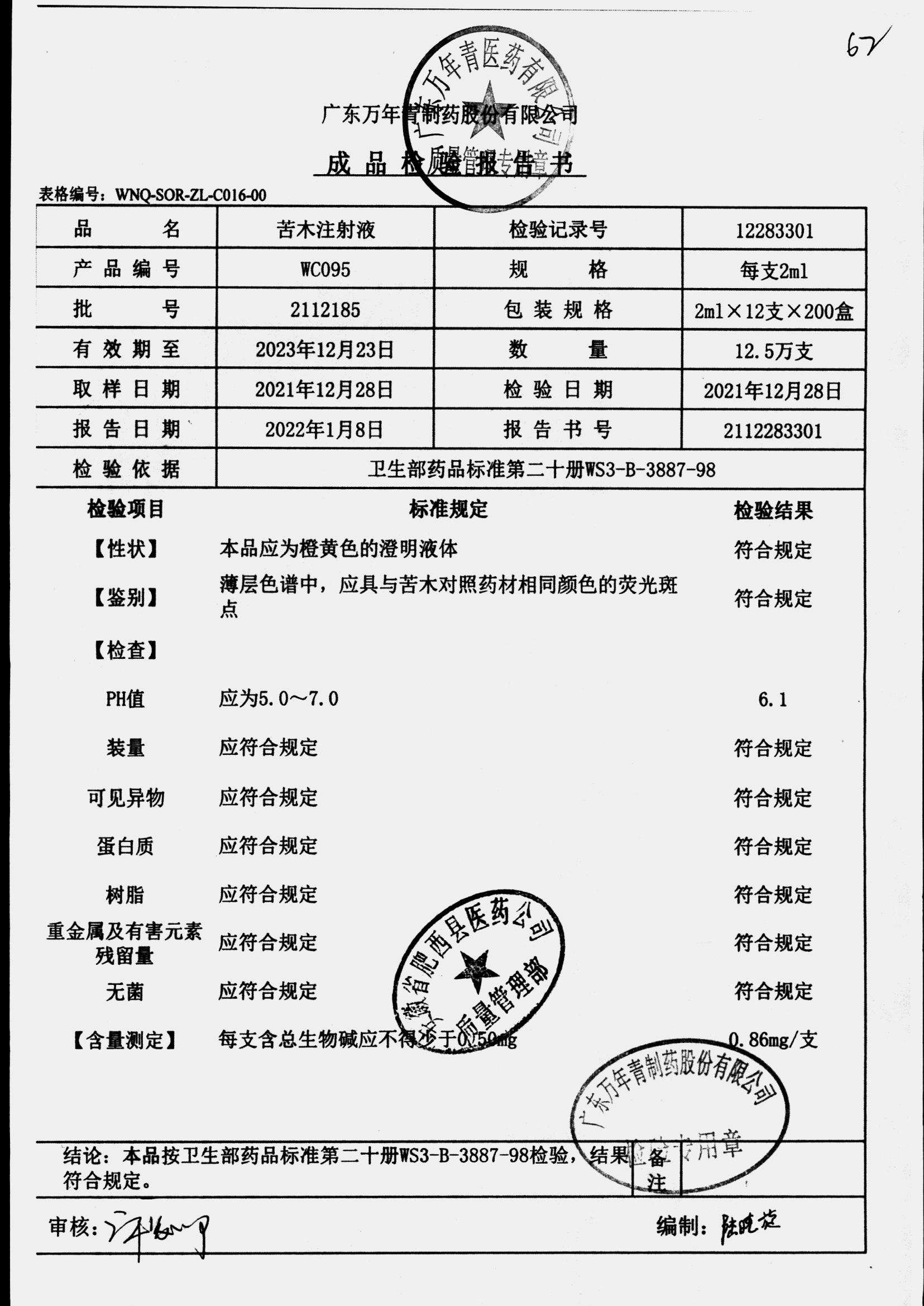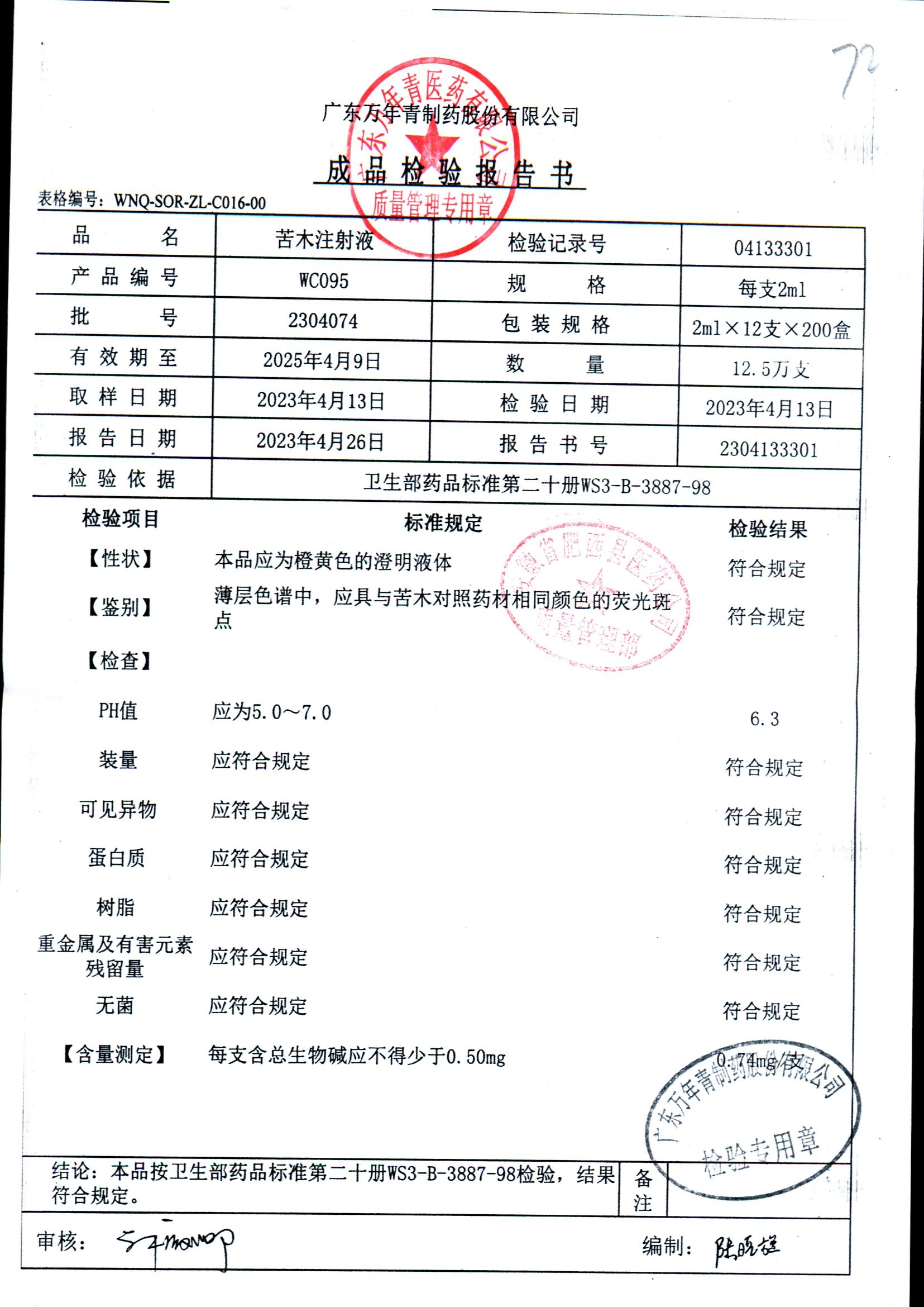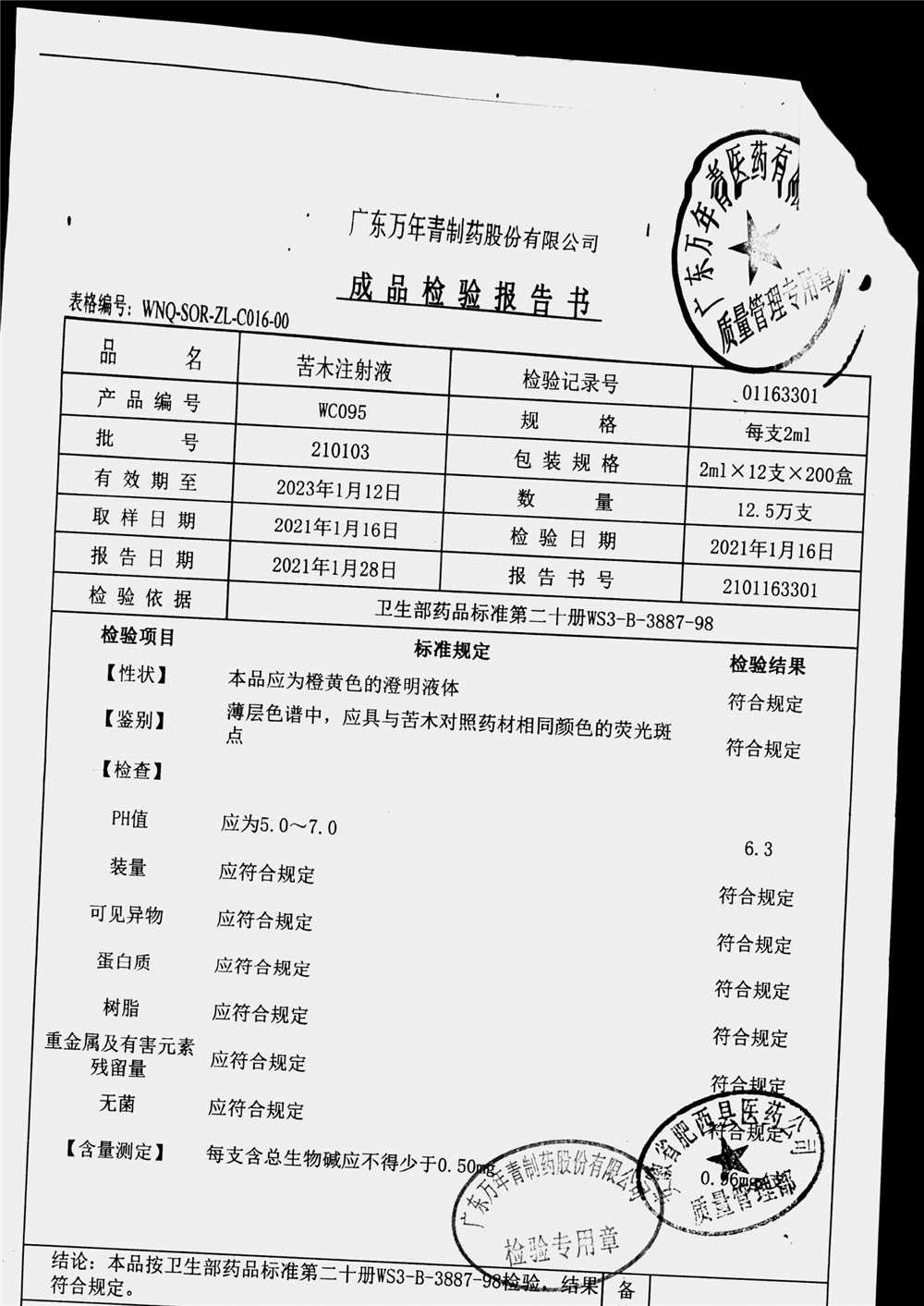 苦木注射液 | 2ml | 210115 | 查看详情 |
