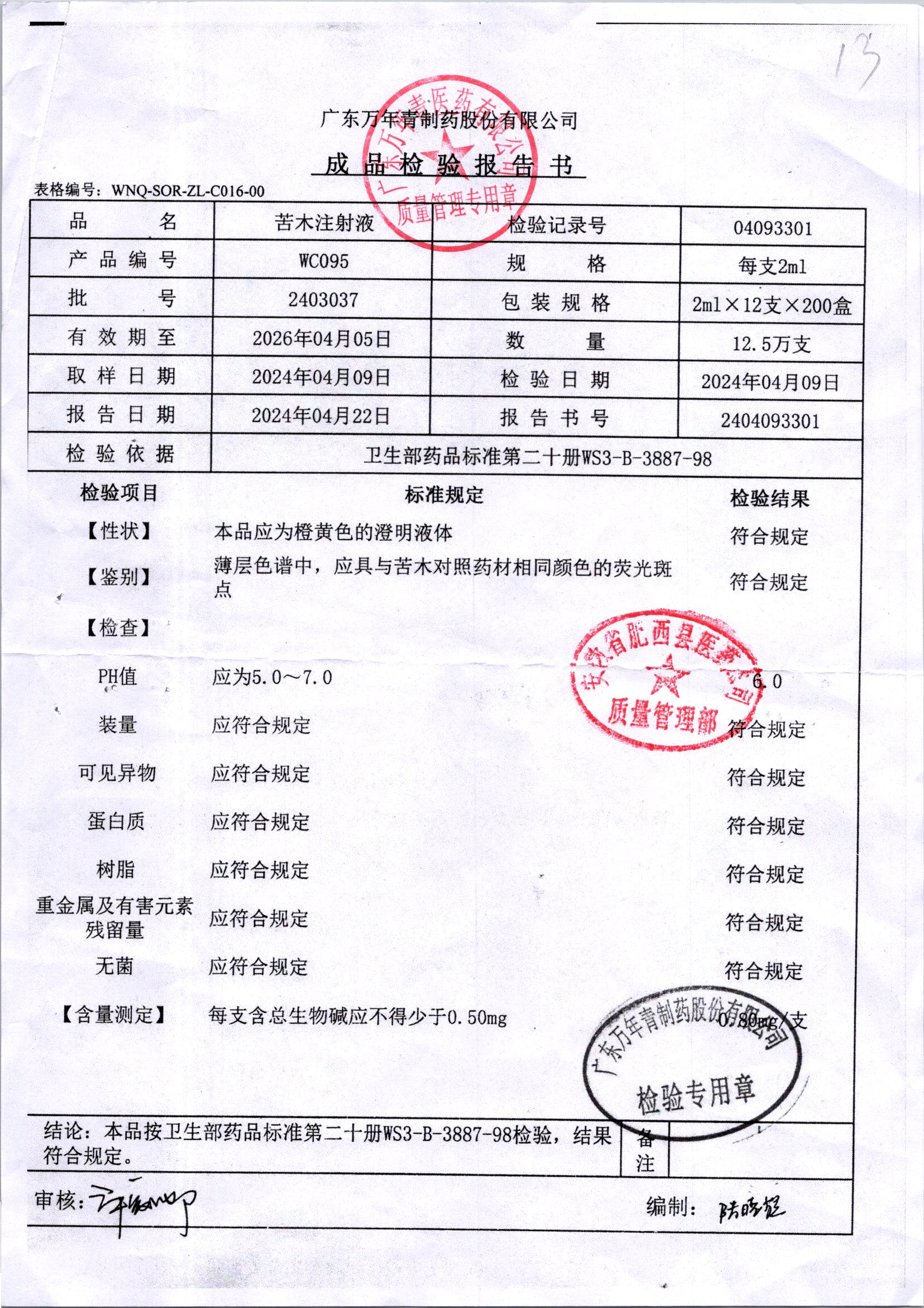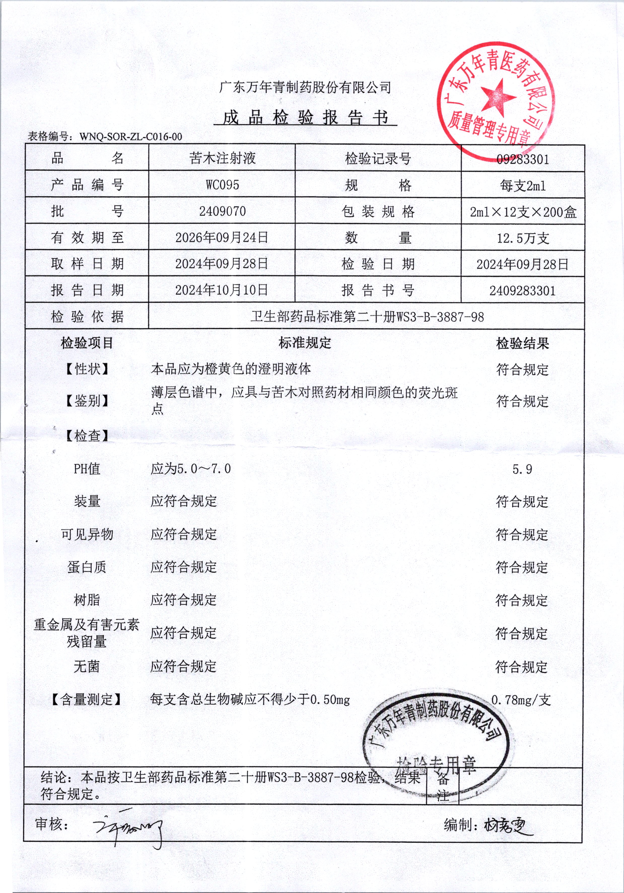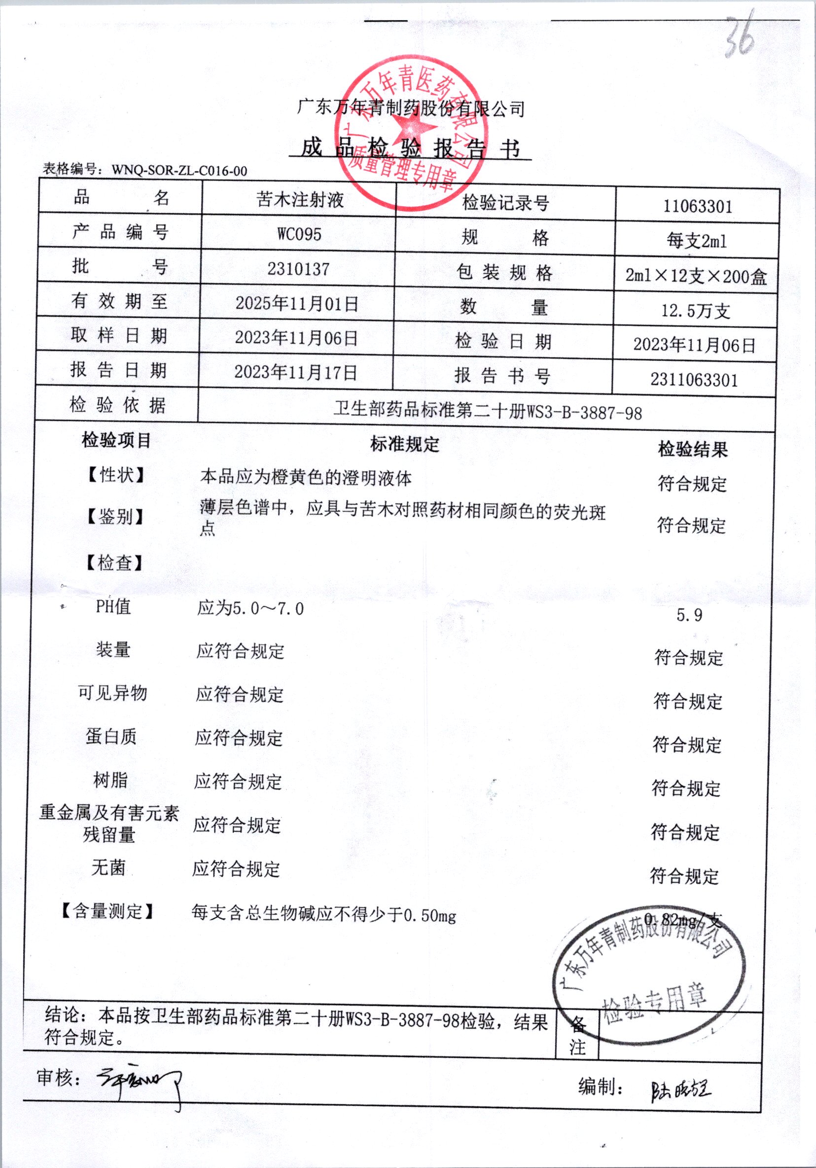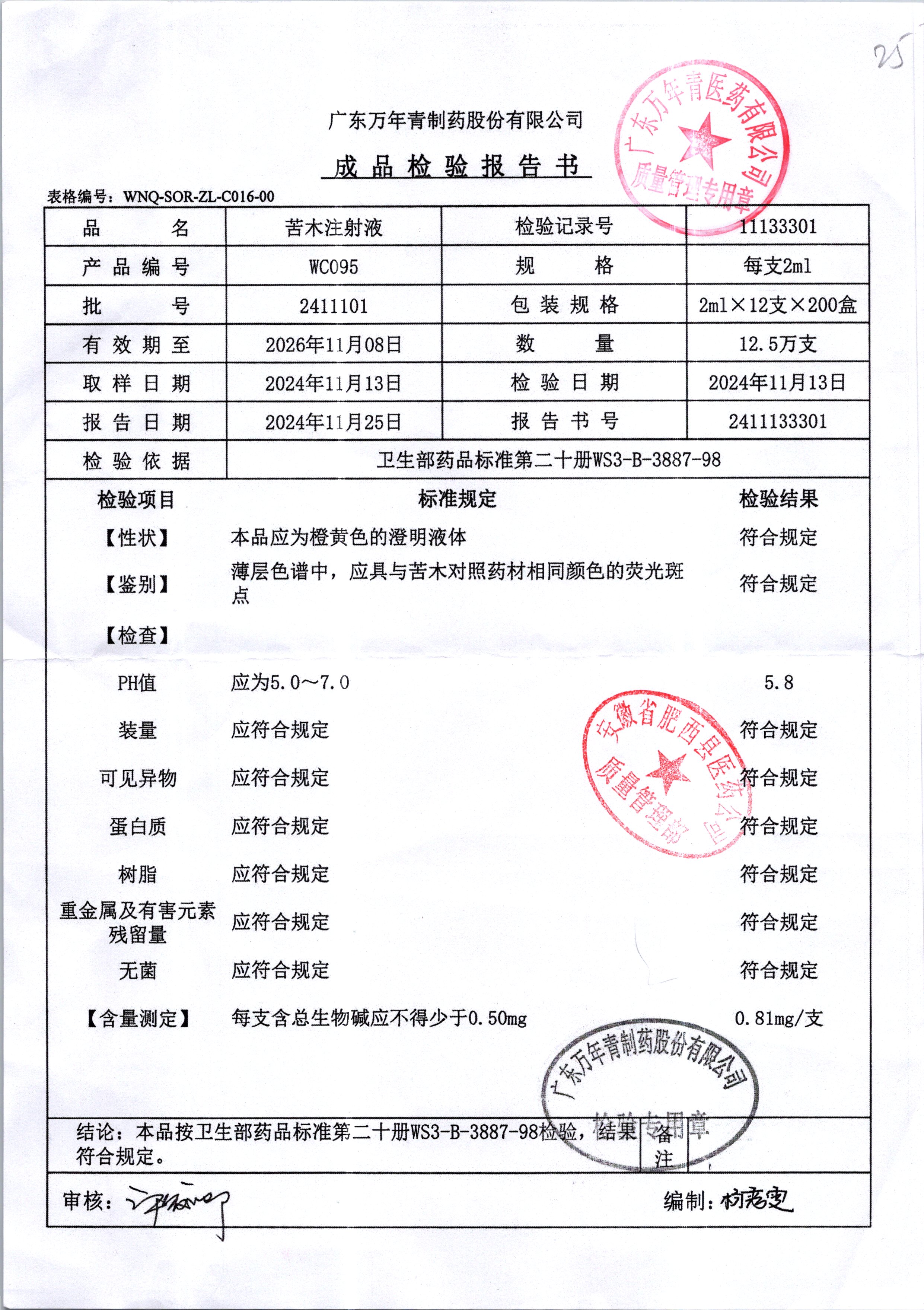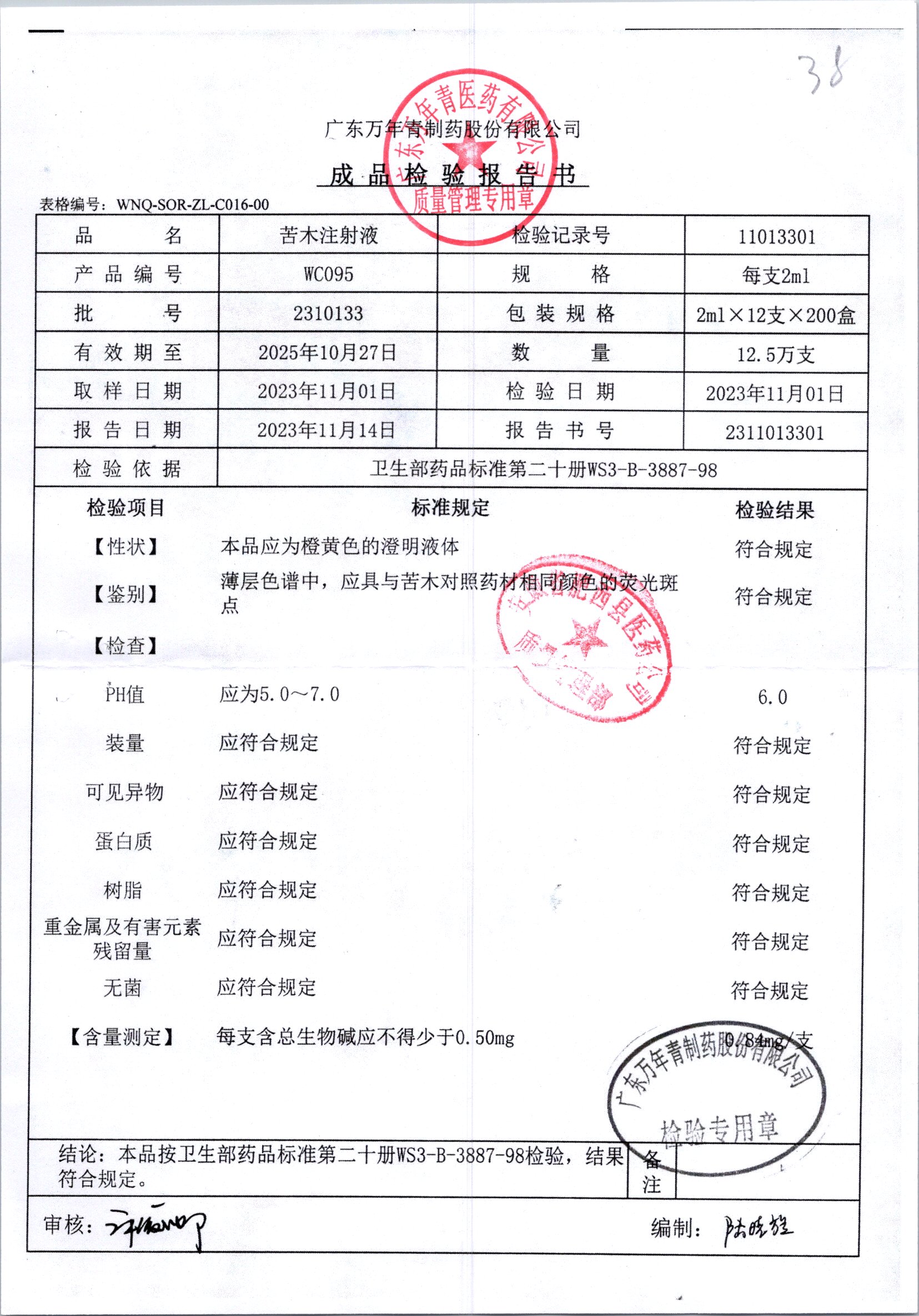 苦木注射液 | 2ml | 210115 | 查看详情 |
