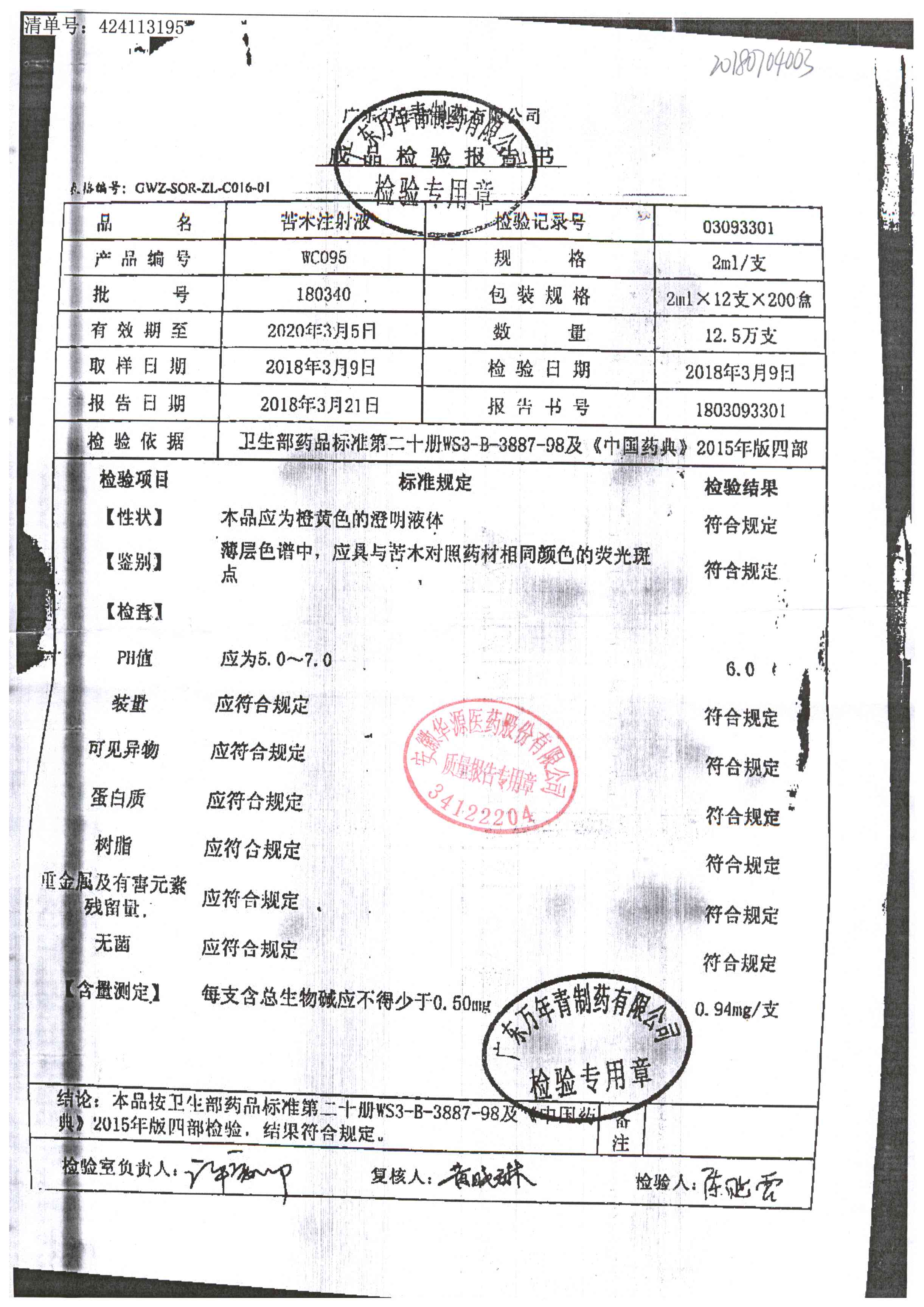 苦木注射液 | 2ml | 180119 | 查看详情 |