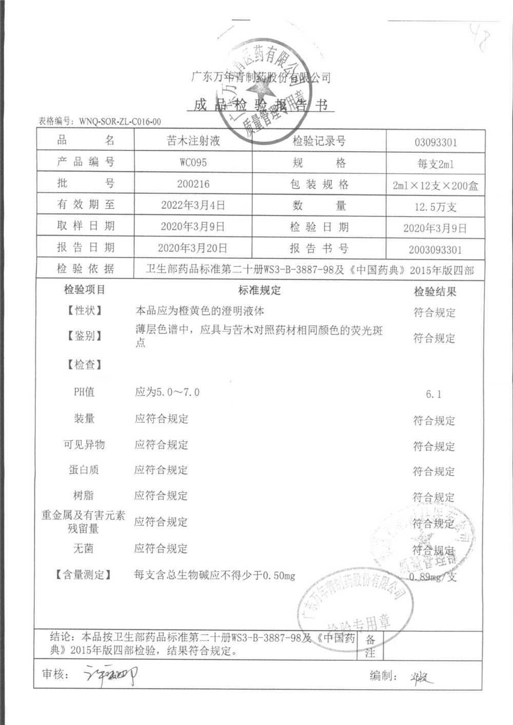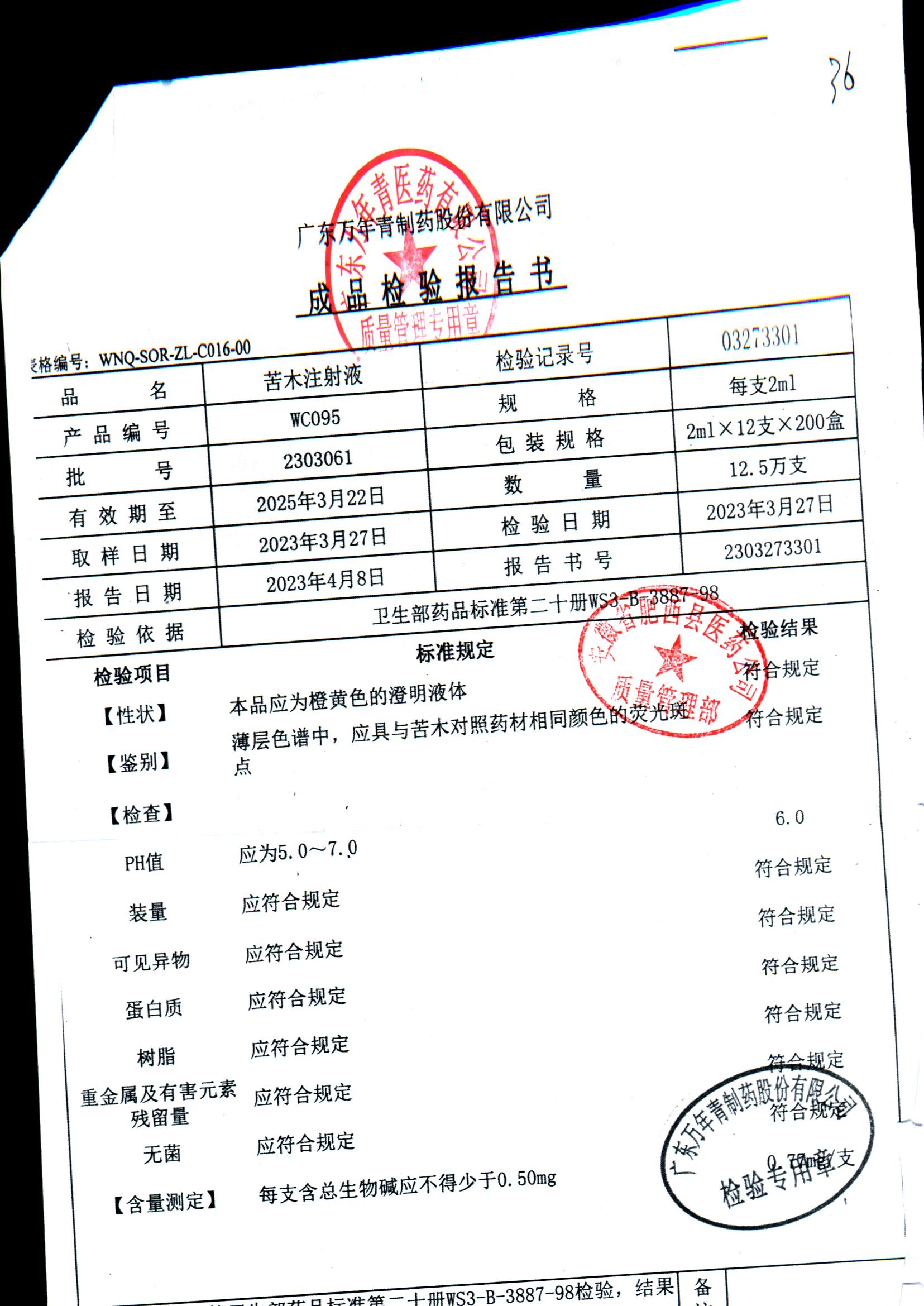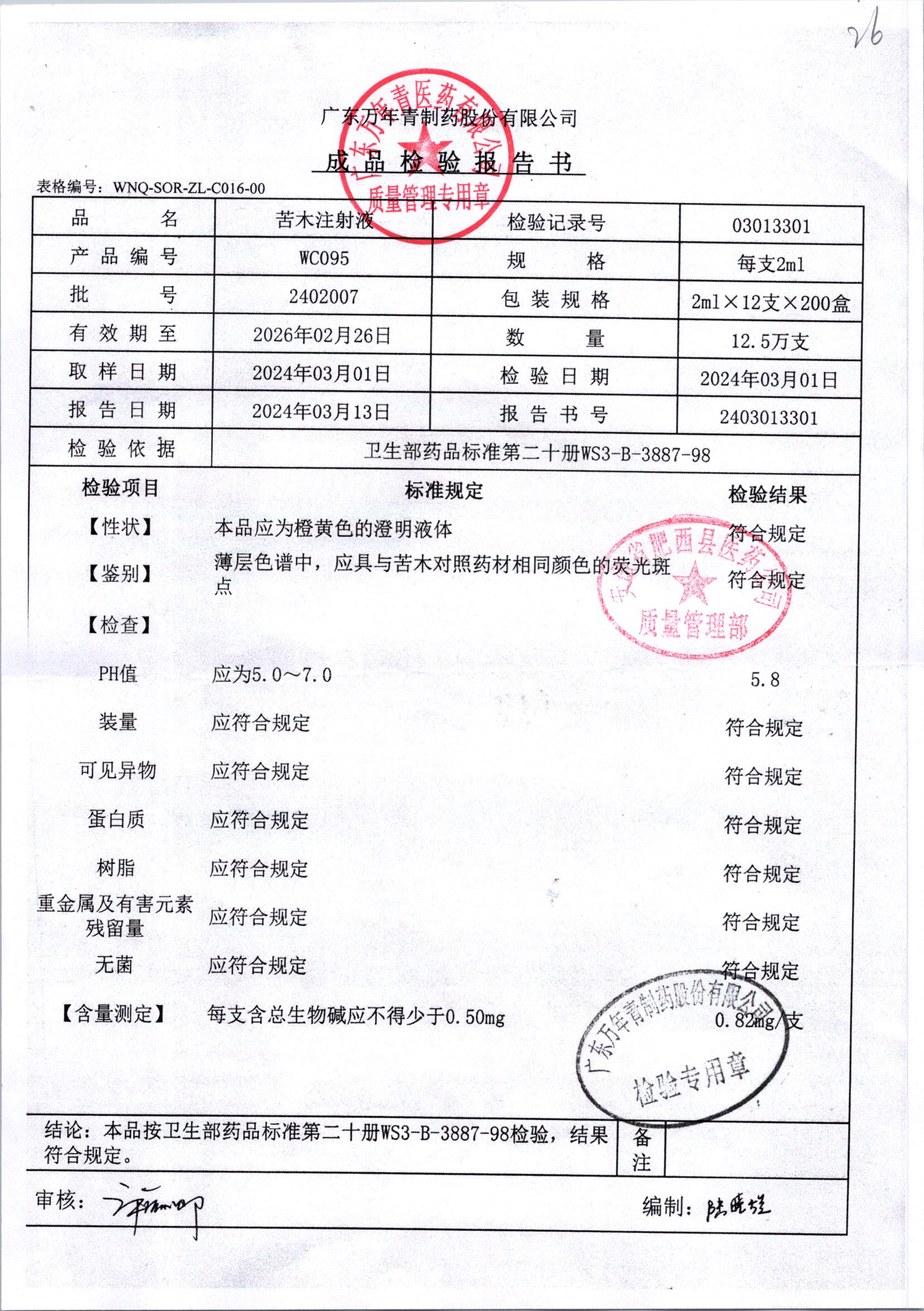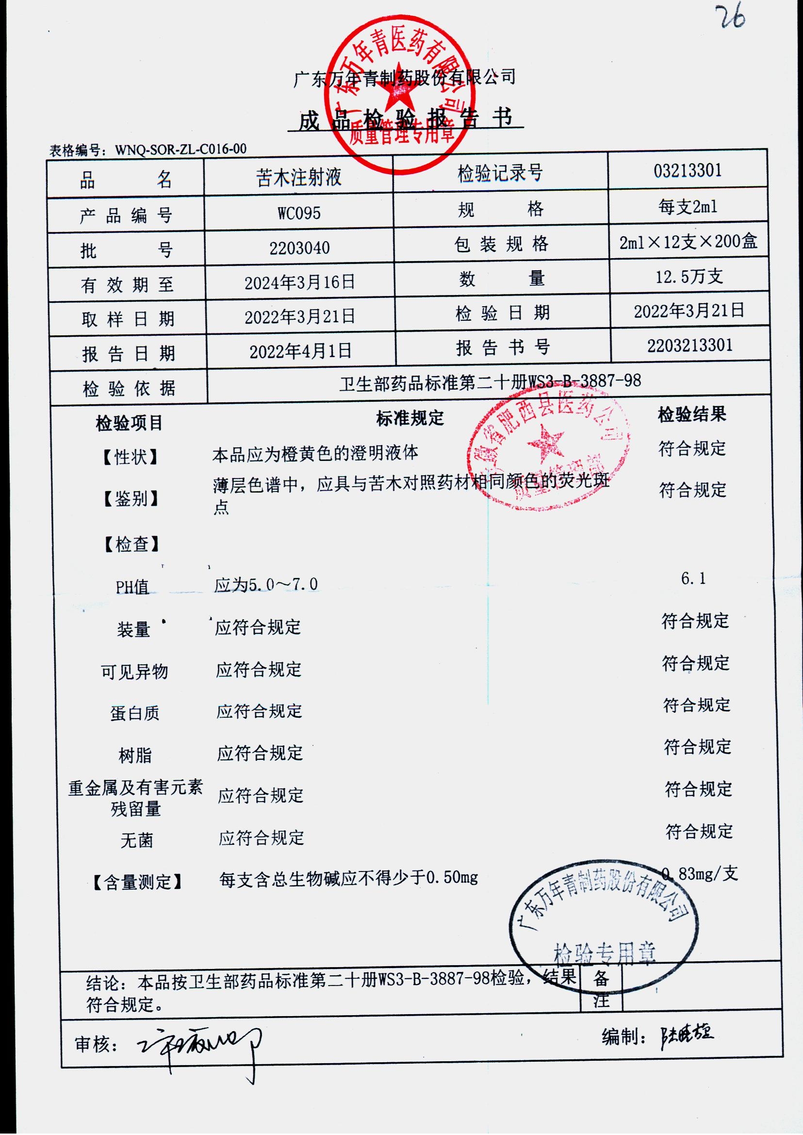 苦木注射液 | 2ml | 210226 | 查看详情 |