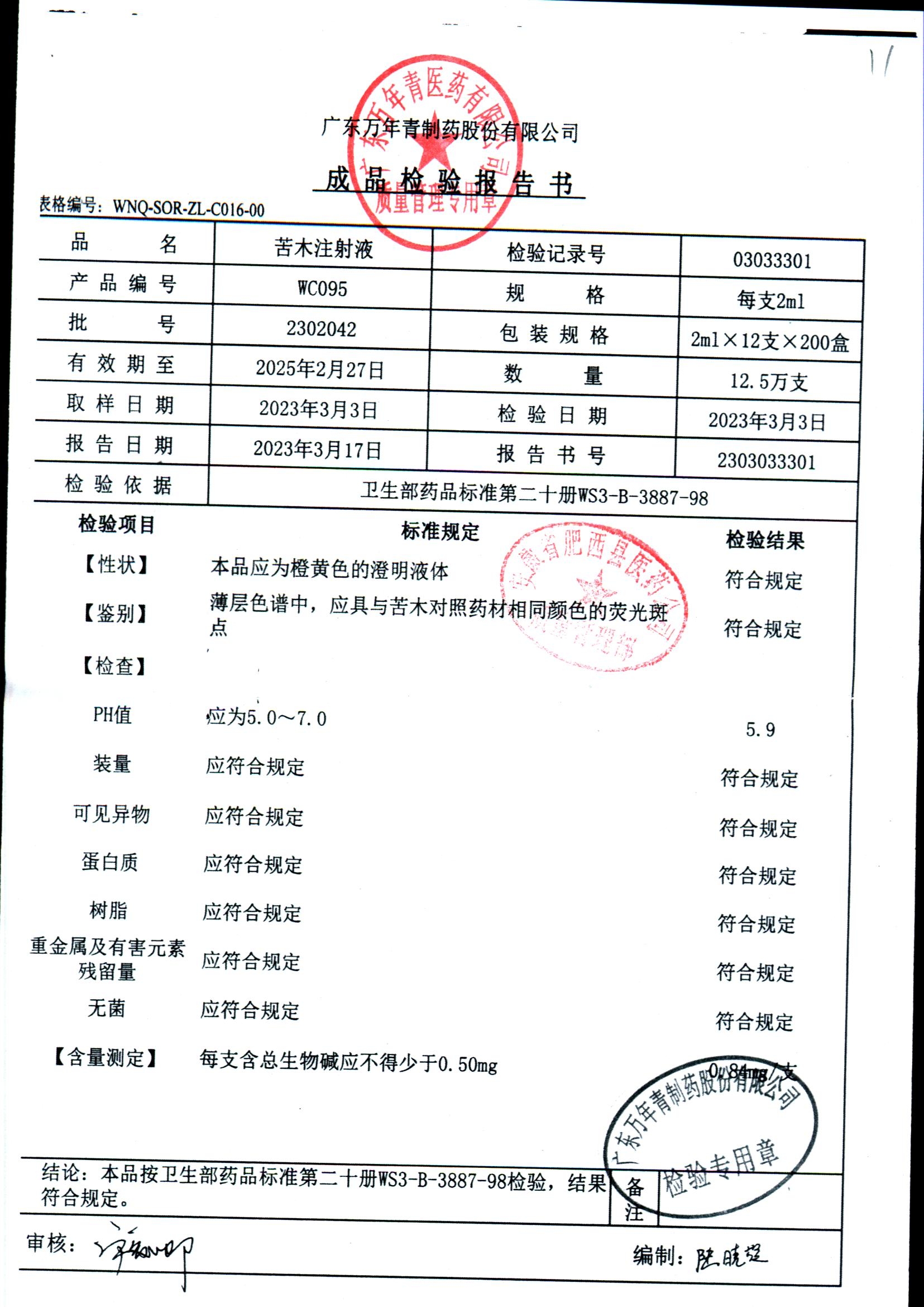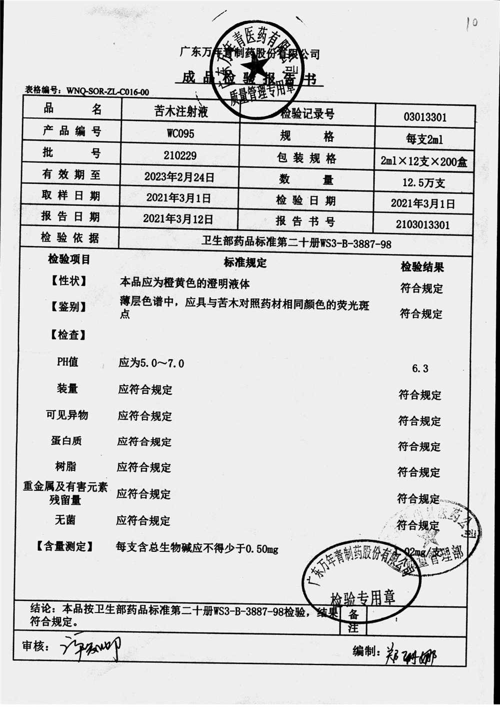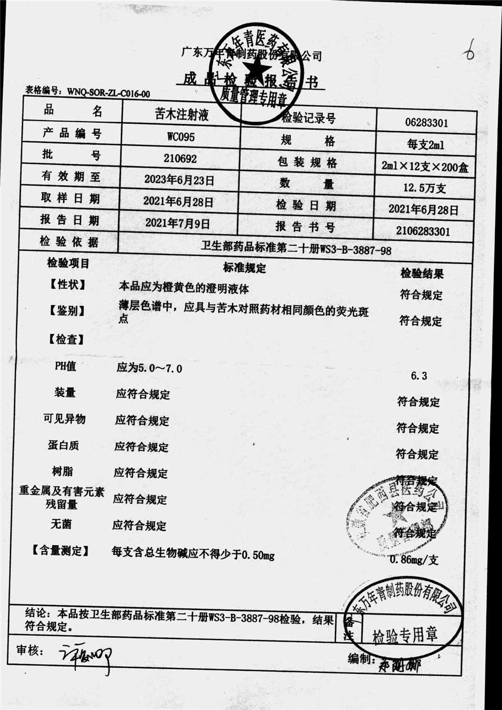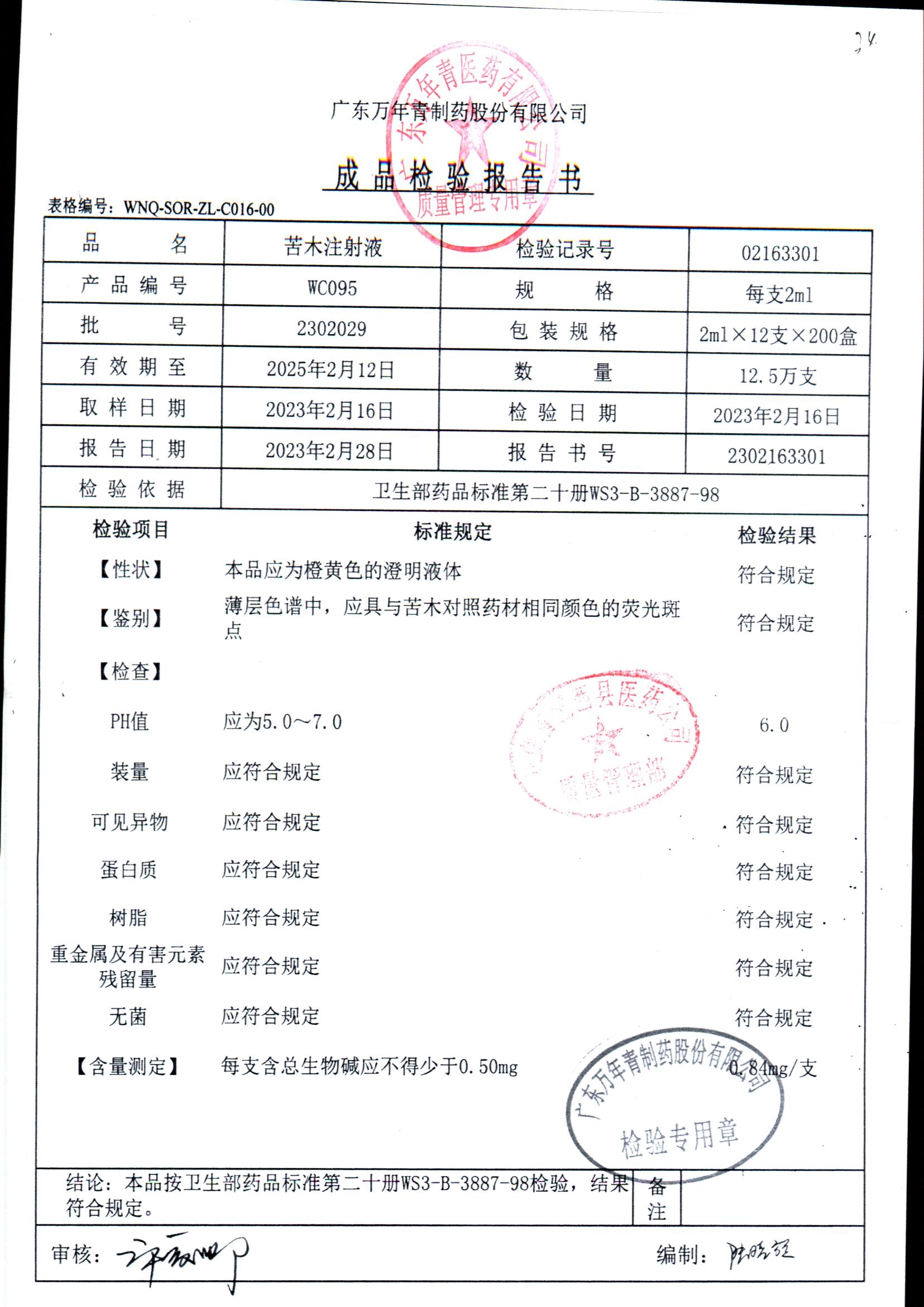 苦木注射液 | 2ml | 210226 | 查看详情 |