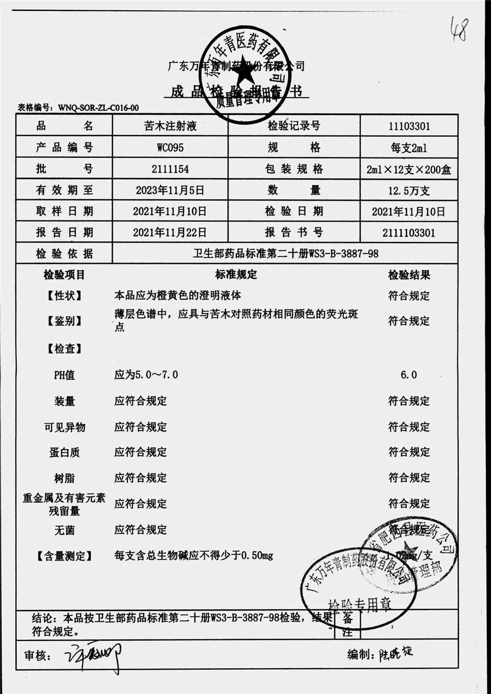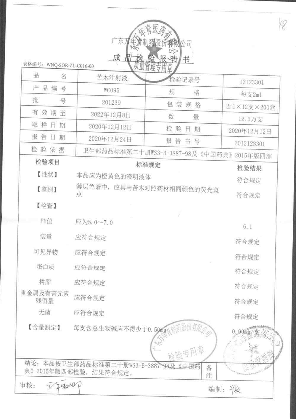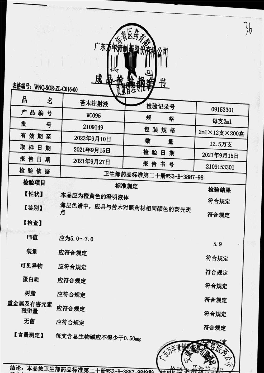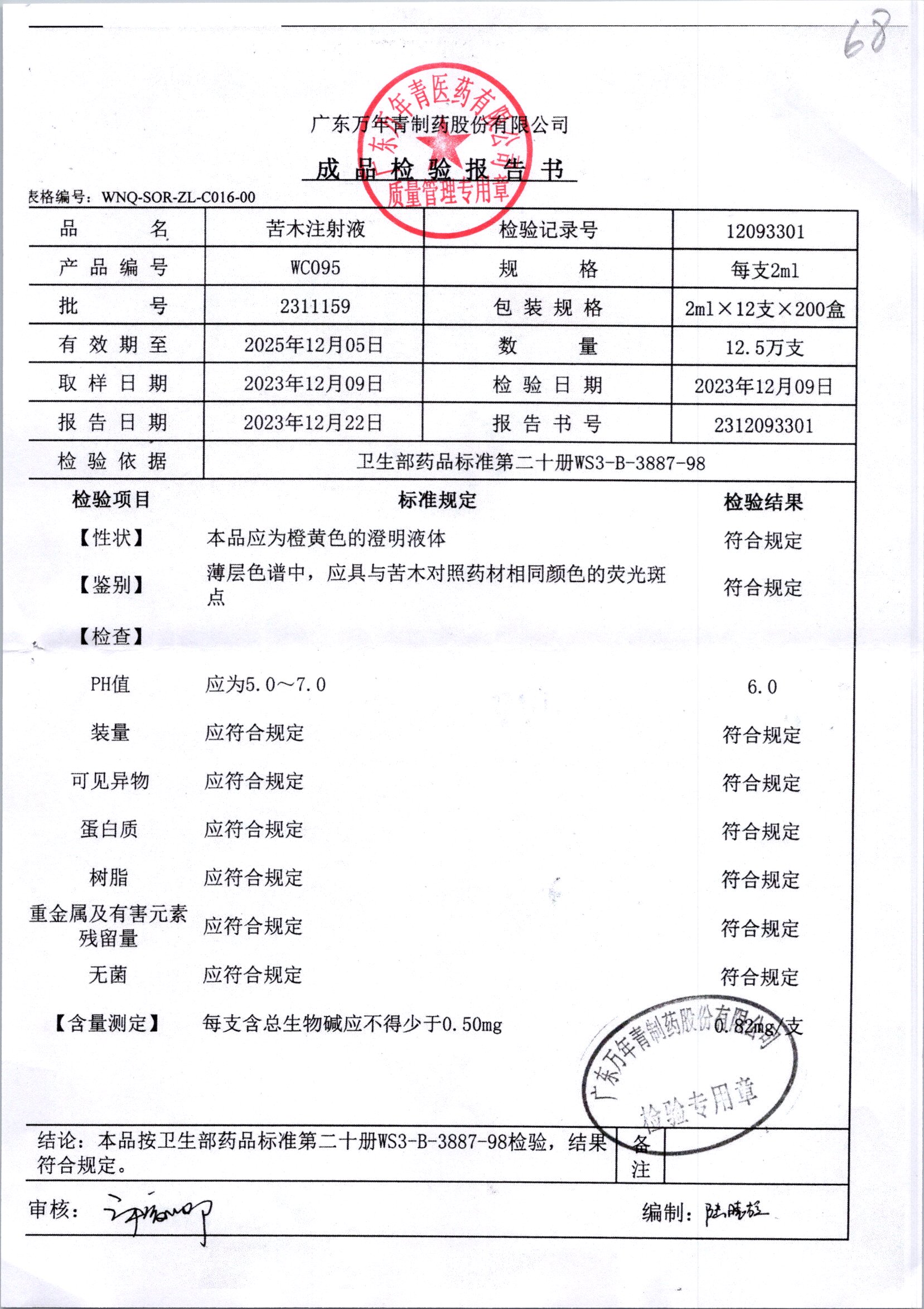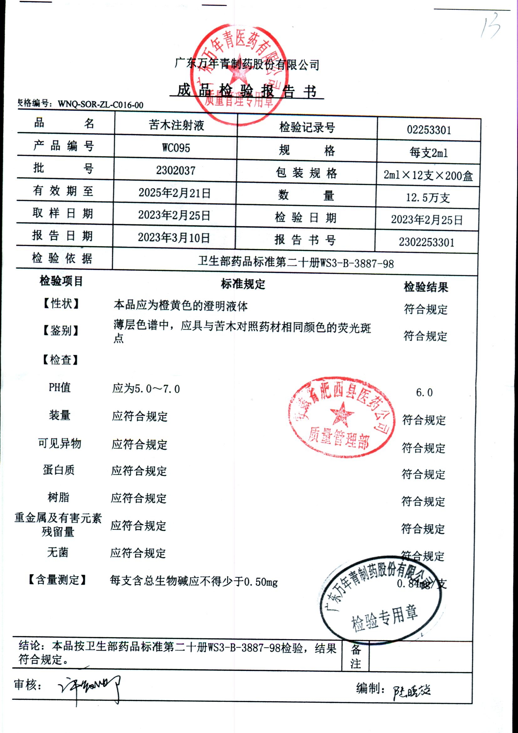 苦木注射液 | 2ml | 210226 | 查看详情 |