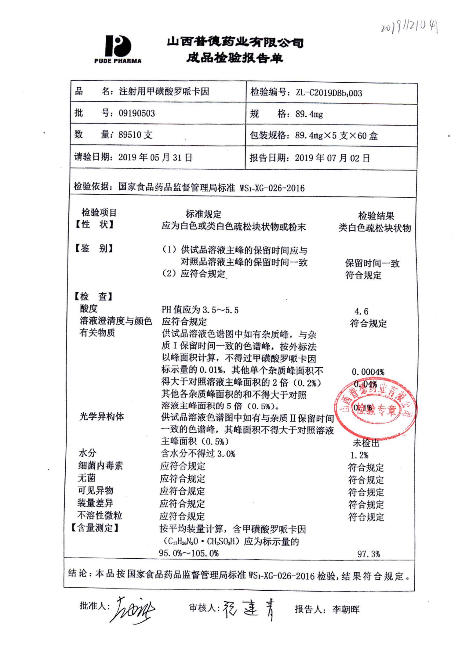 注射用甲磺酸罗哌卡因 | 89.4mg | 09190503 | 查看详情 |