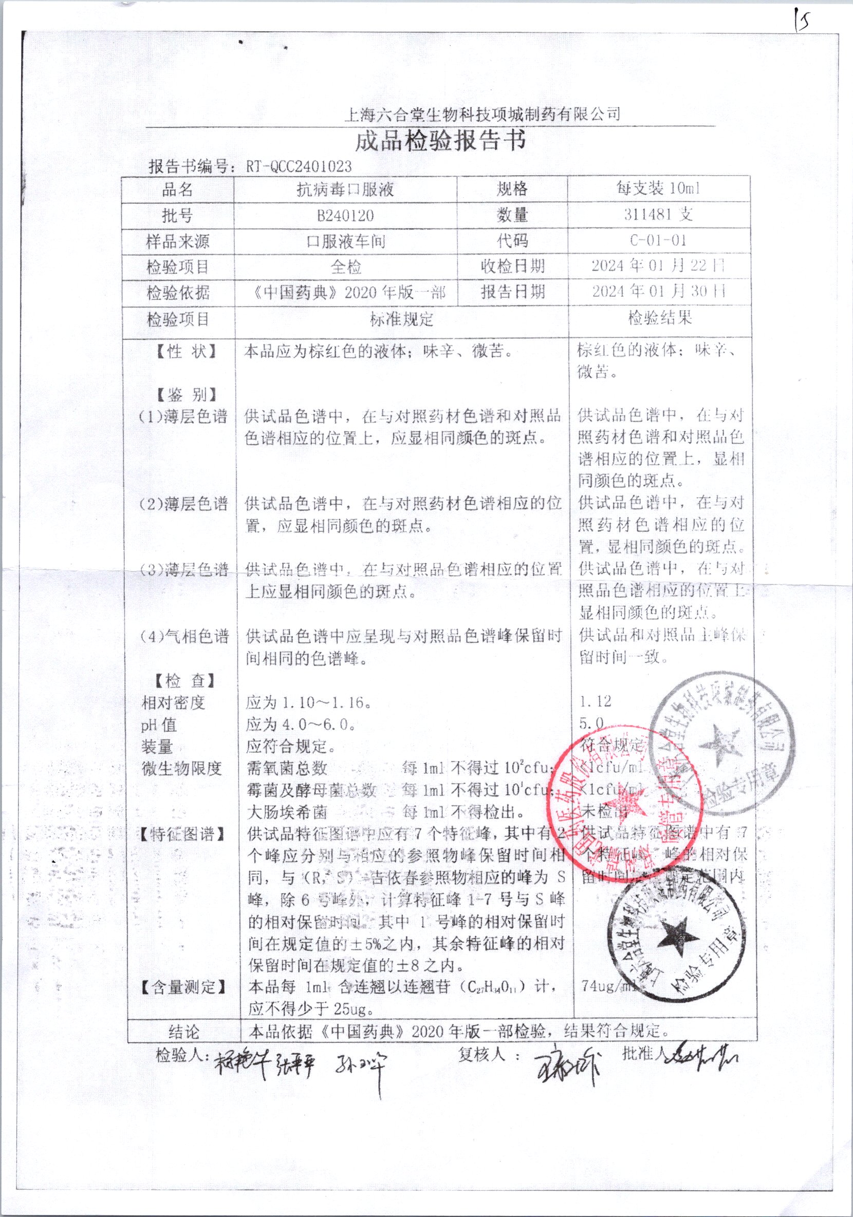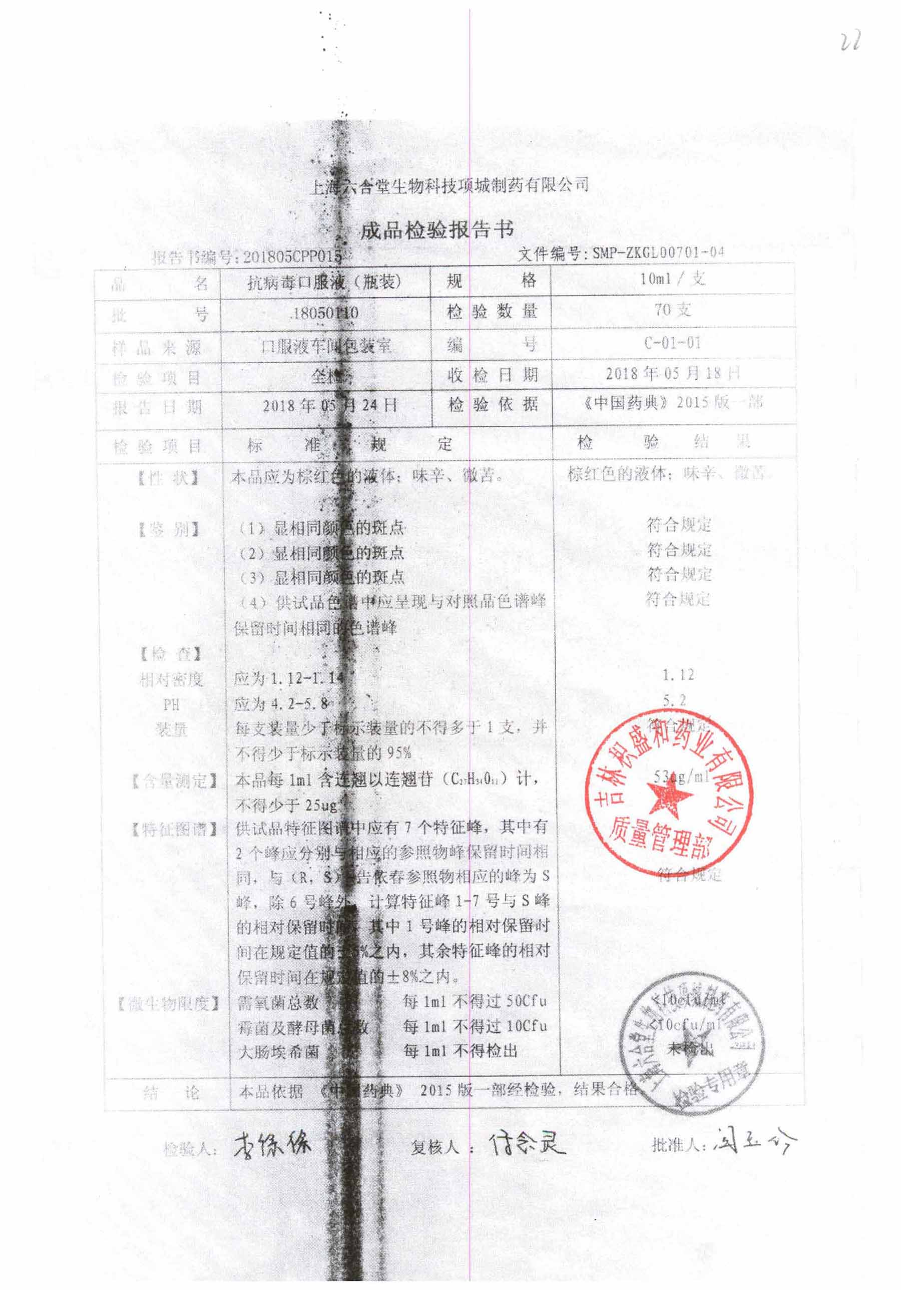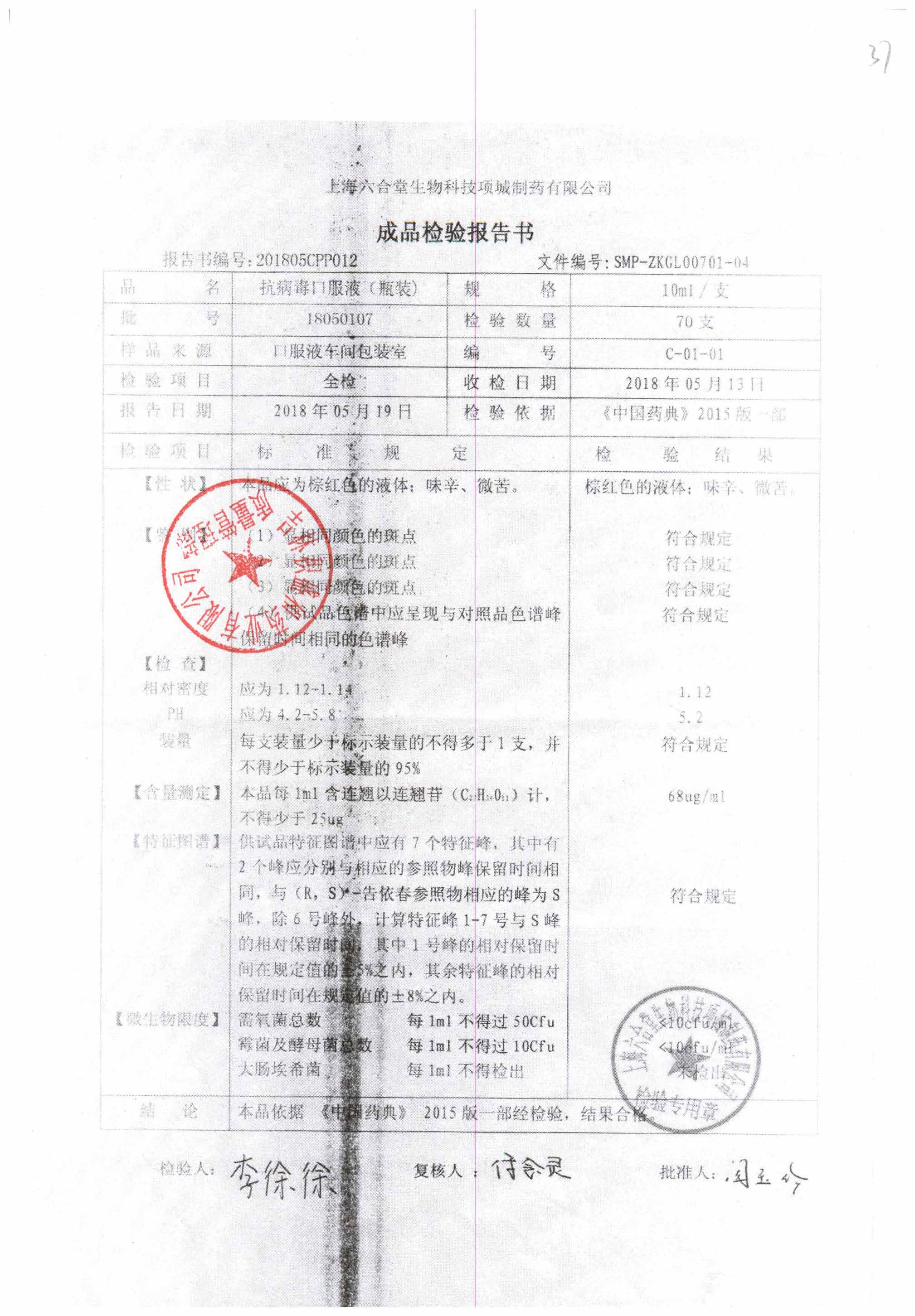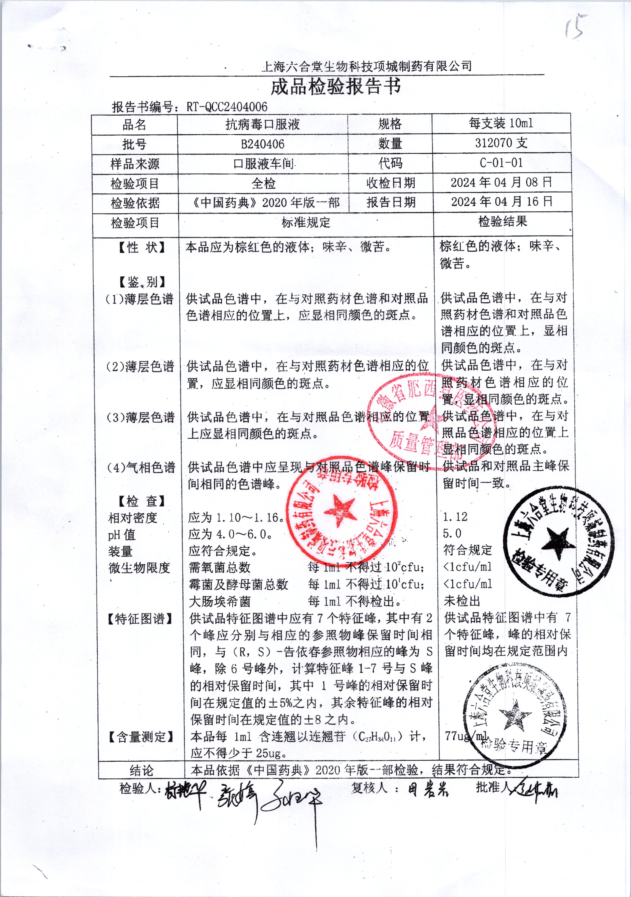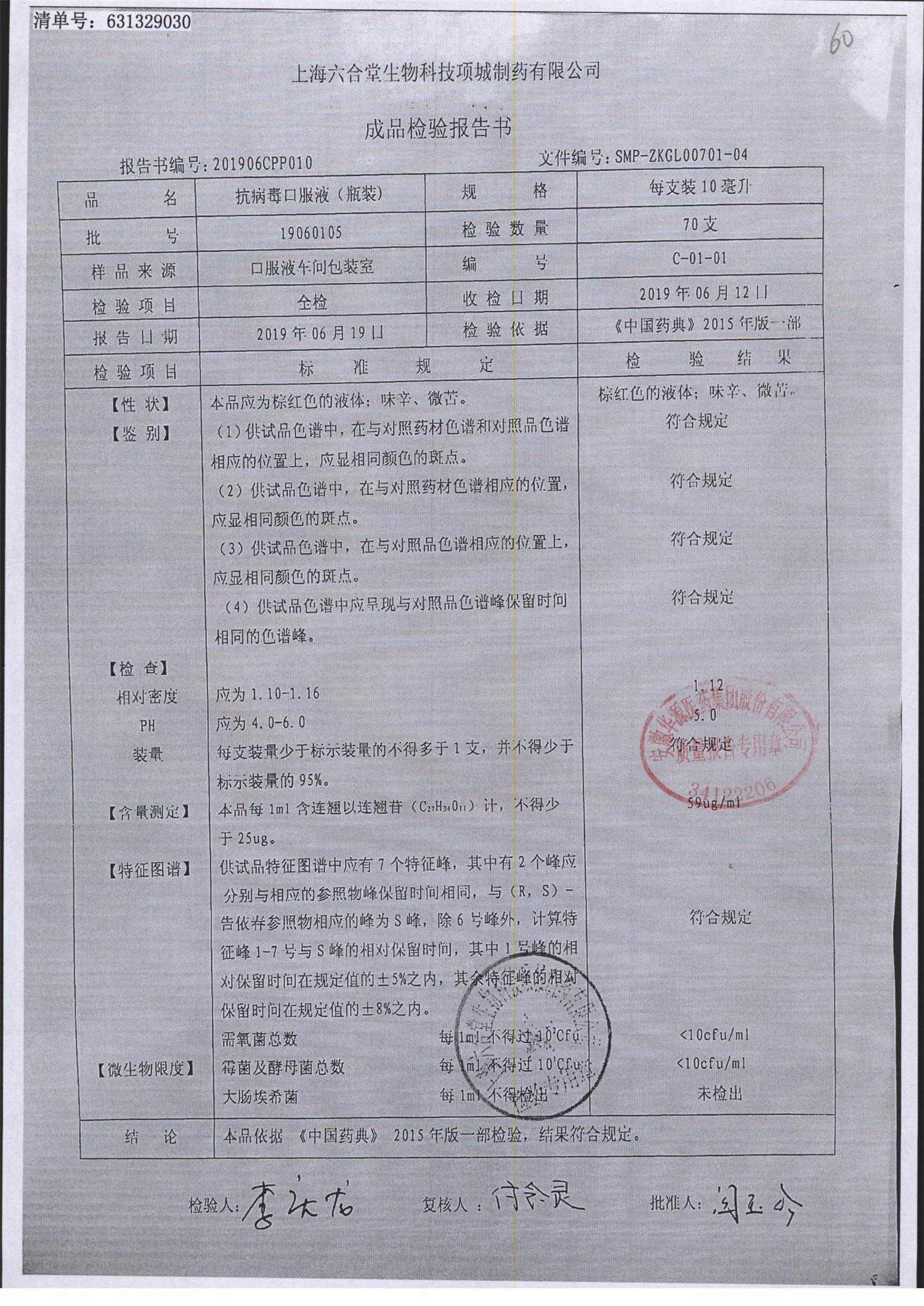 抗病毒口服液 | 10ml | B240406 | 查看详情 |