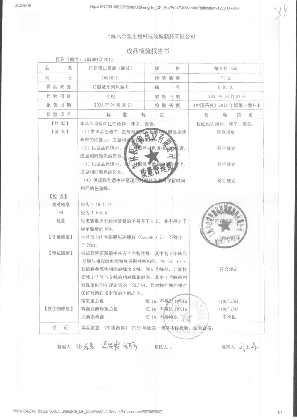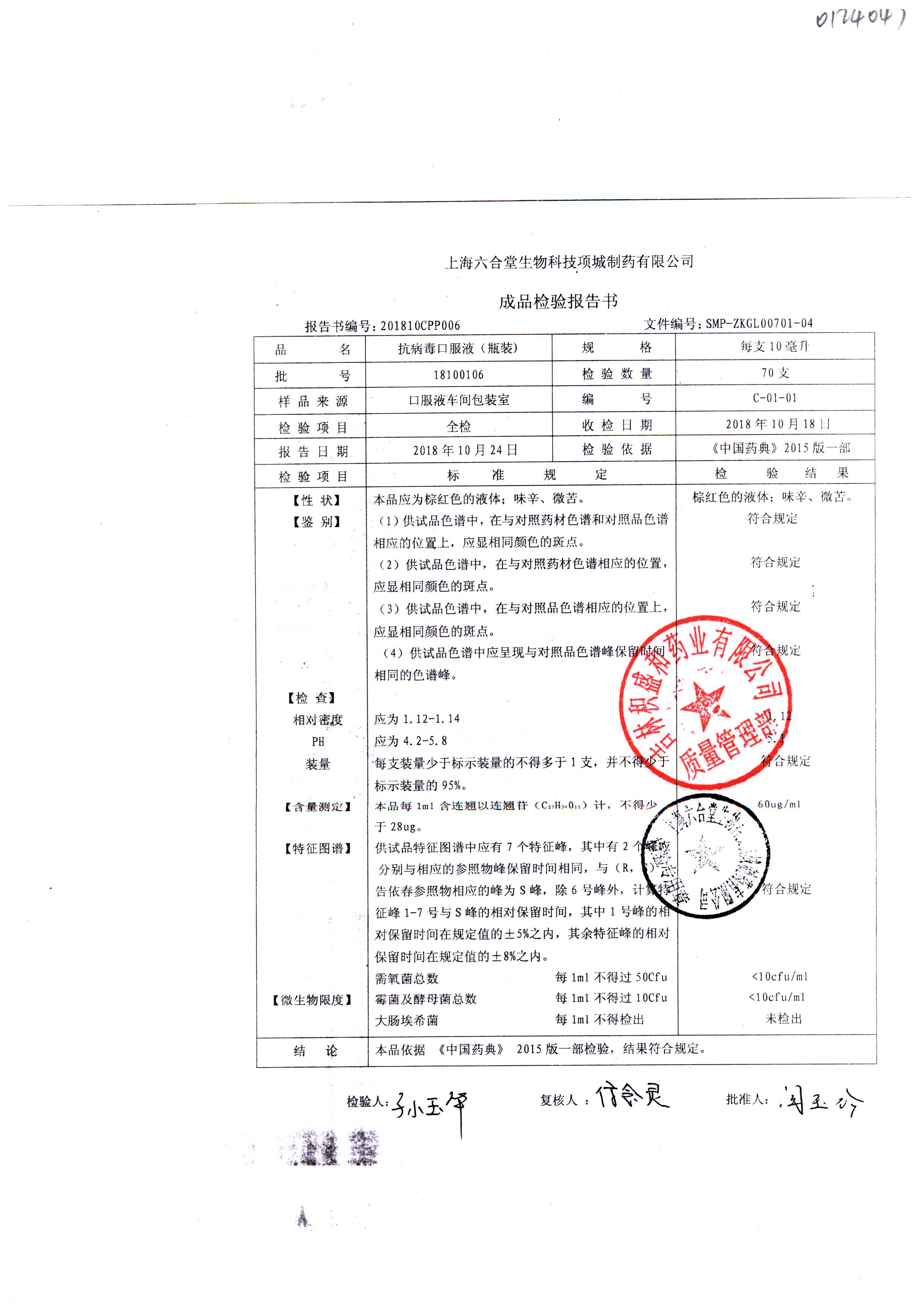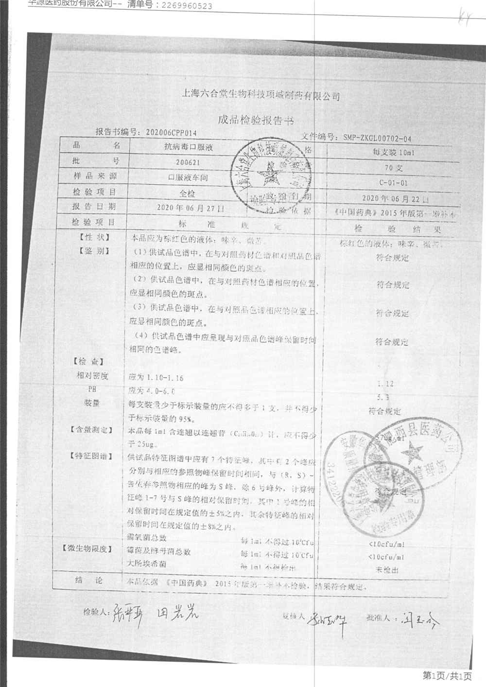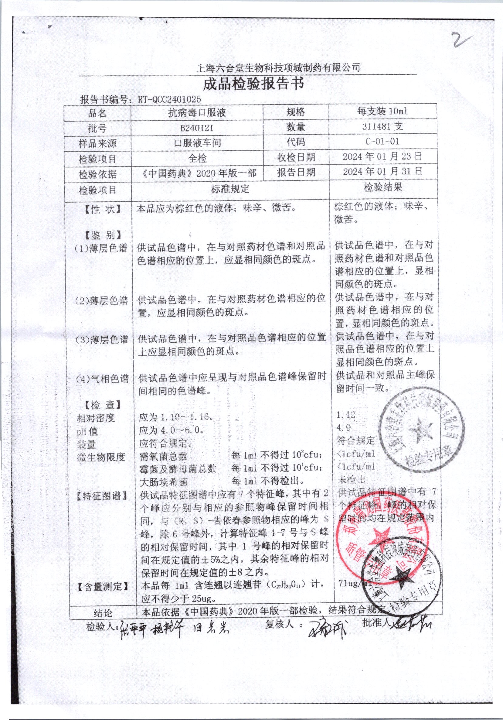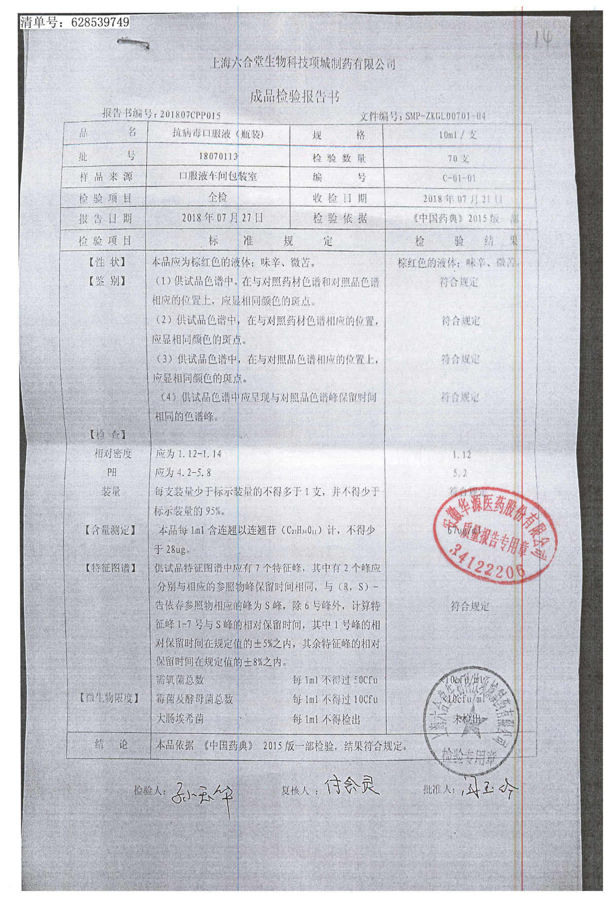 抗病毒口服液 | 10ml | B240406 | 查看详情 |