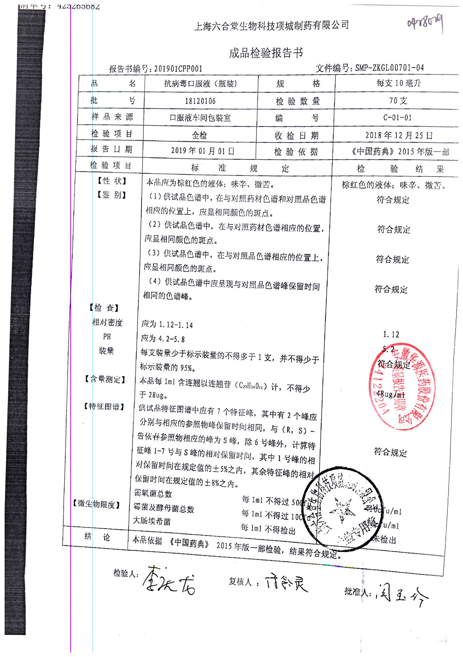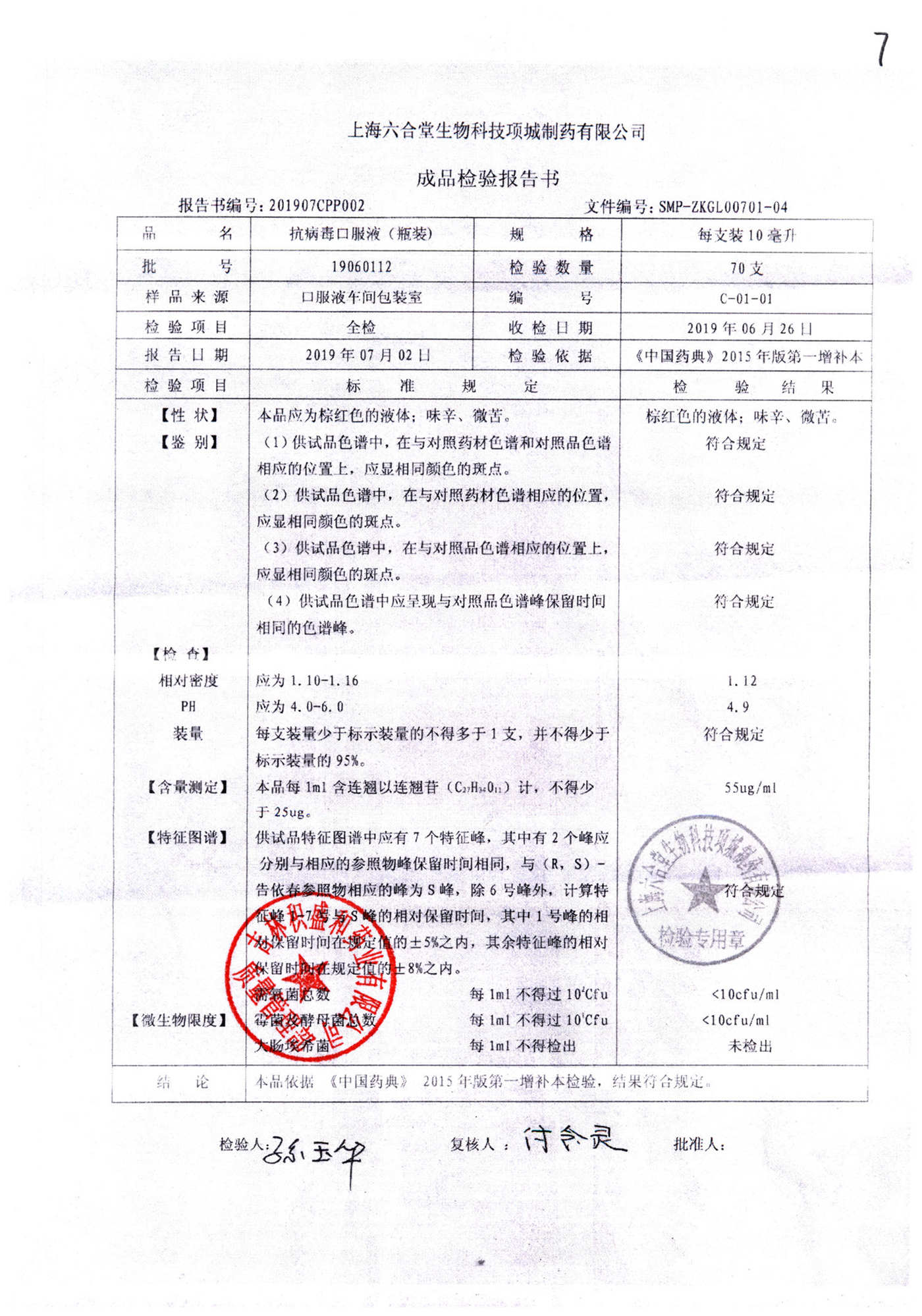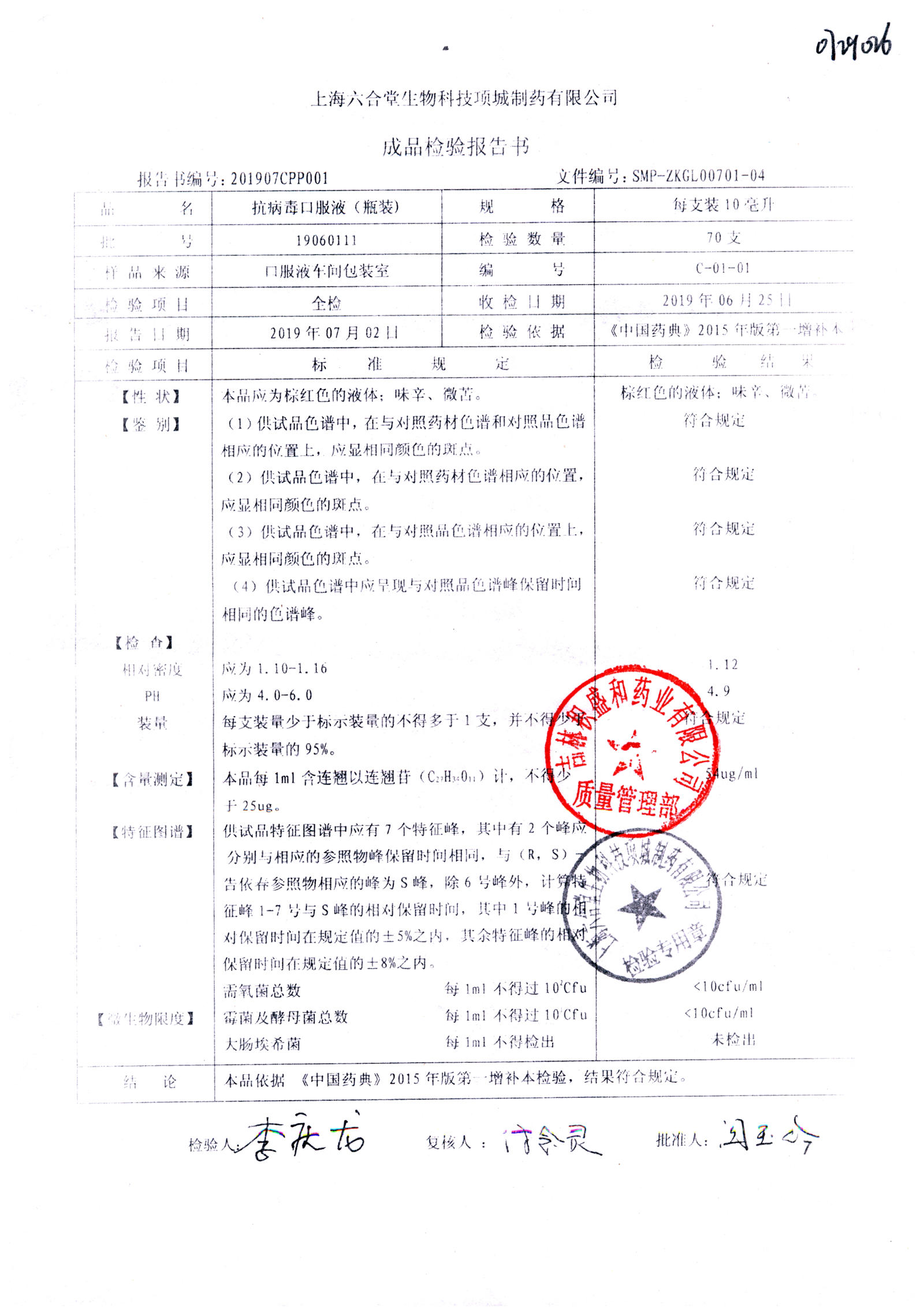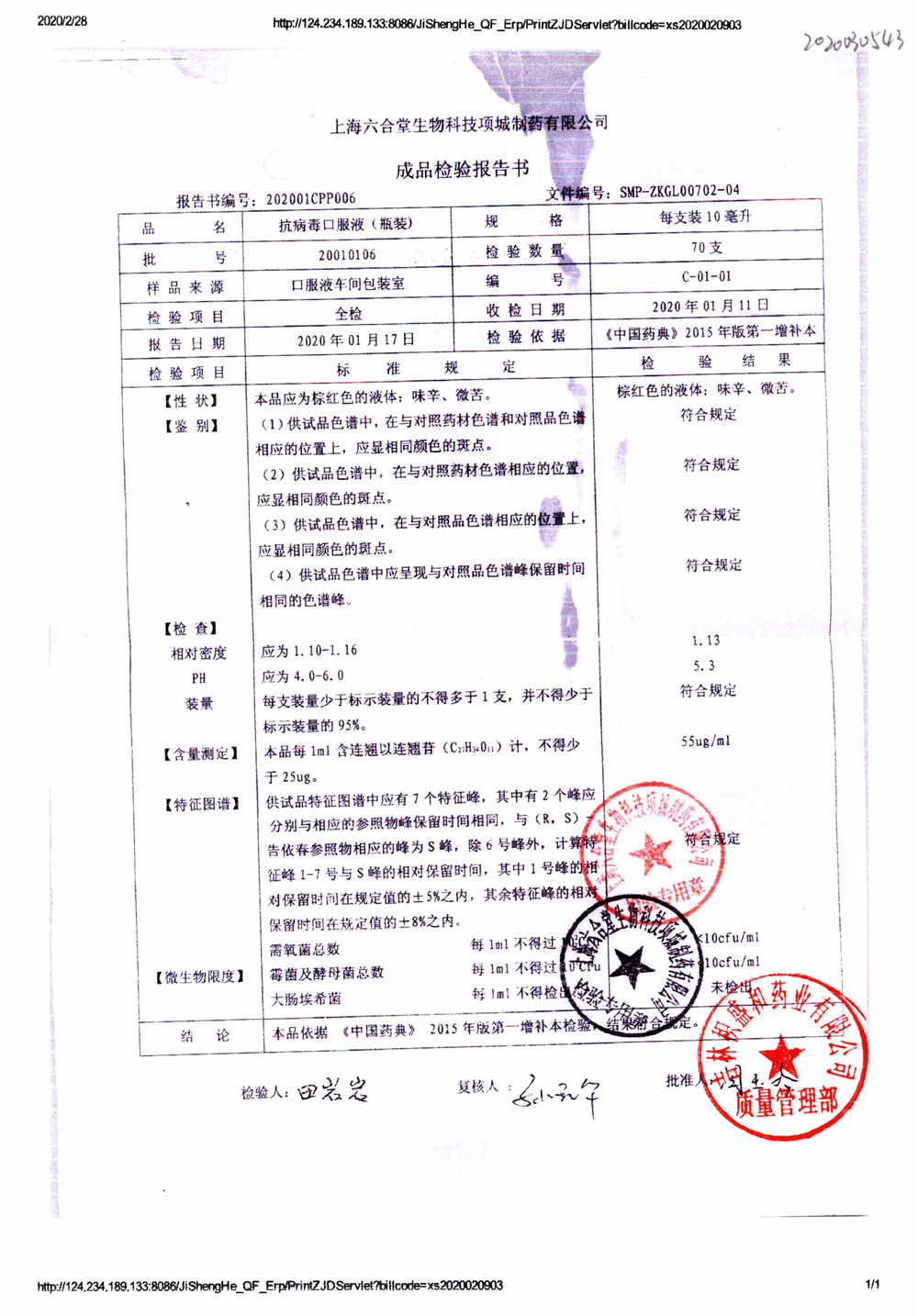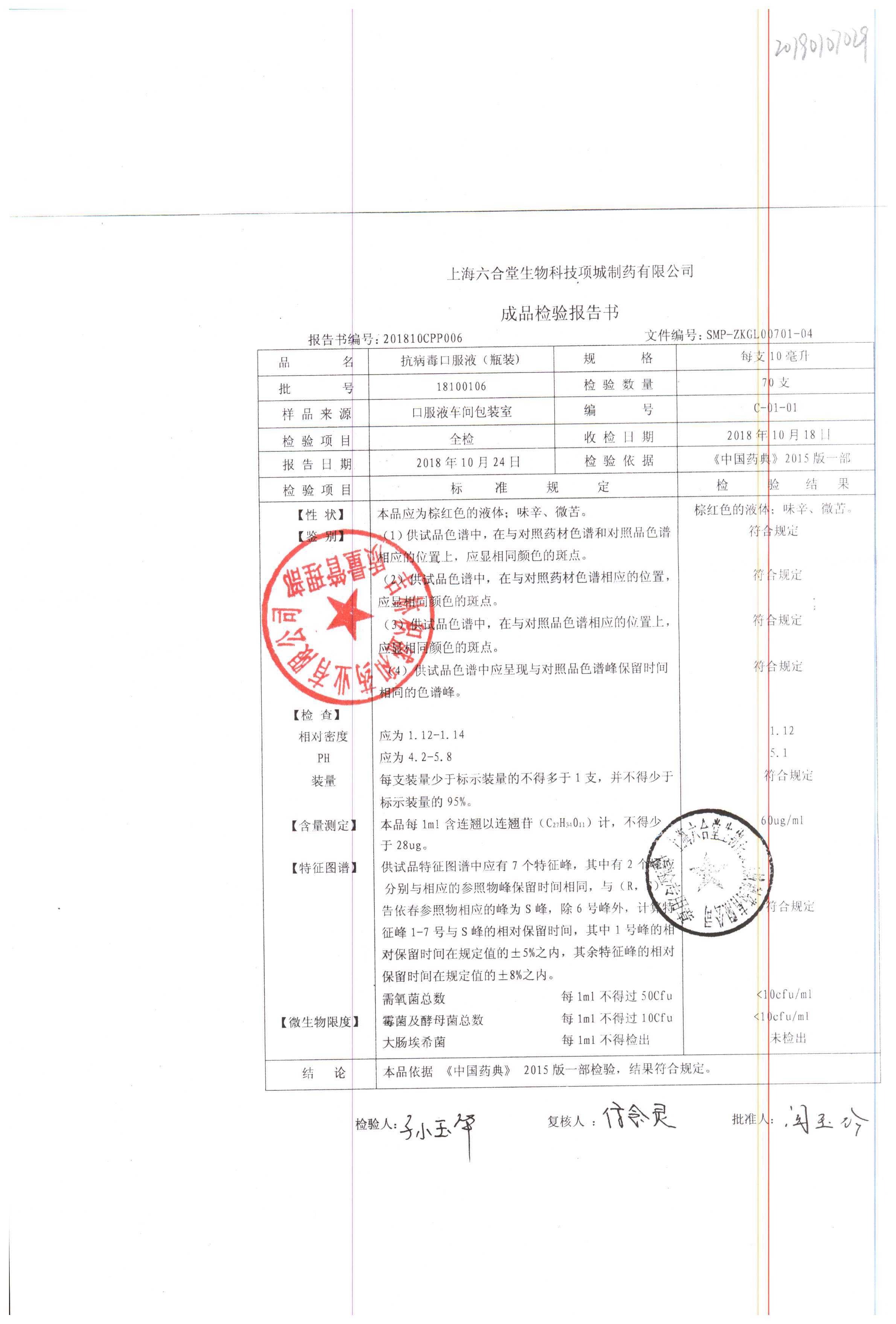 抗病毒口服液 | 10ml | B240406 | 查看详情 |