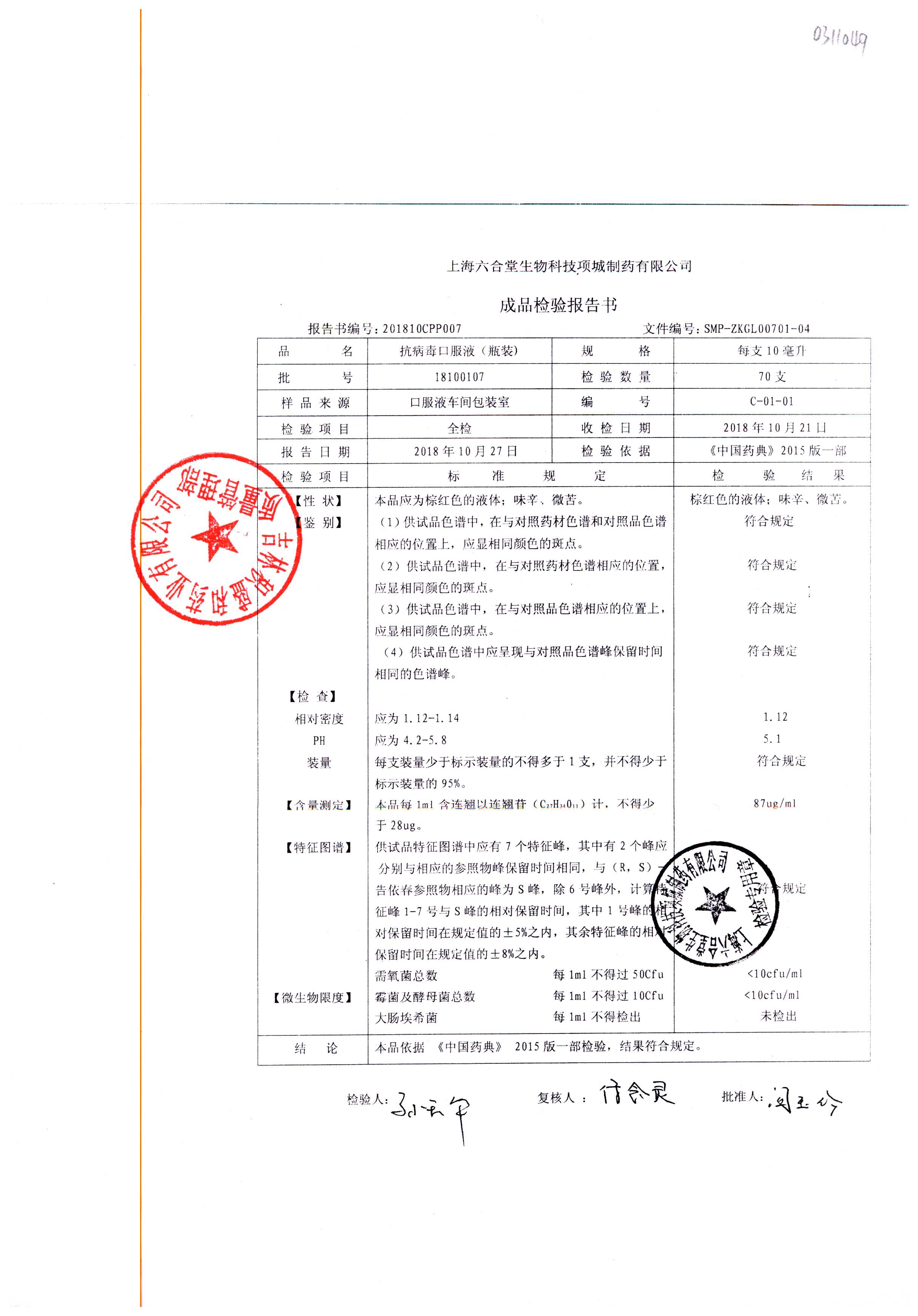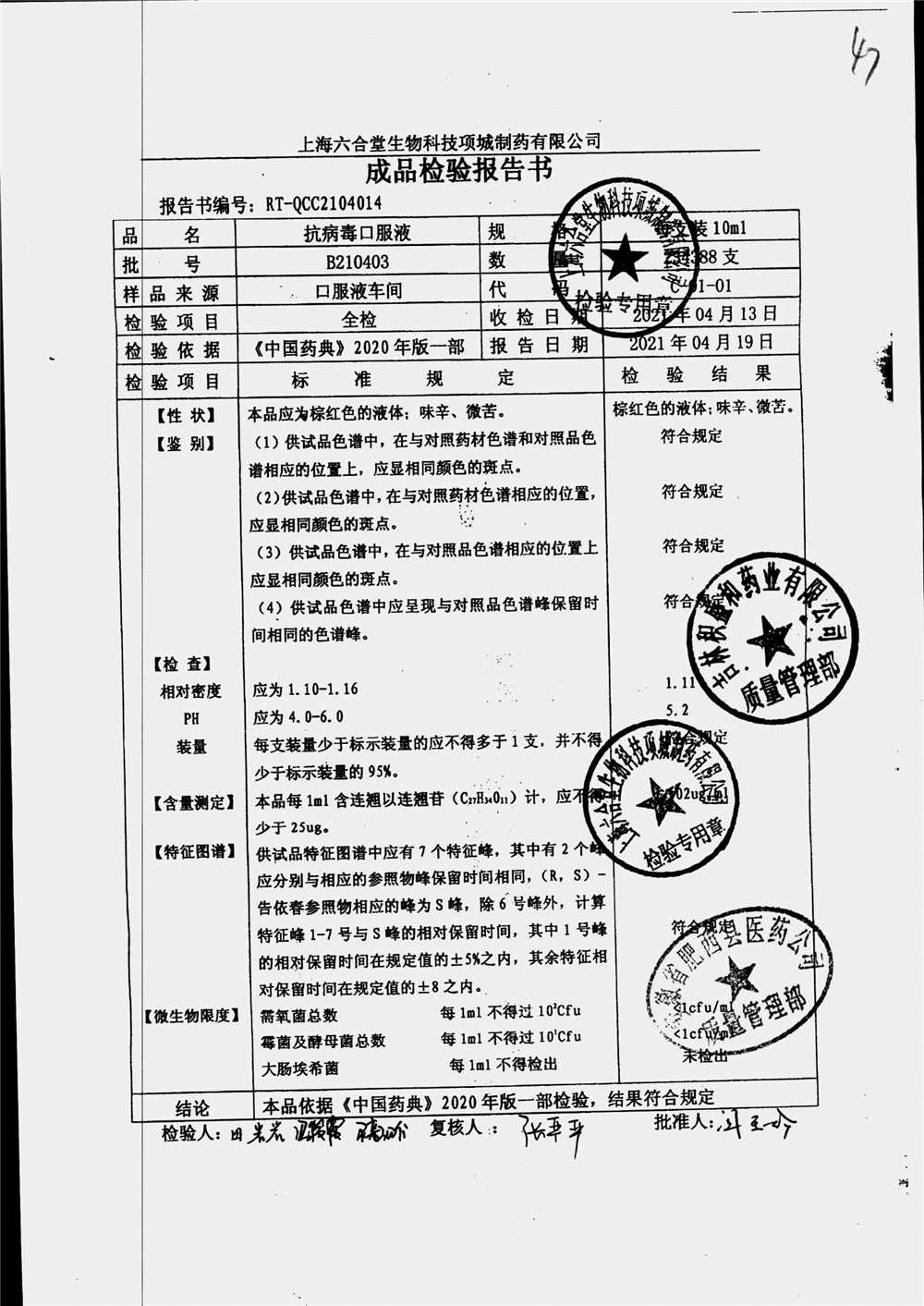 抗病毒口服液 | 10ml | B210403 | 查看详情 |