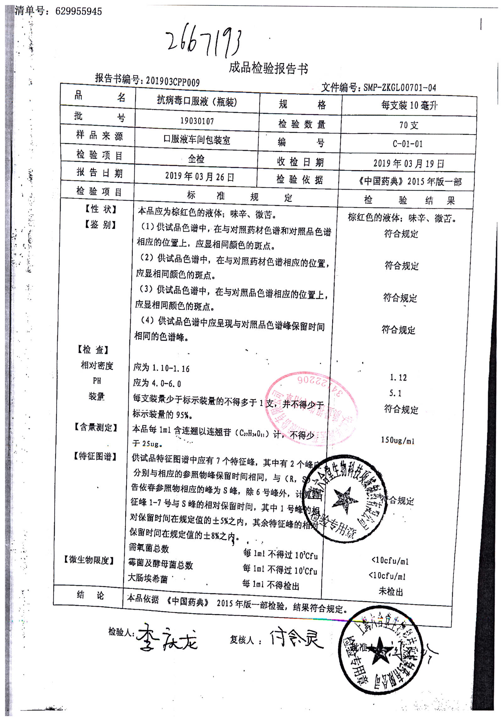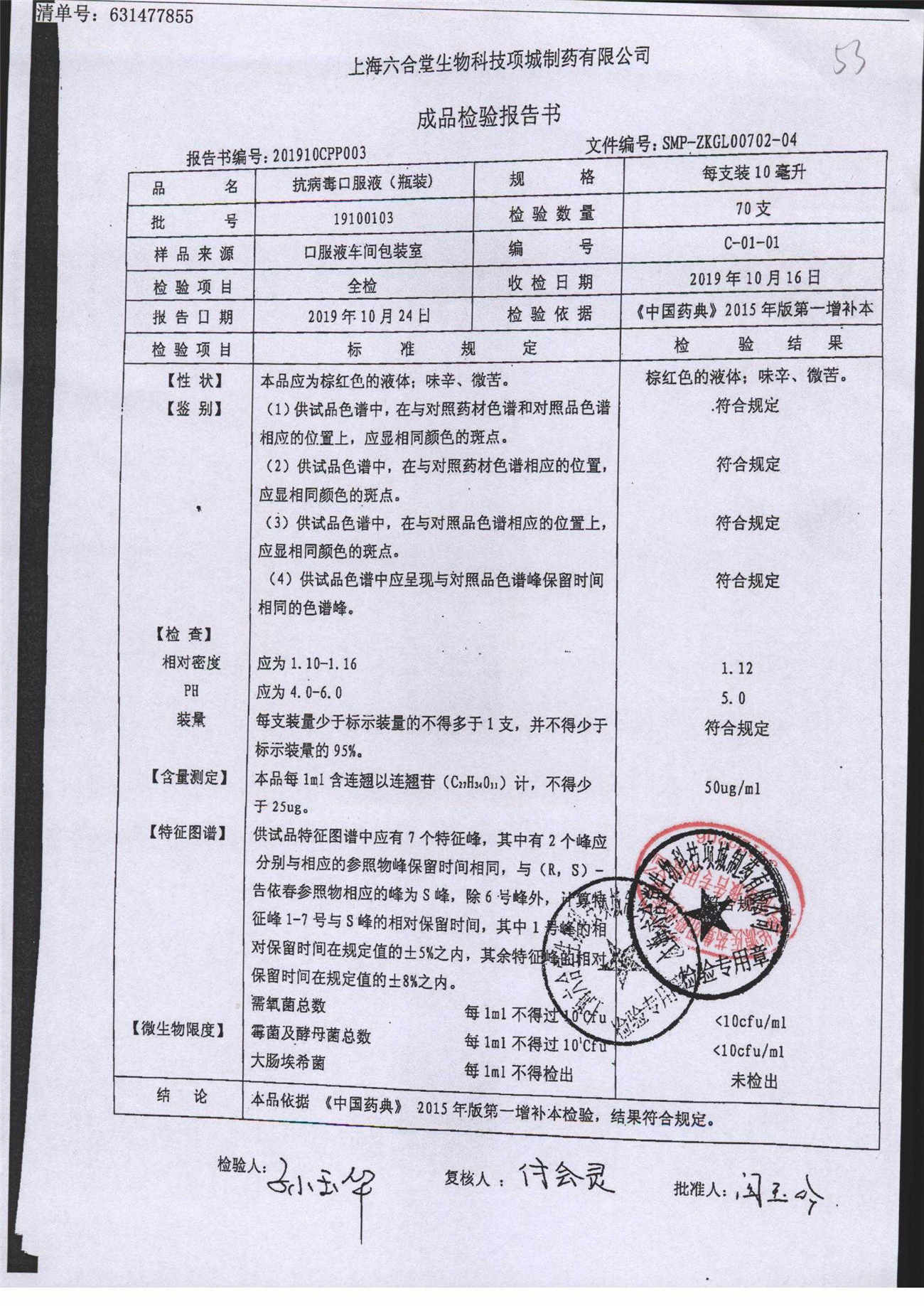 抗病毒口服液 | 10ml | B240419 | 查看详情 |