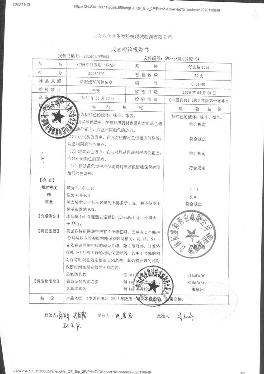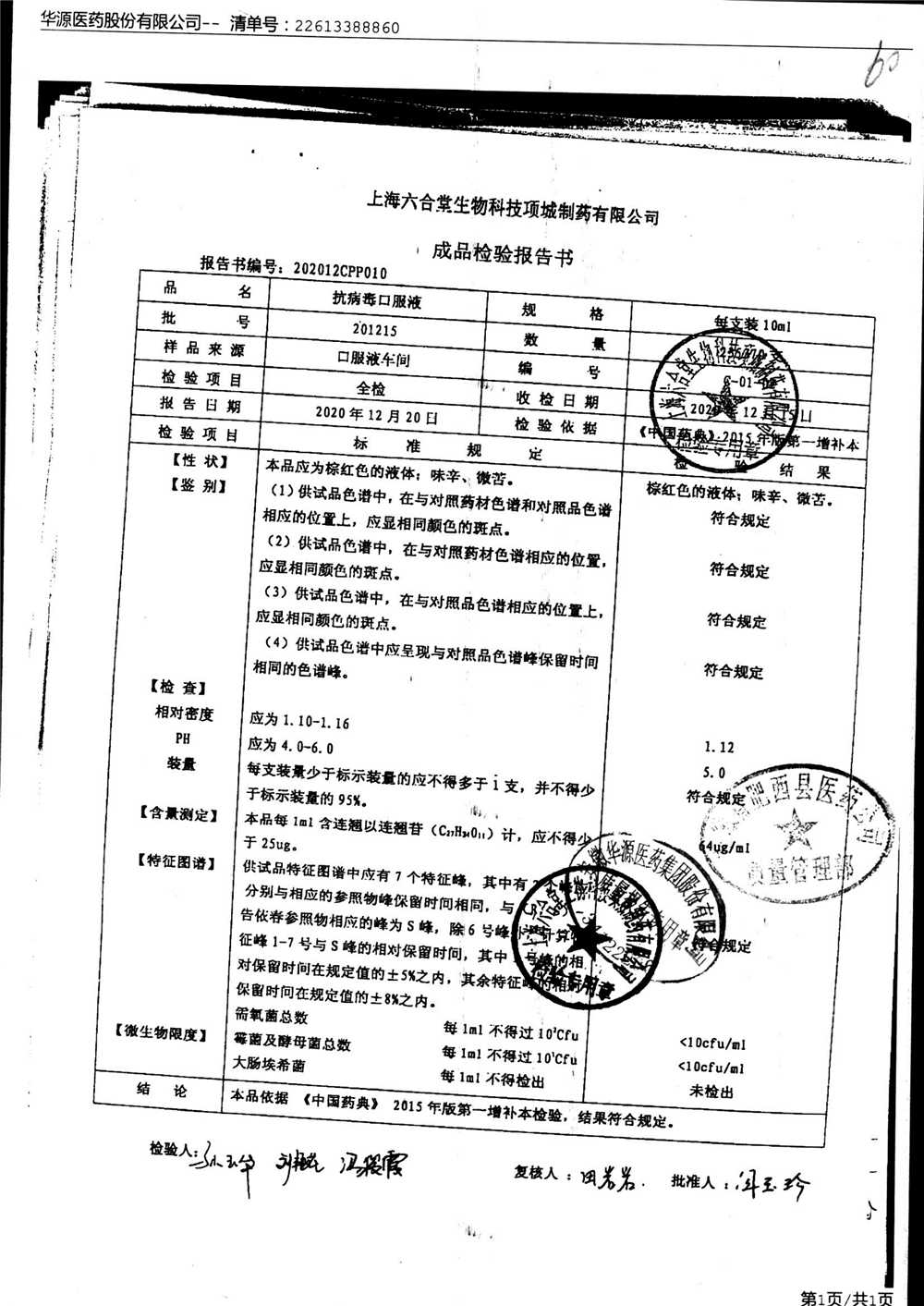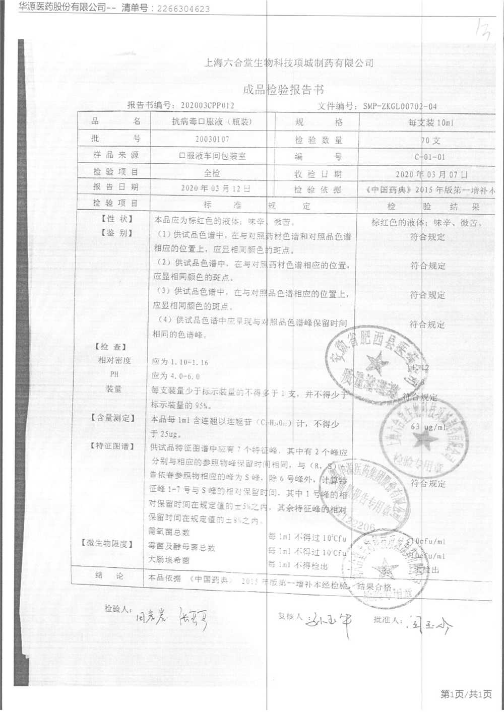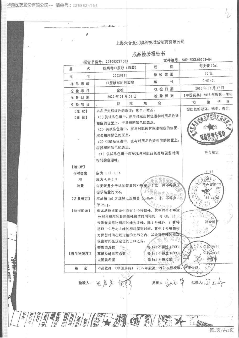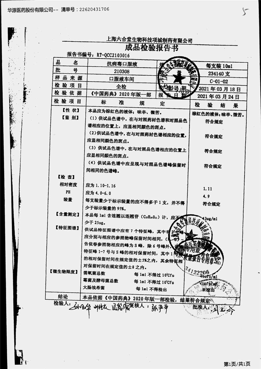 抗病毒口服液 | 10ml | 210308 | 查看详情 |
