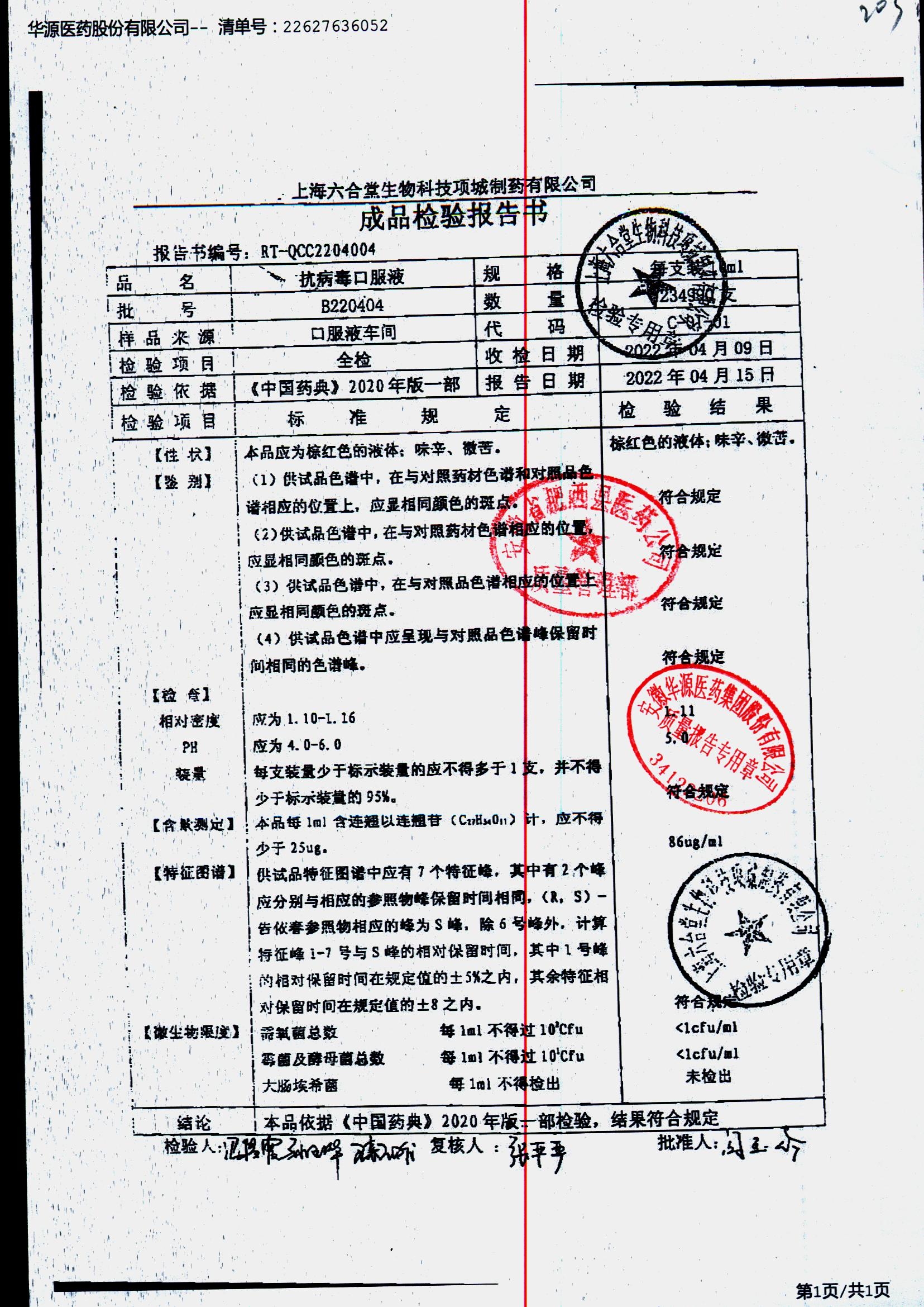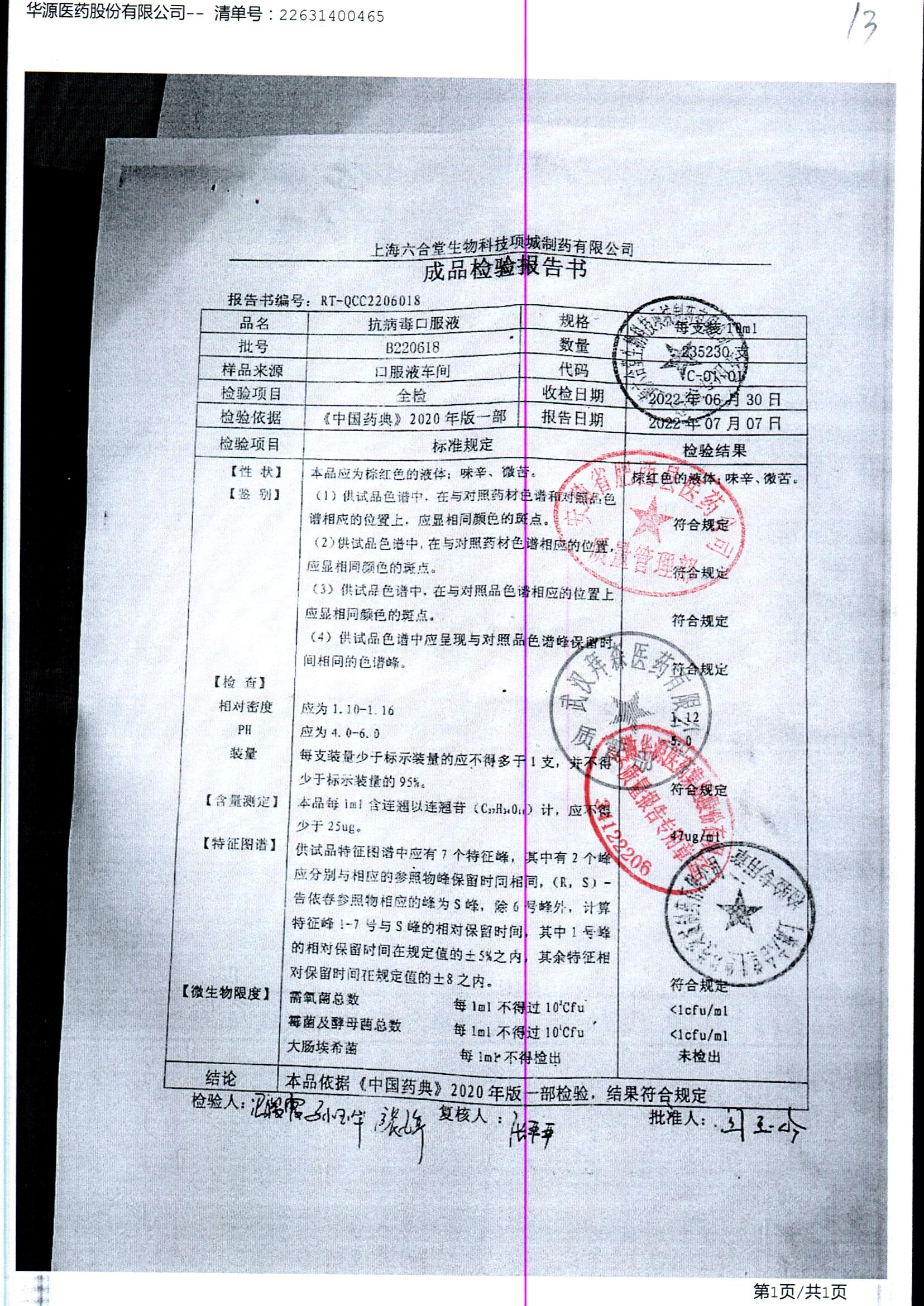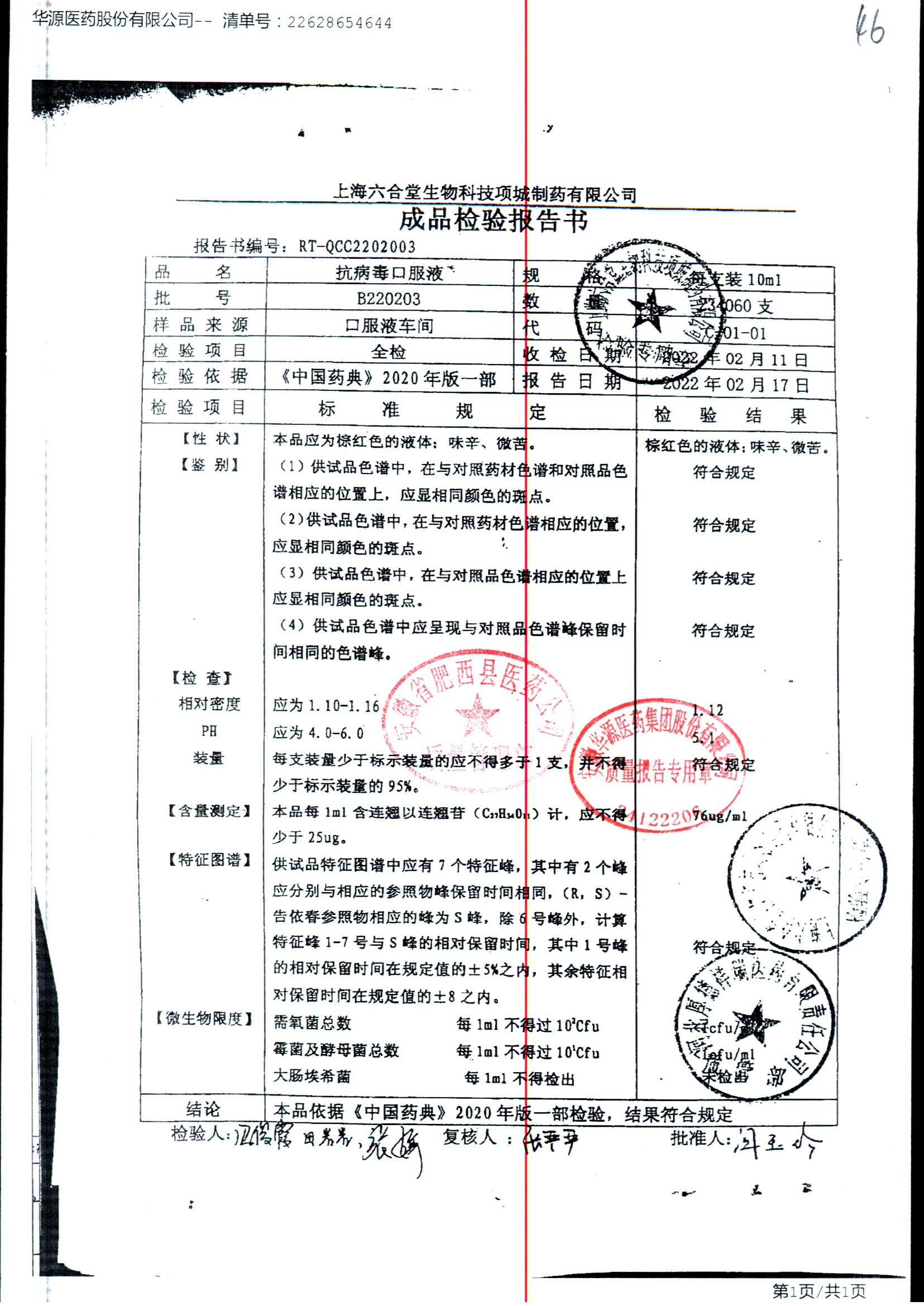 抗病毒口服液 | 10ml | B220201 | 查看详情 |