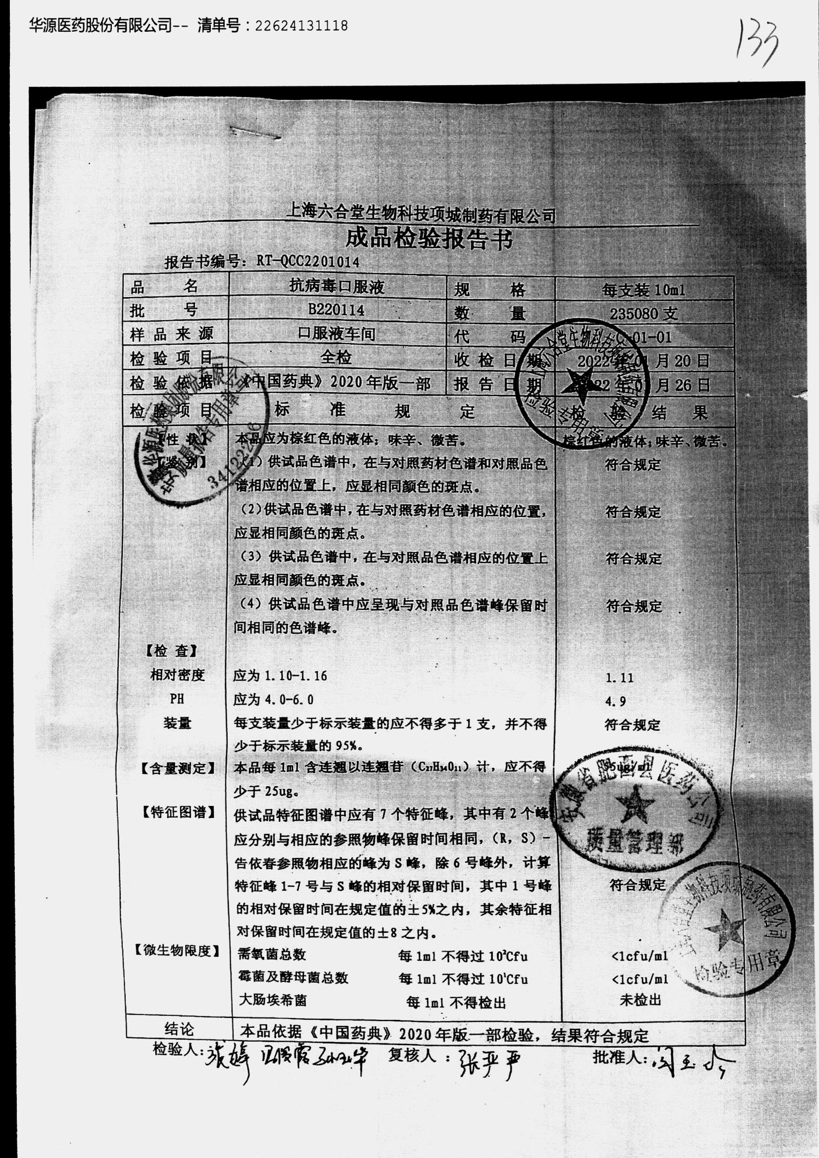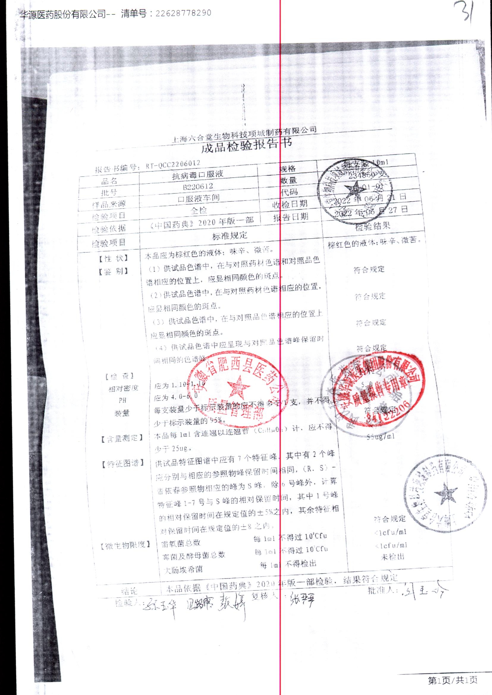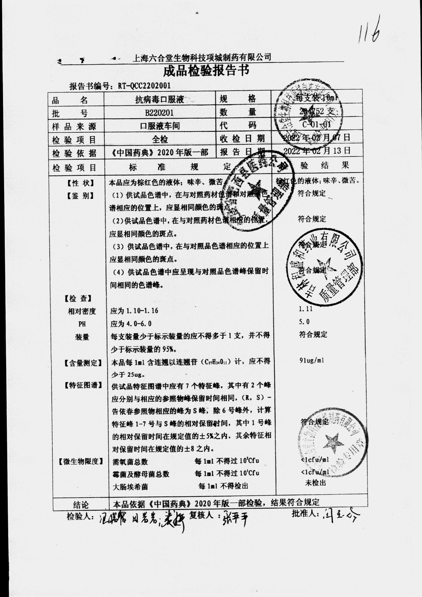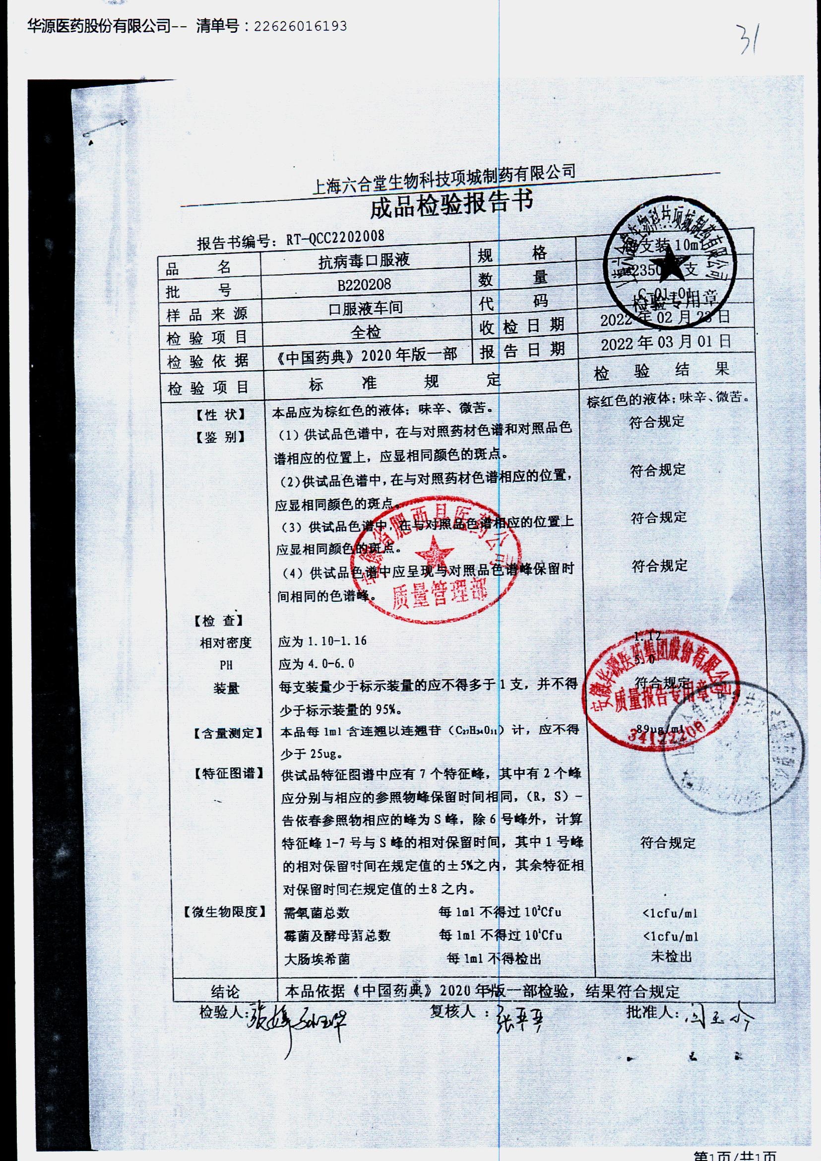 抗病毒口服液 | 10ml | B220201 | 查看详情 |