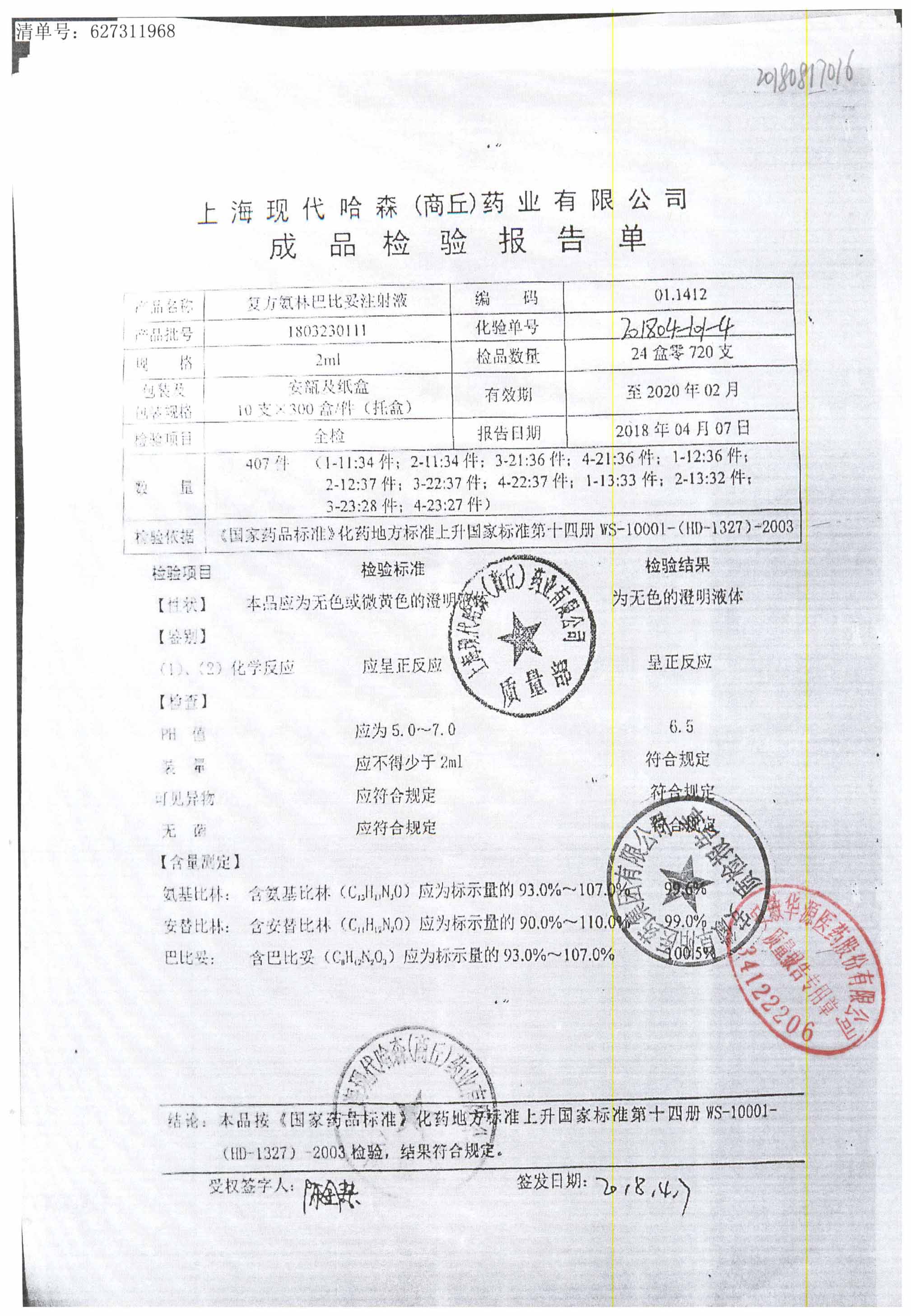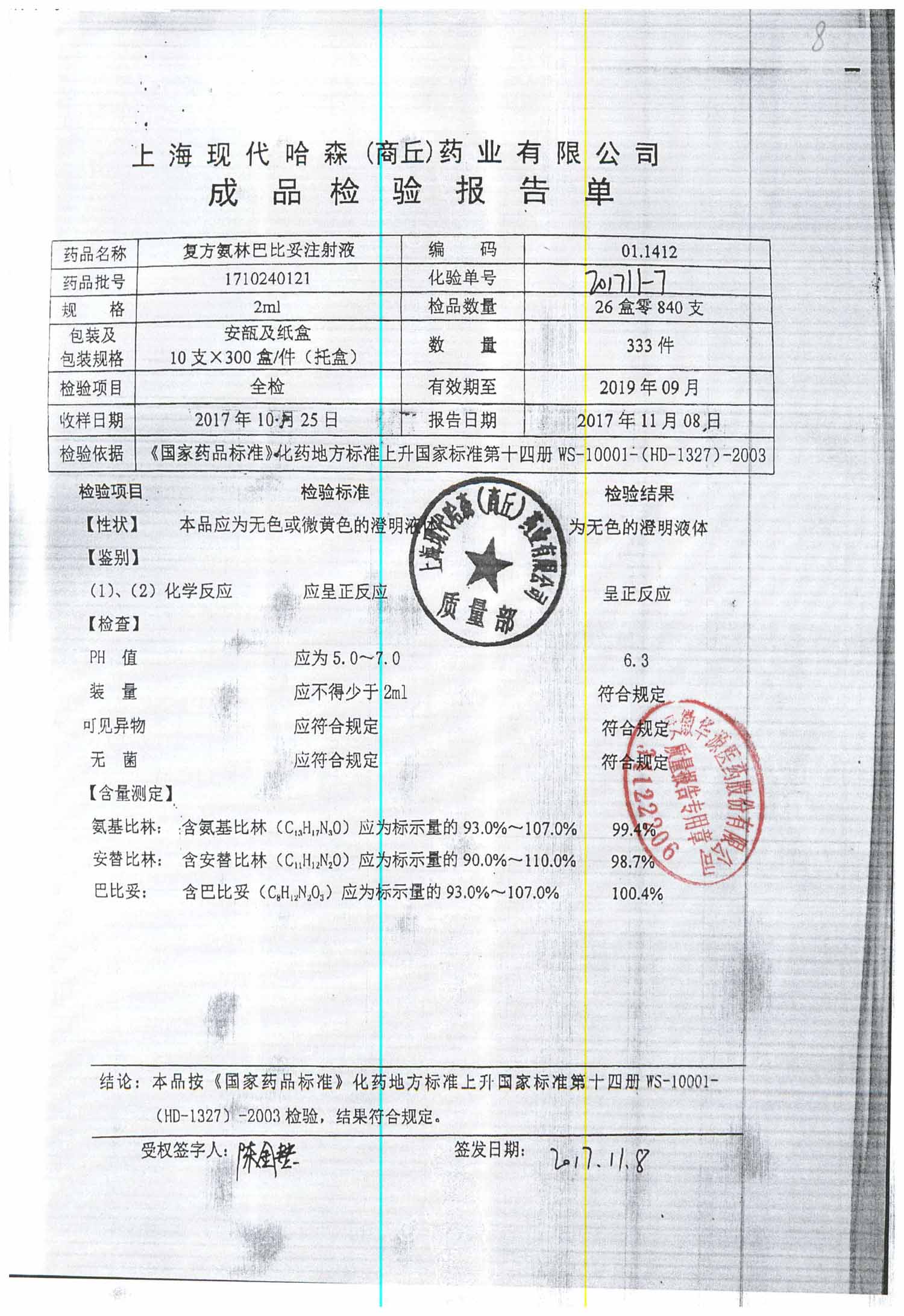复方氨林巴比妥注射液 | 2ml | 1710240121 | 查看详情 |