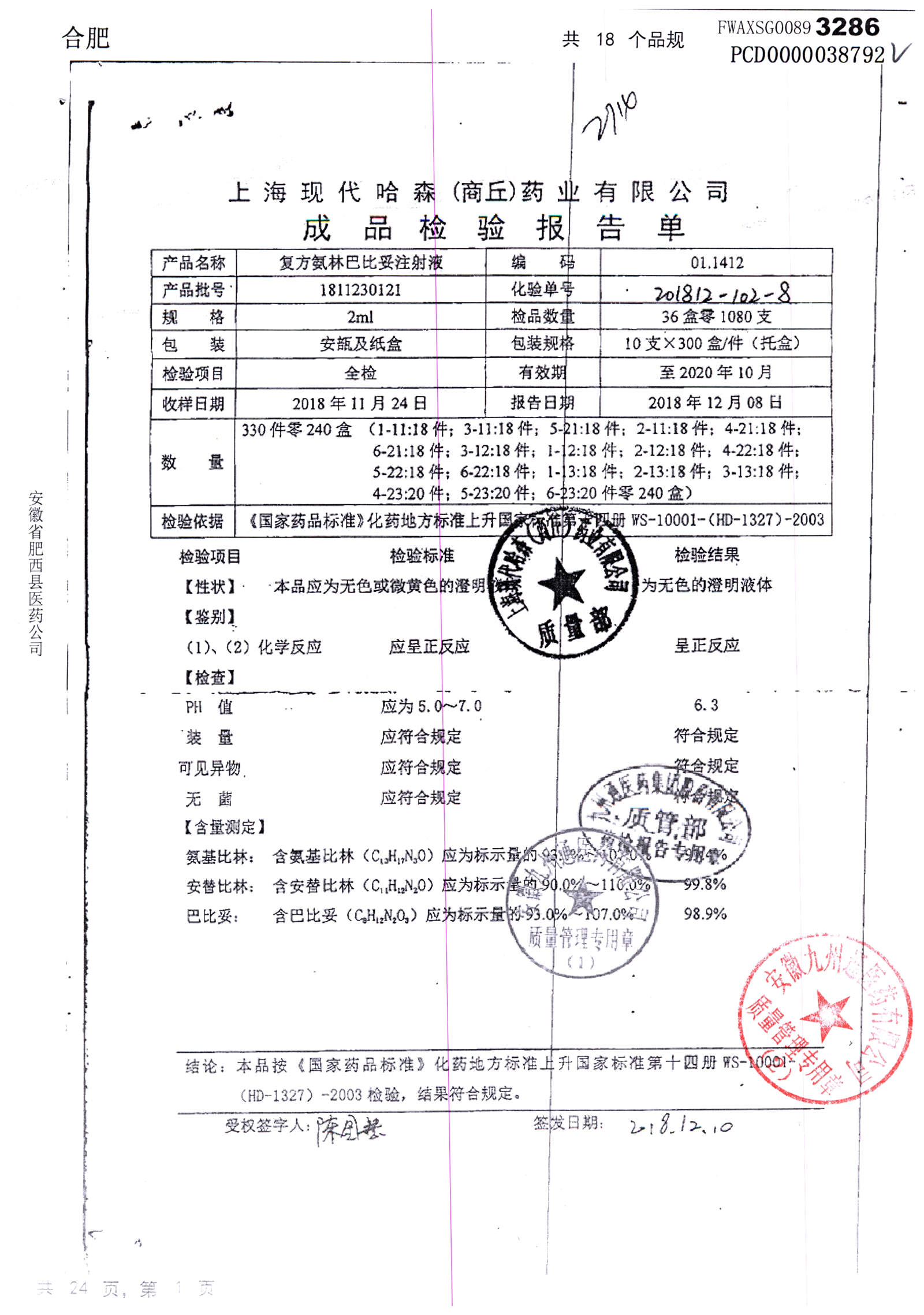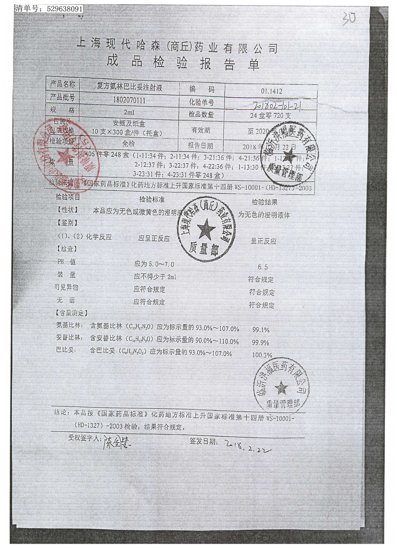 复方氨林巴比妥注射液 | 2ml | 1811230121 | 查看详情 |