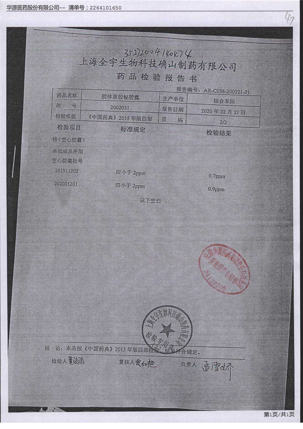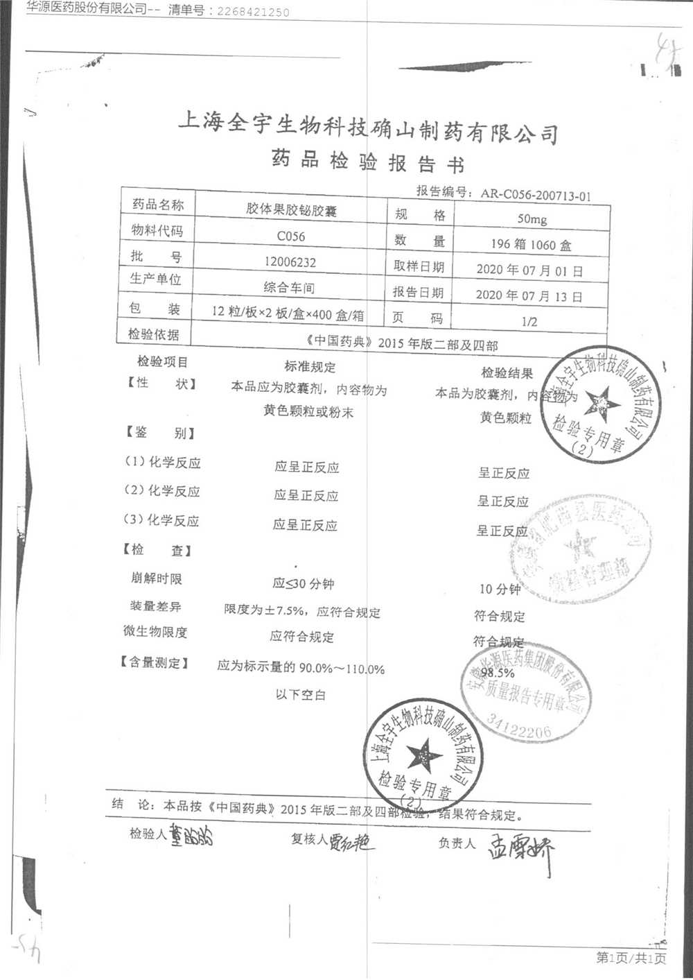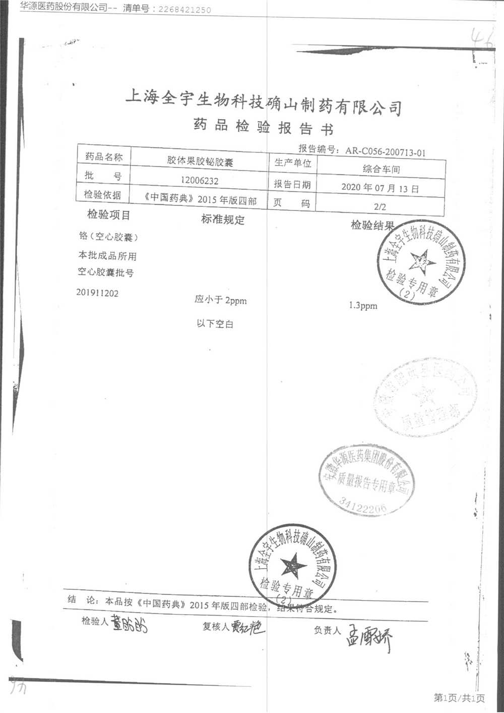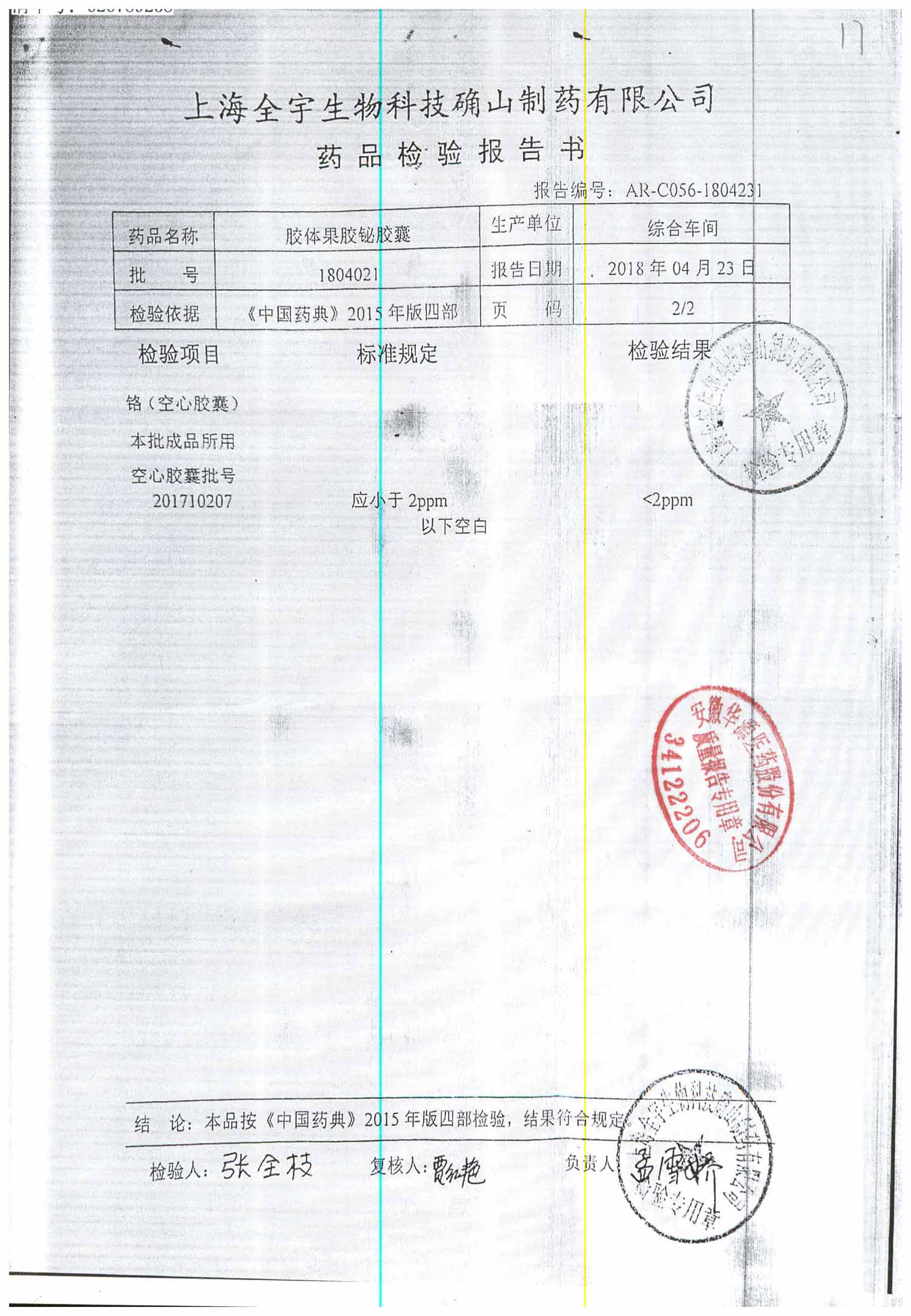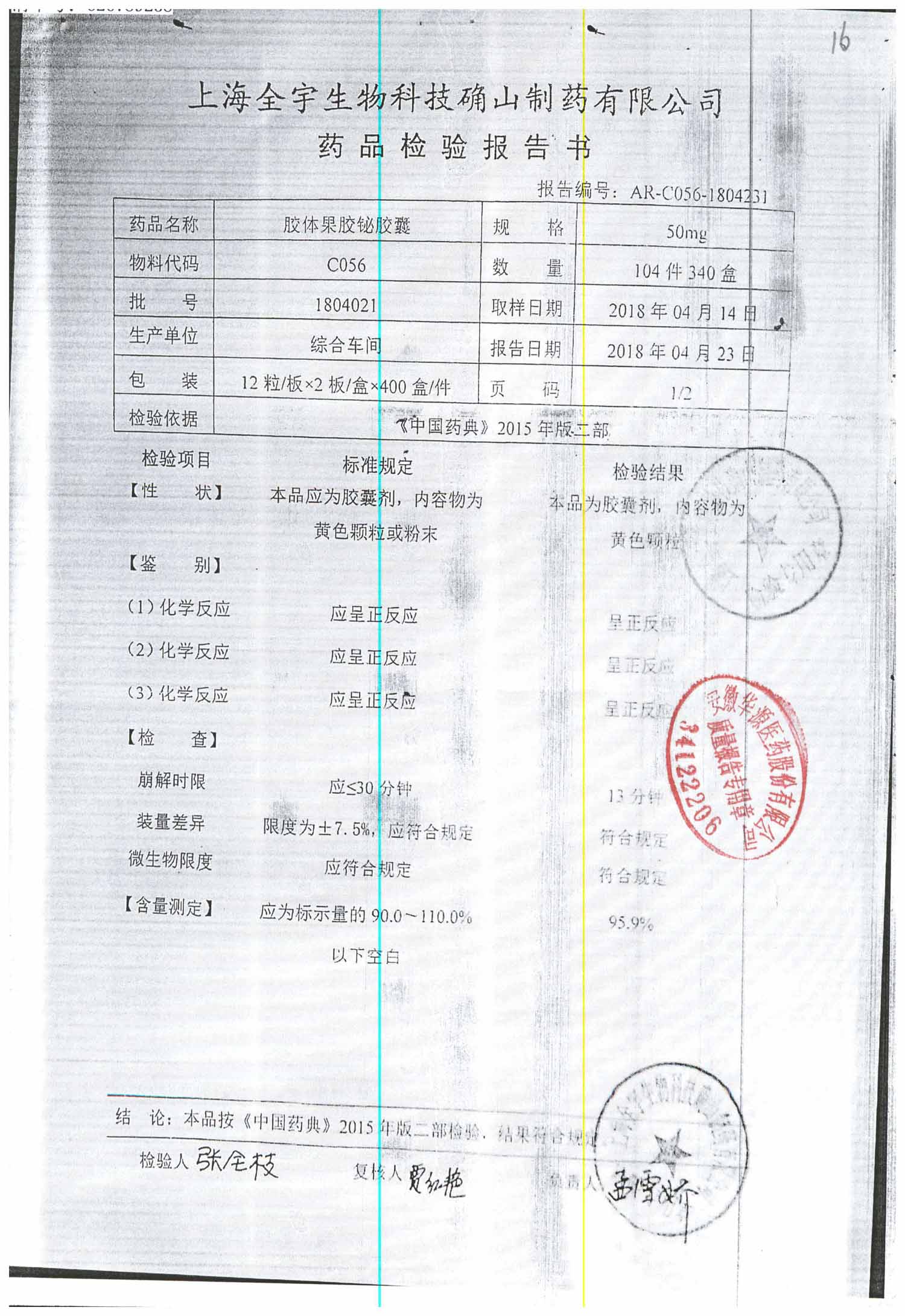 胶体果胶铋胶囊 | 50mg*24粒 | 1804021(铬) | 查看详情 |