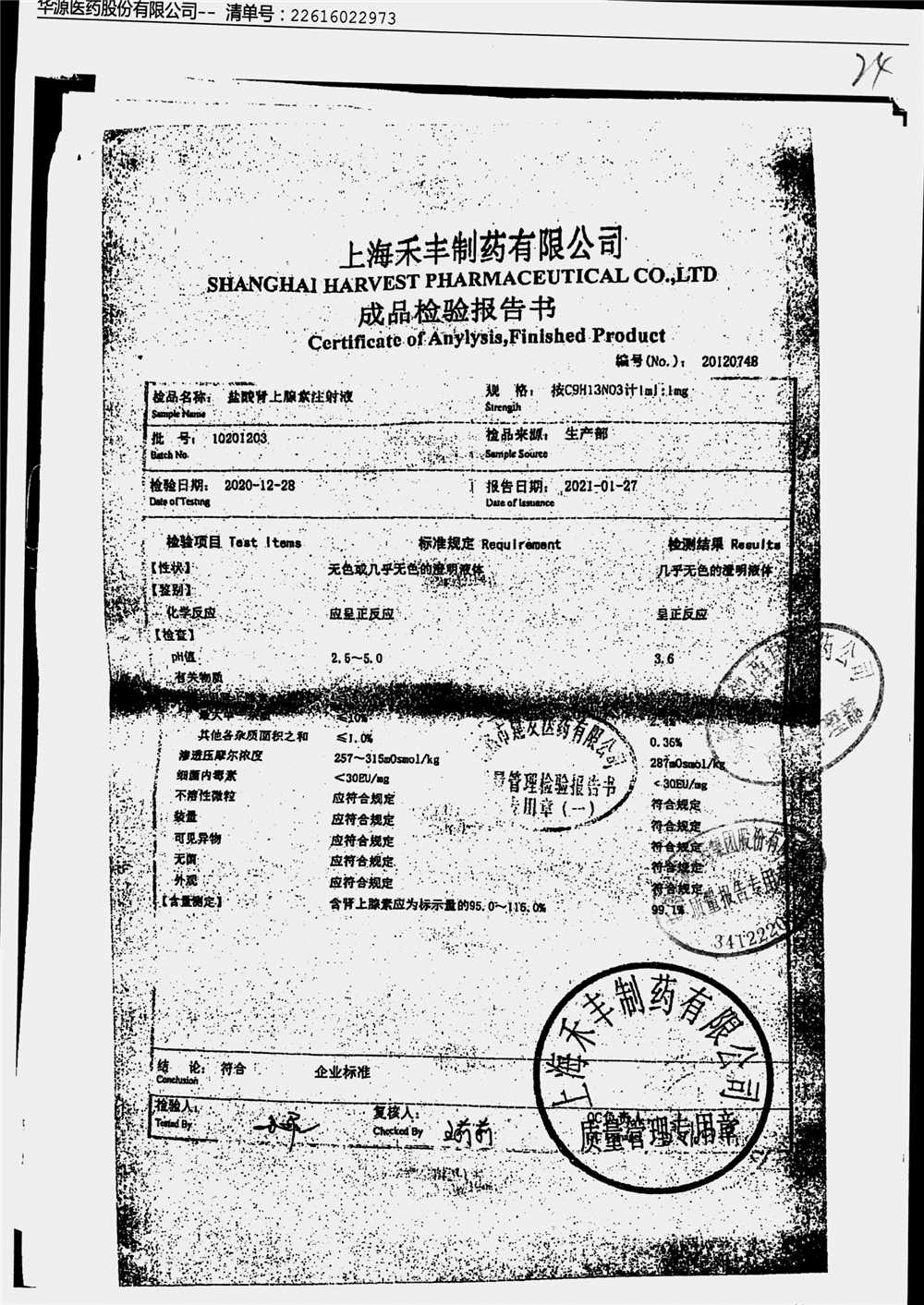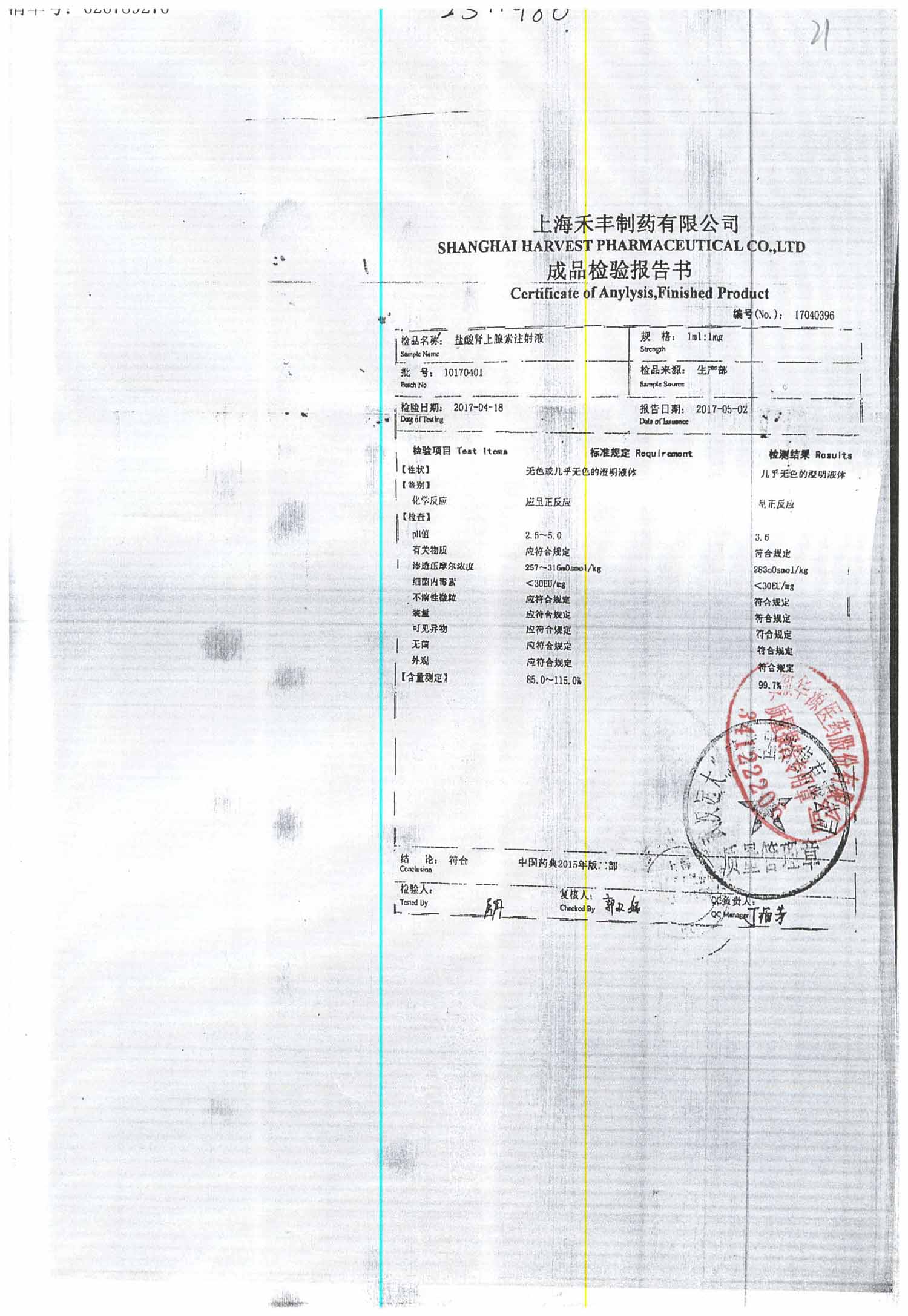 盐酸肾上腺素注射液 | 1ml:1mg | 10170401 | 查看详情 |