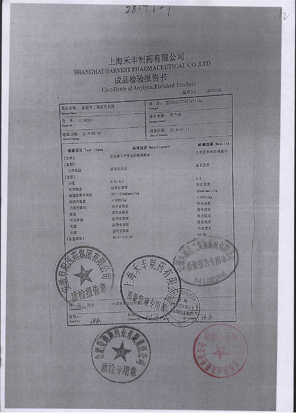 盐酸肾上腺素注射液 | 1ml:1mg | 10190204 | 查看详情 |