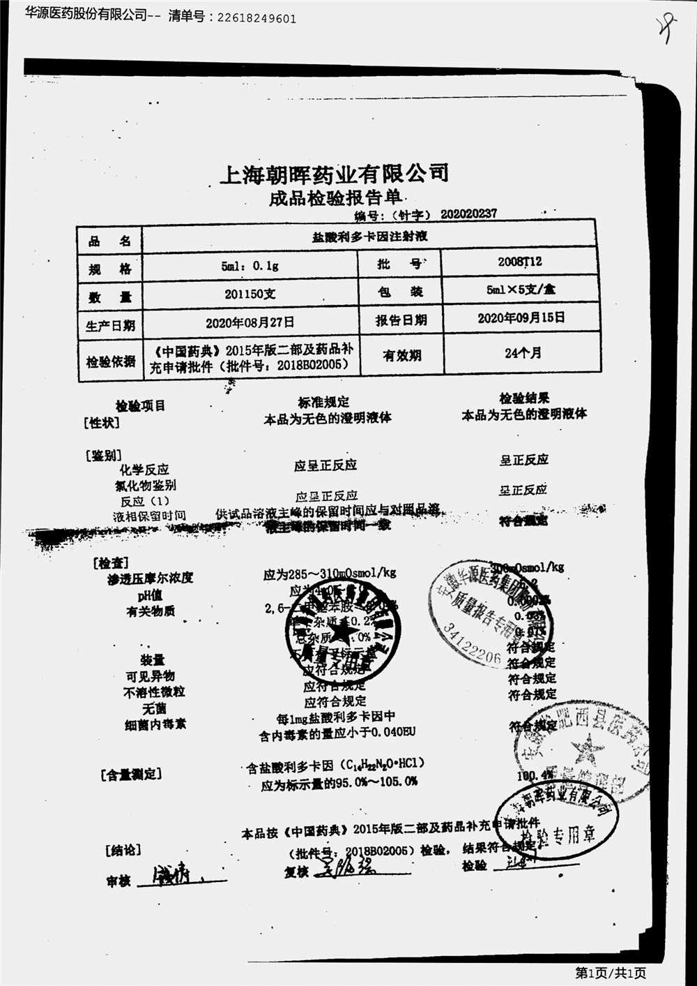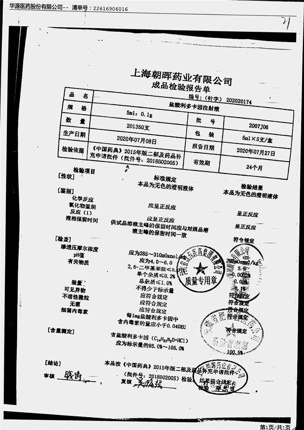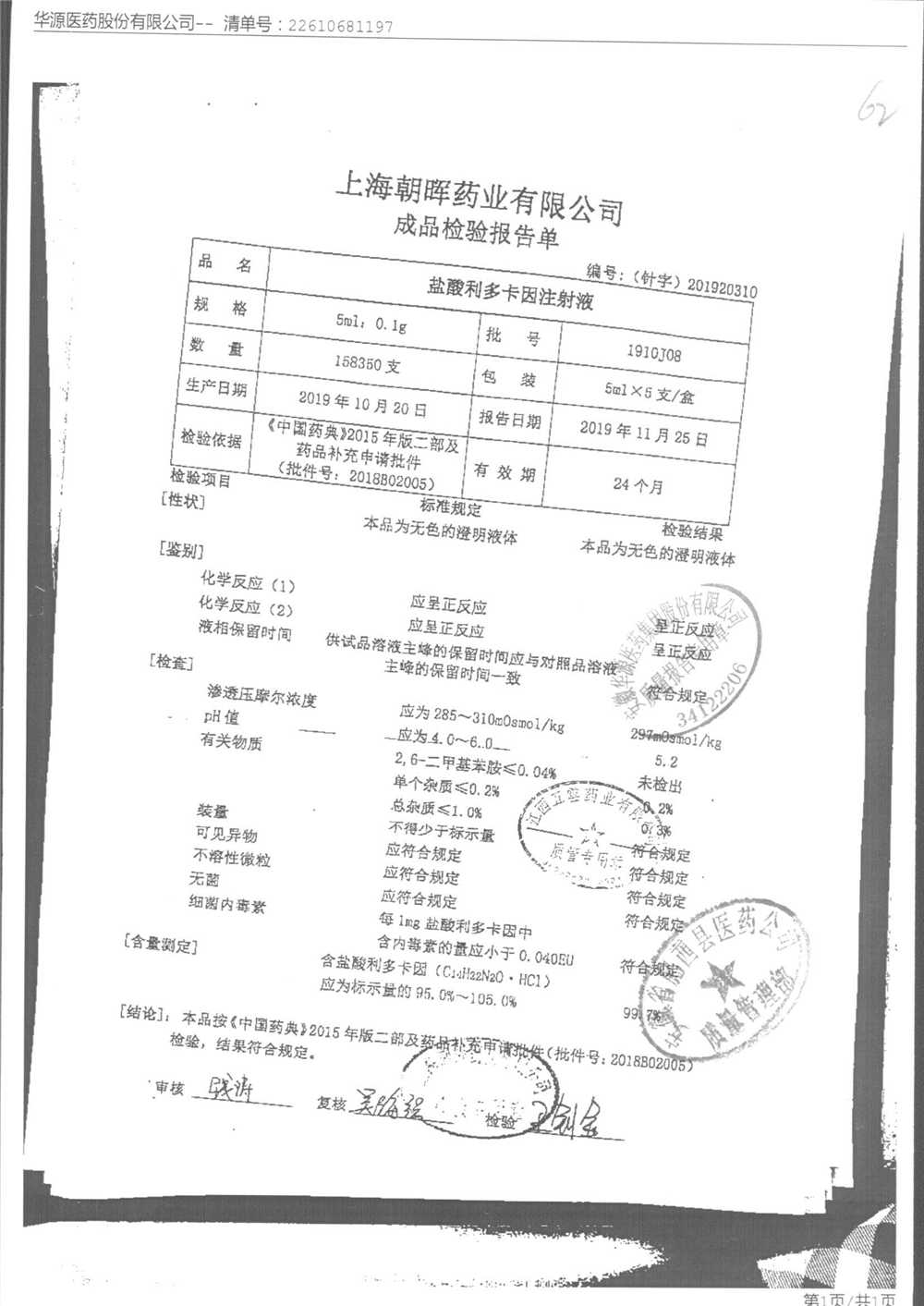 盐酸利多卡因注射液 | 20ml:0.4g | 1807J02 | 查看详情 |