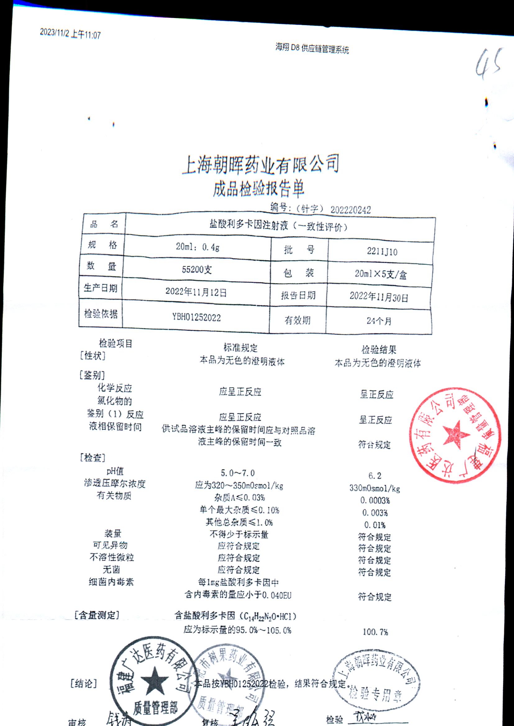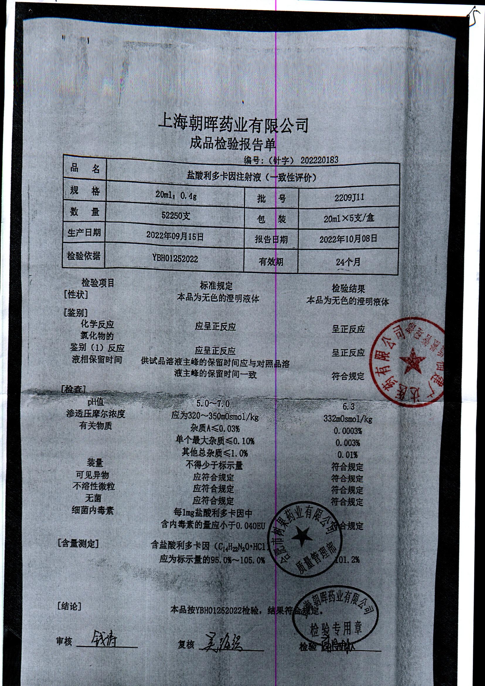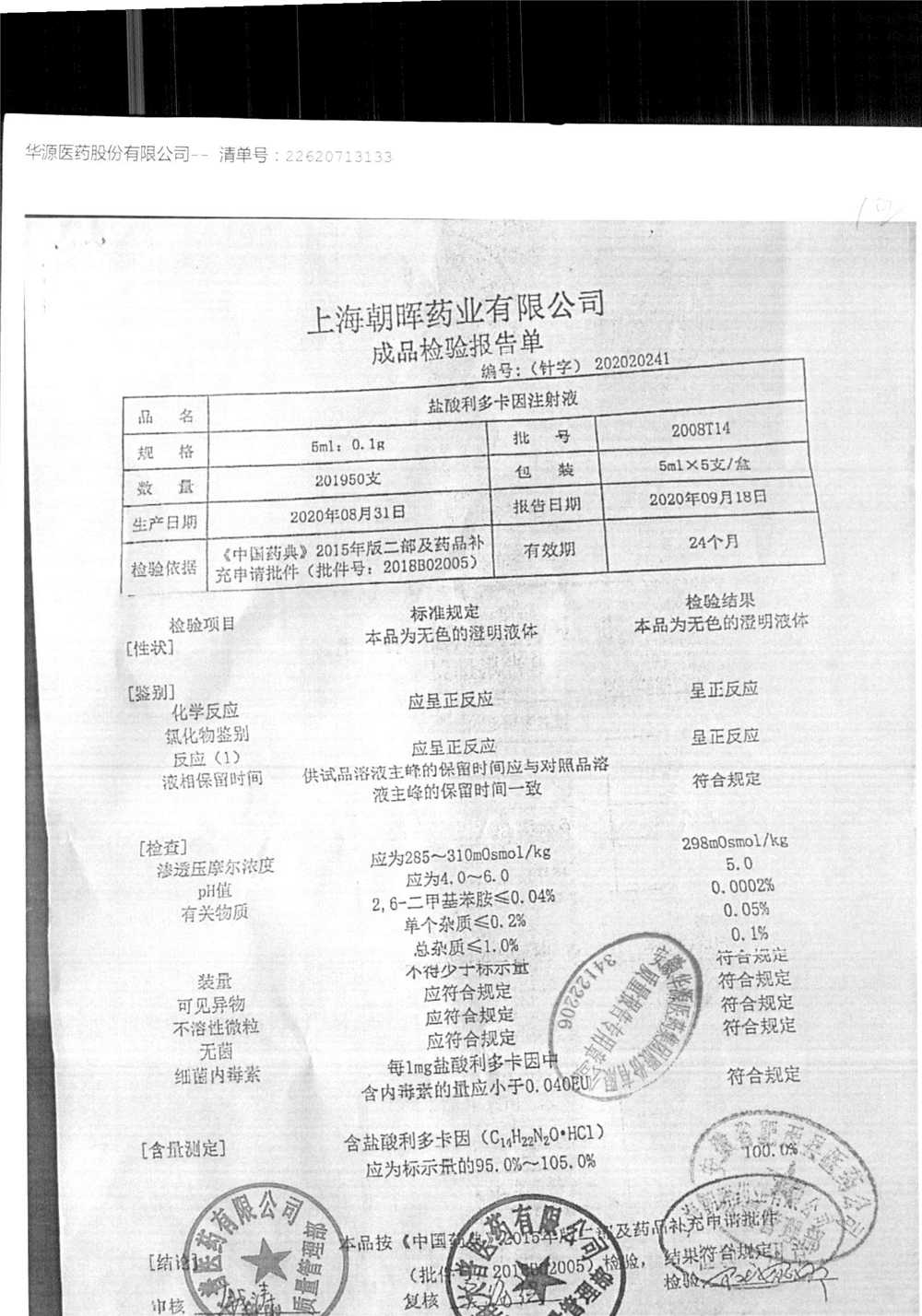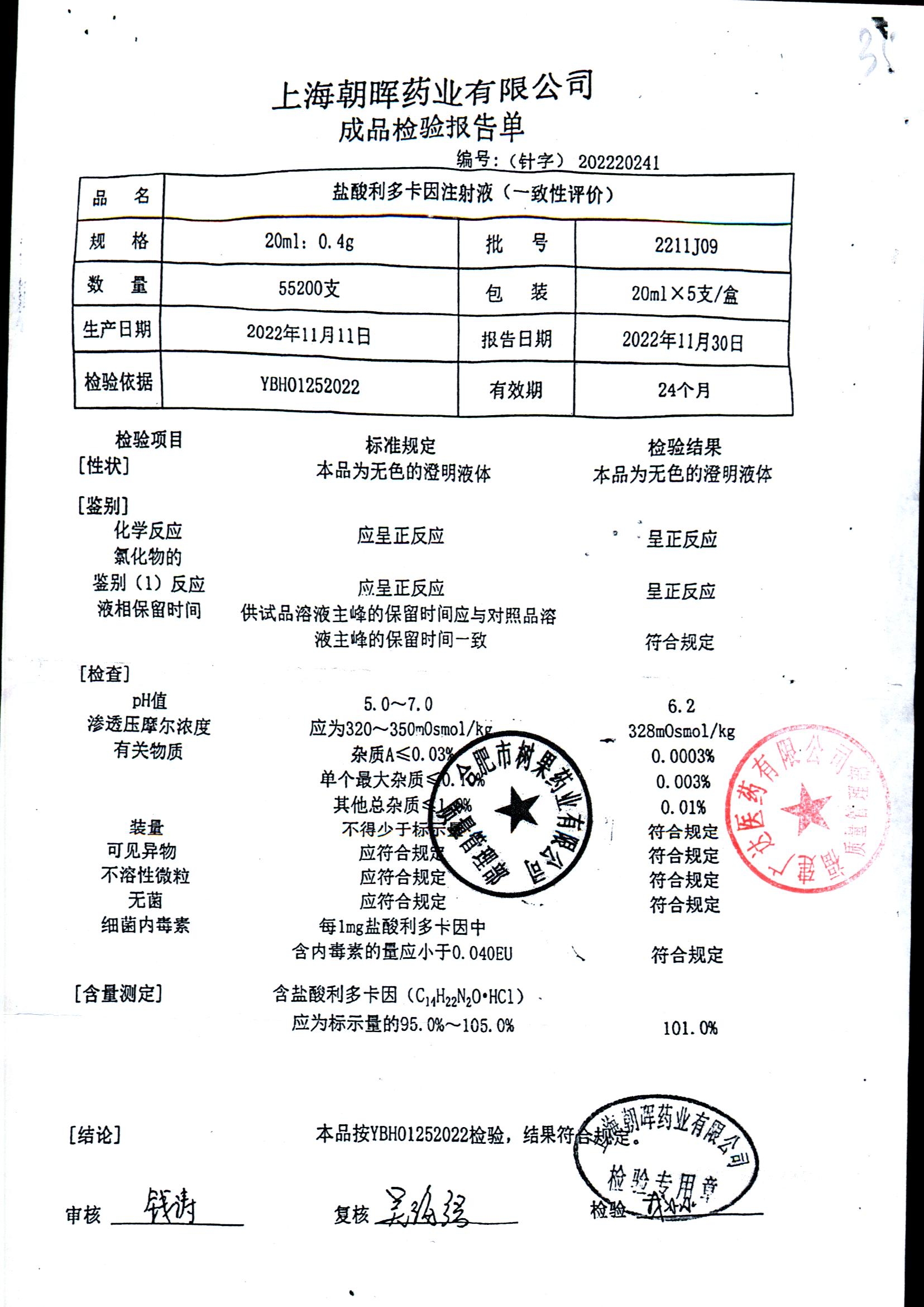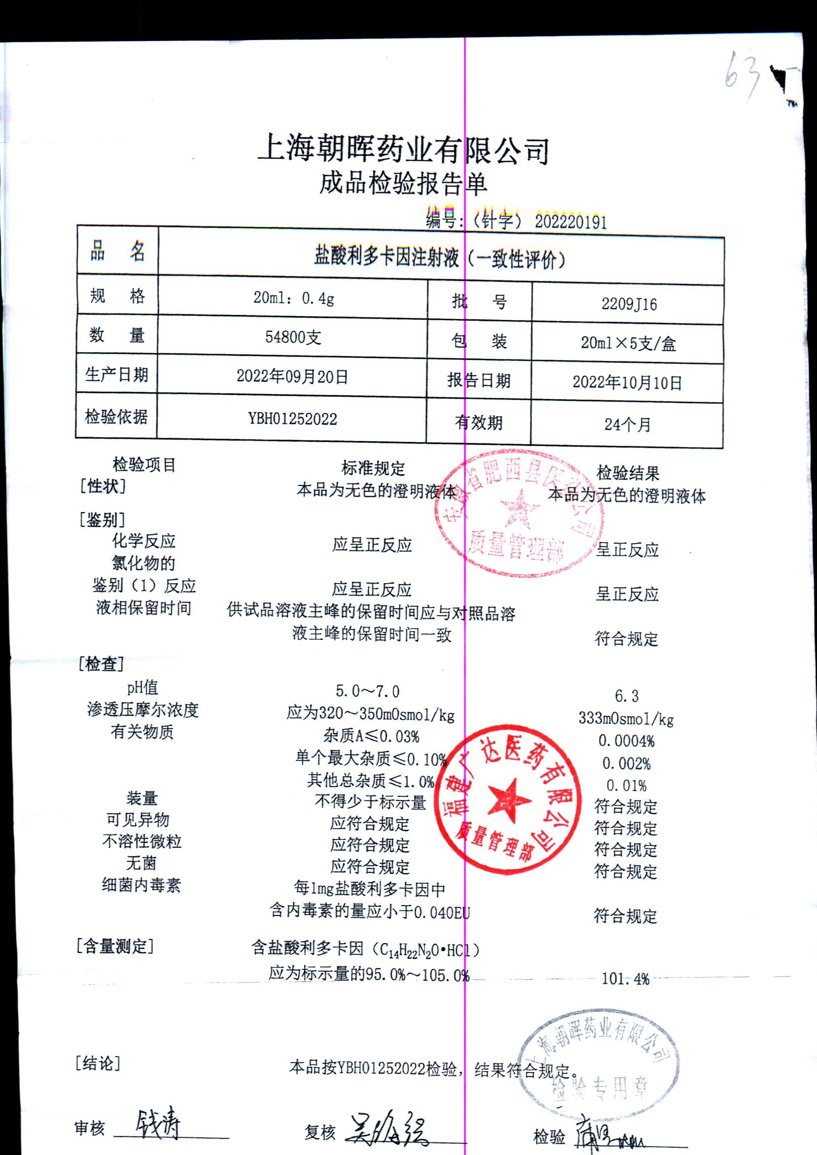 盐酸利多卡因注射液 | 20ml:0.4g | 2209J16 | 查看详情 |
