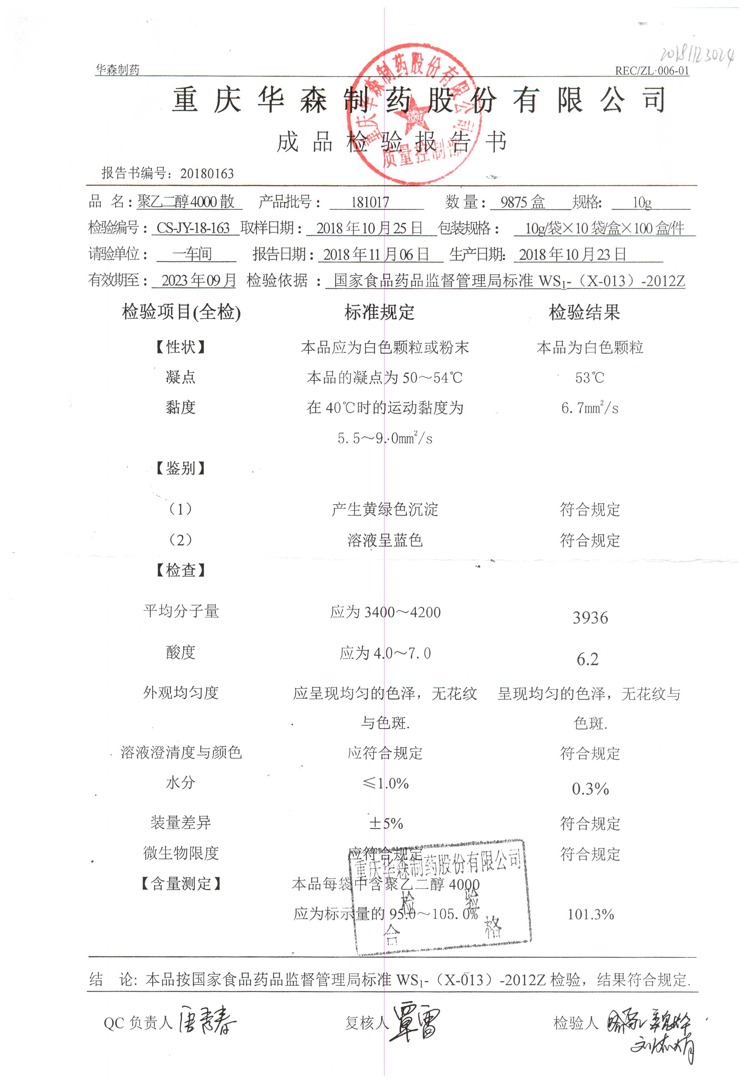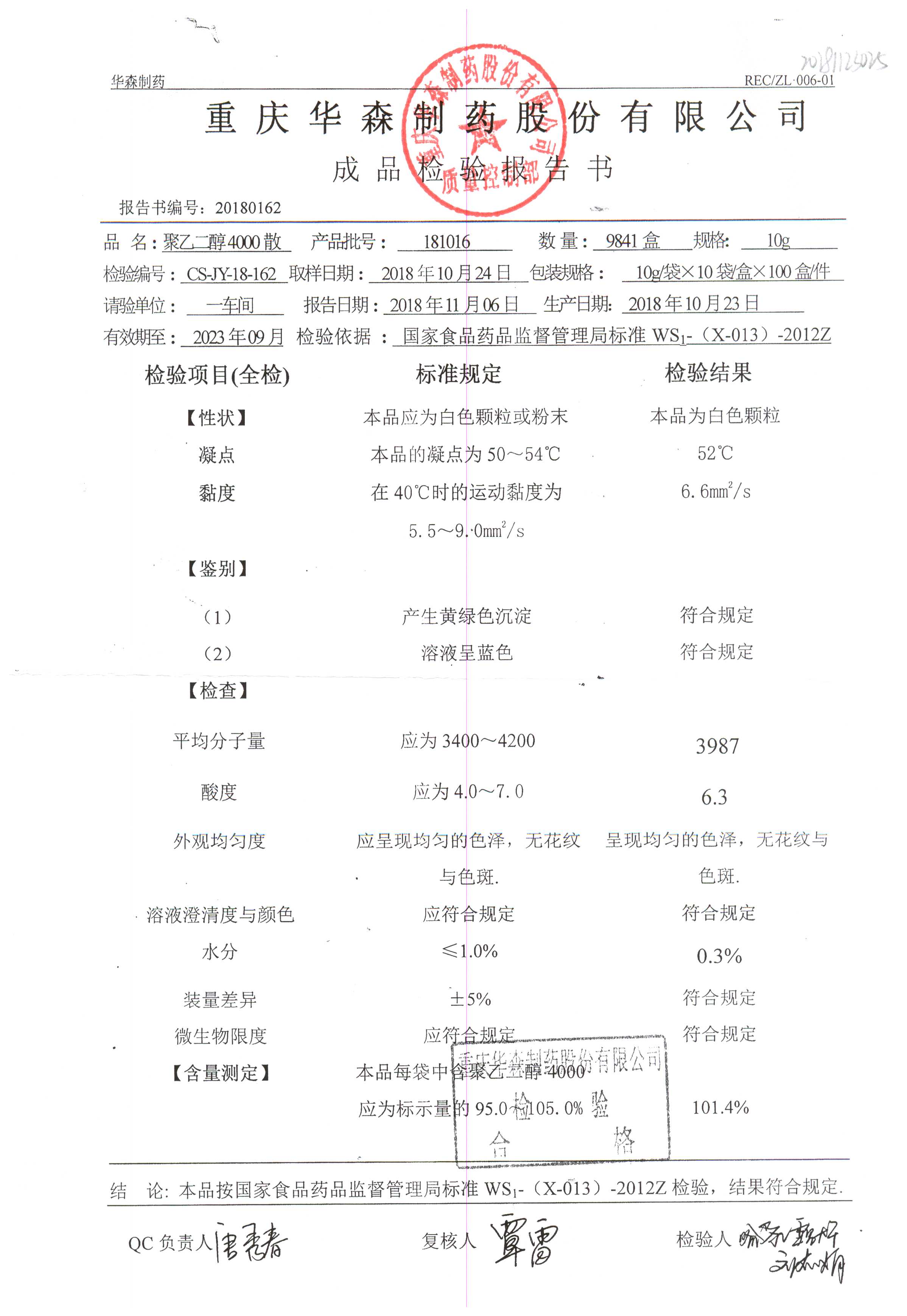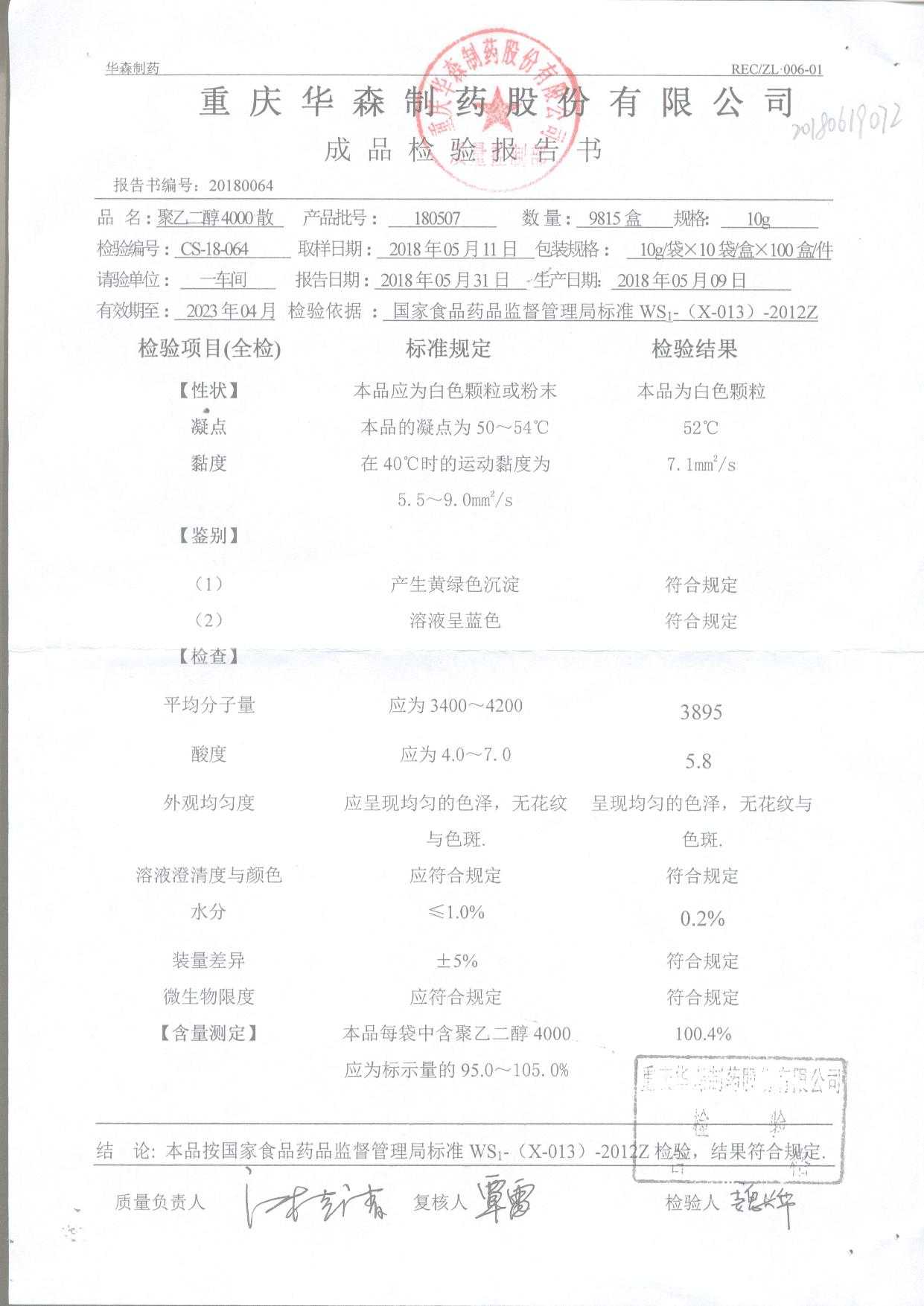 药检报告