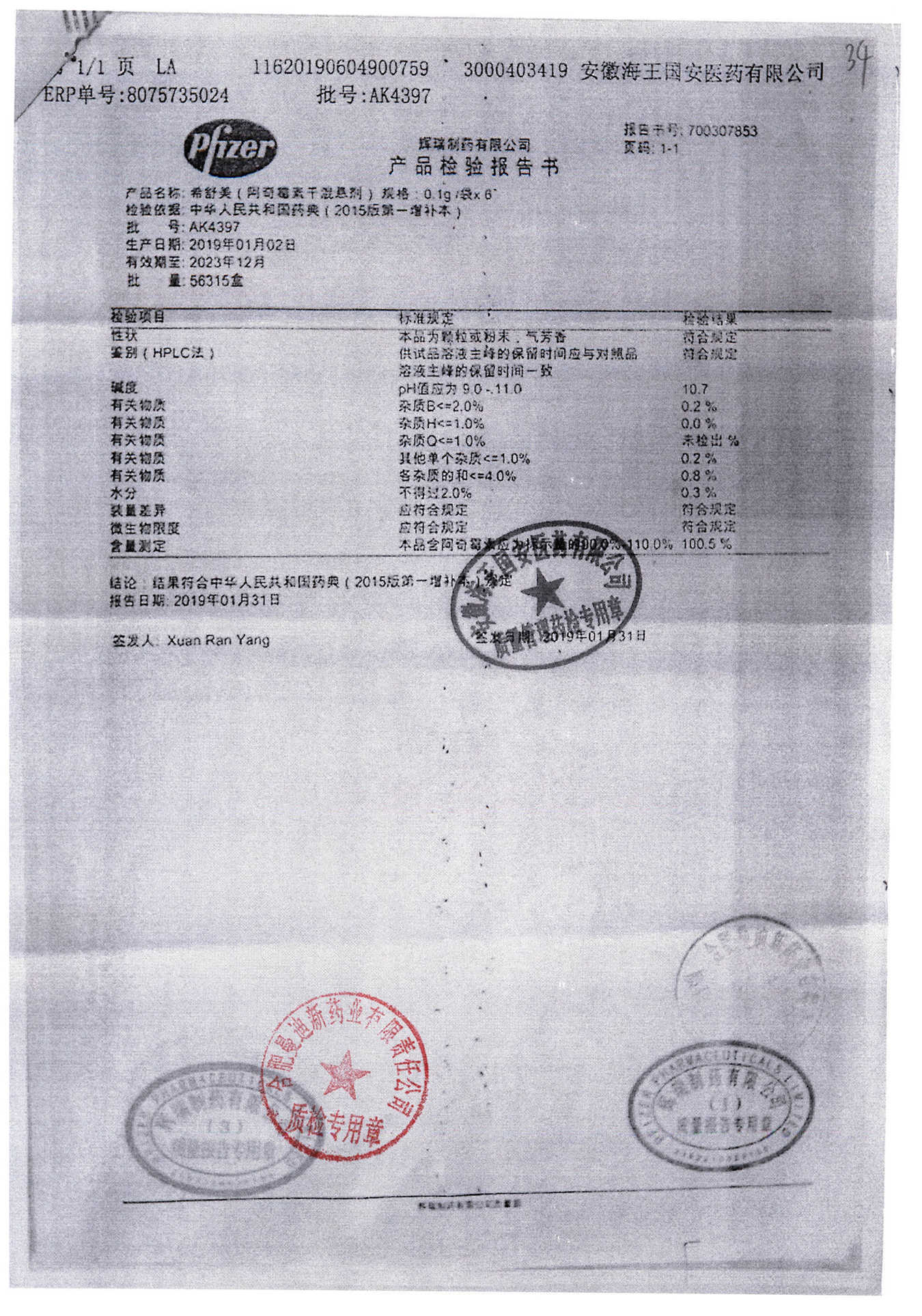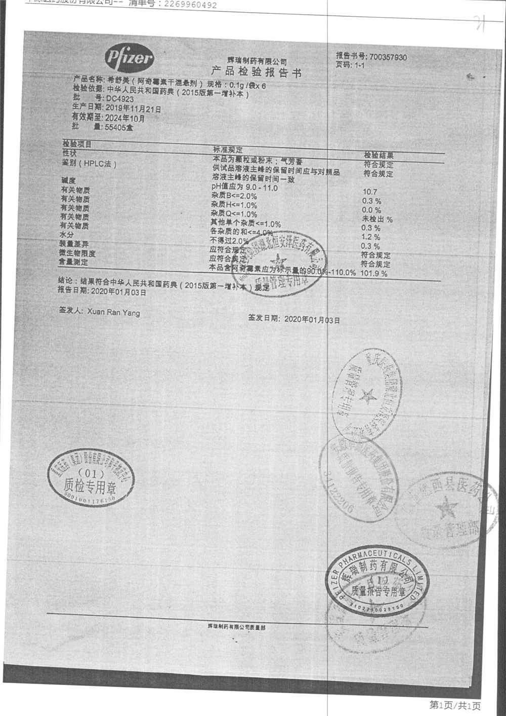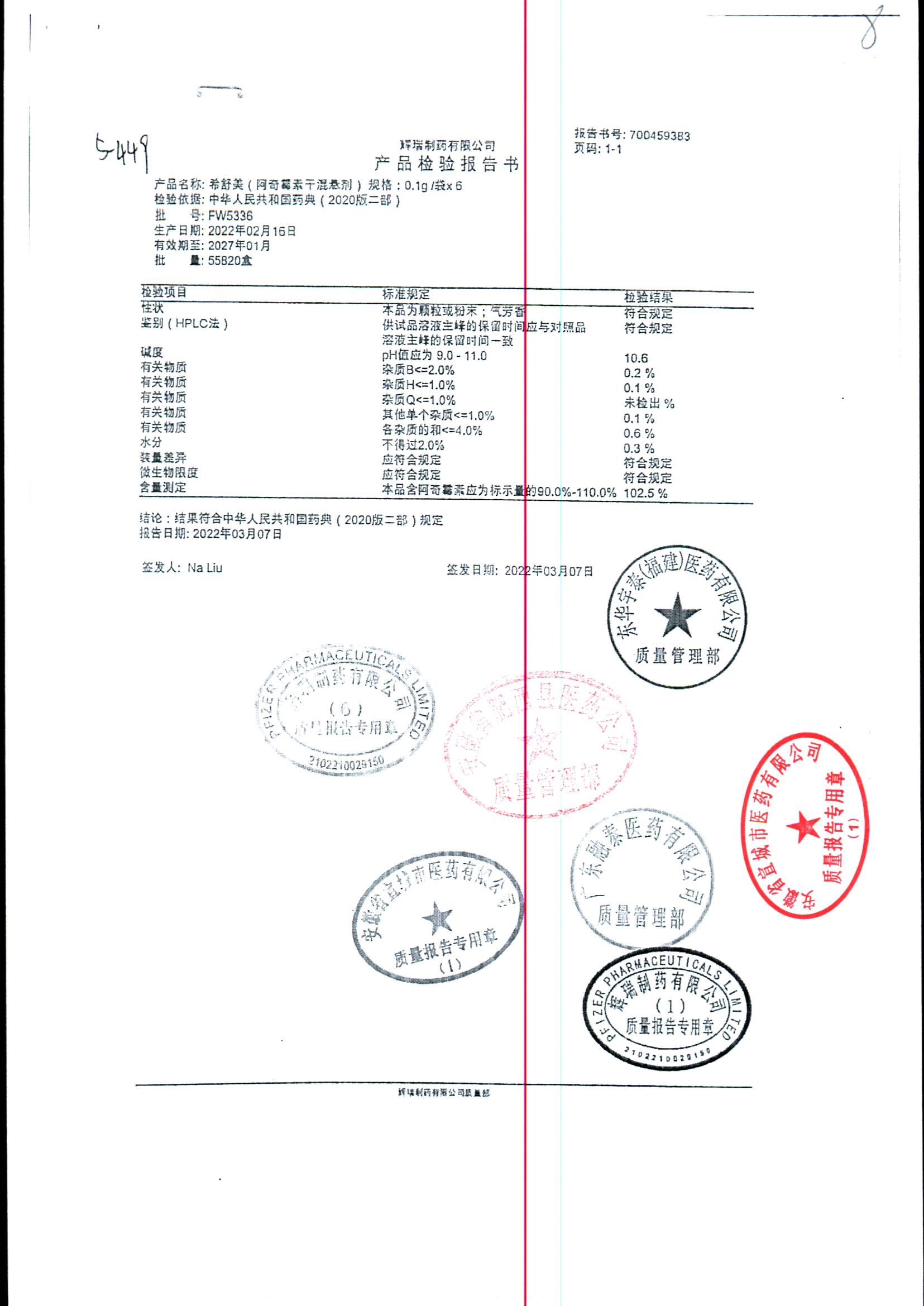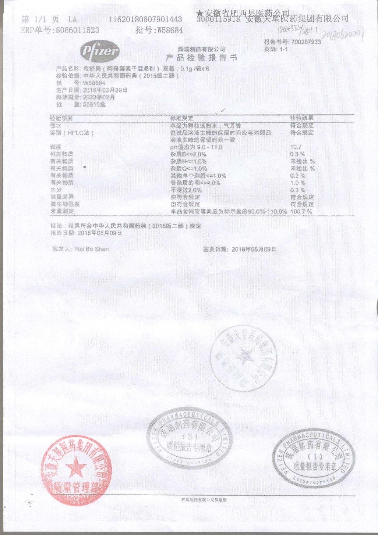 阿奇霉素干混悬剂 | 0.1g*6s | W58684 | 查看详情 |
