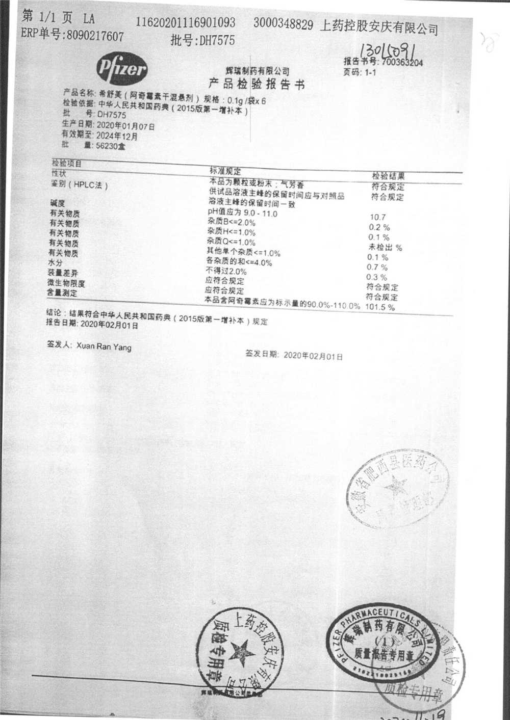 阿奇霉素干混悬剂 | 0.1g*6s | AA6253 | 查看详情 |