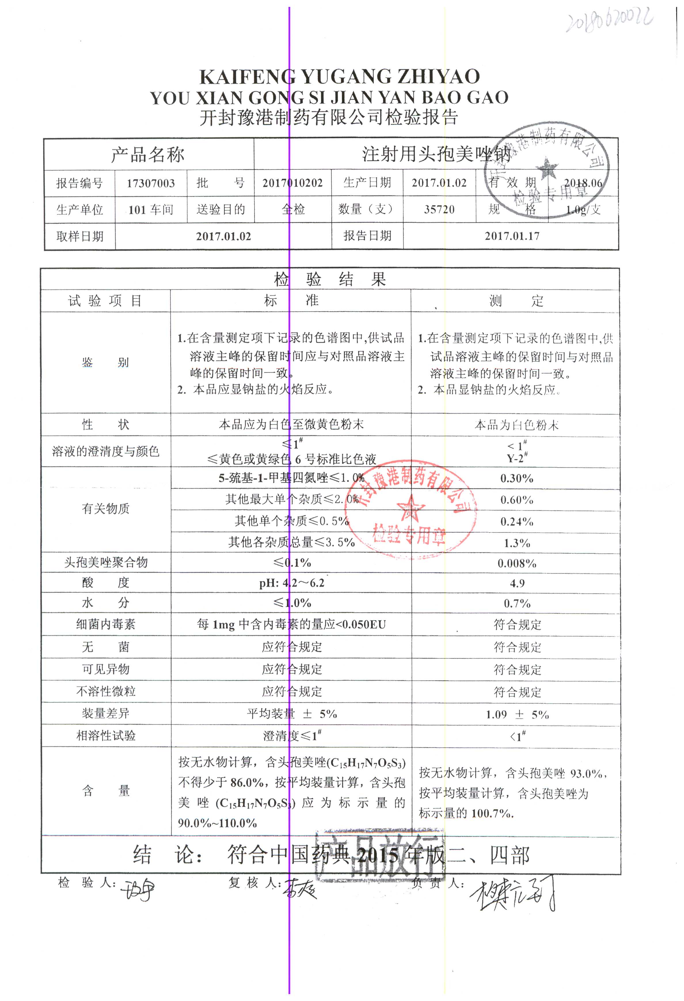 药检报告