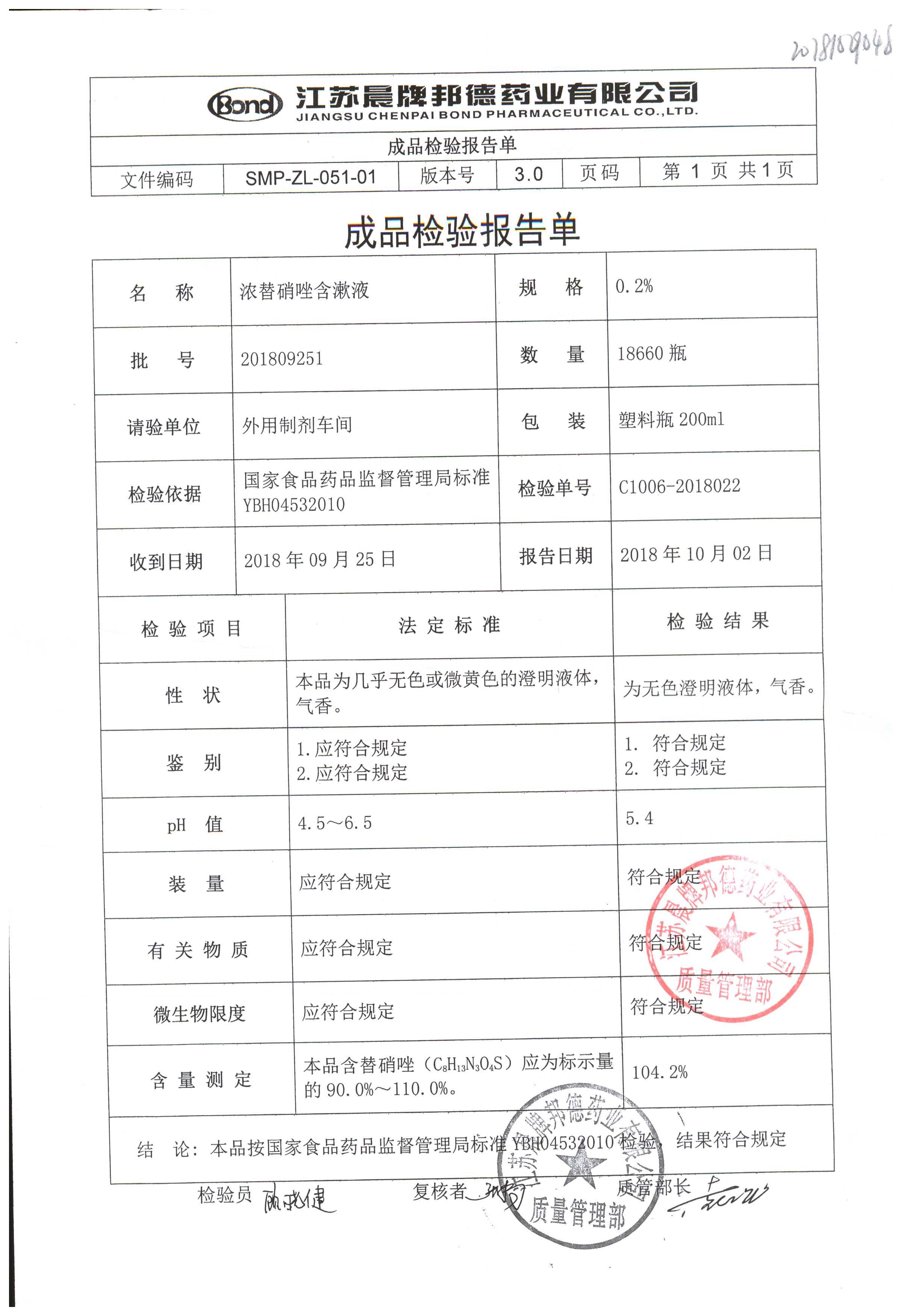 浓替硝唑含漱液 | 200ml | 201809251 | 查看详情 |