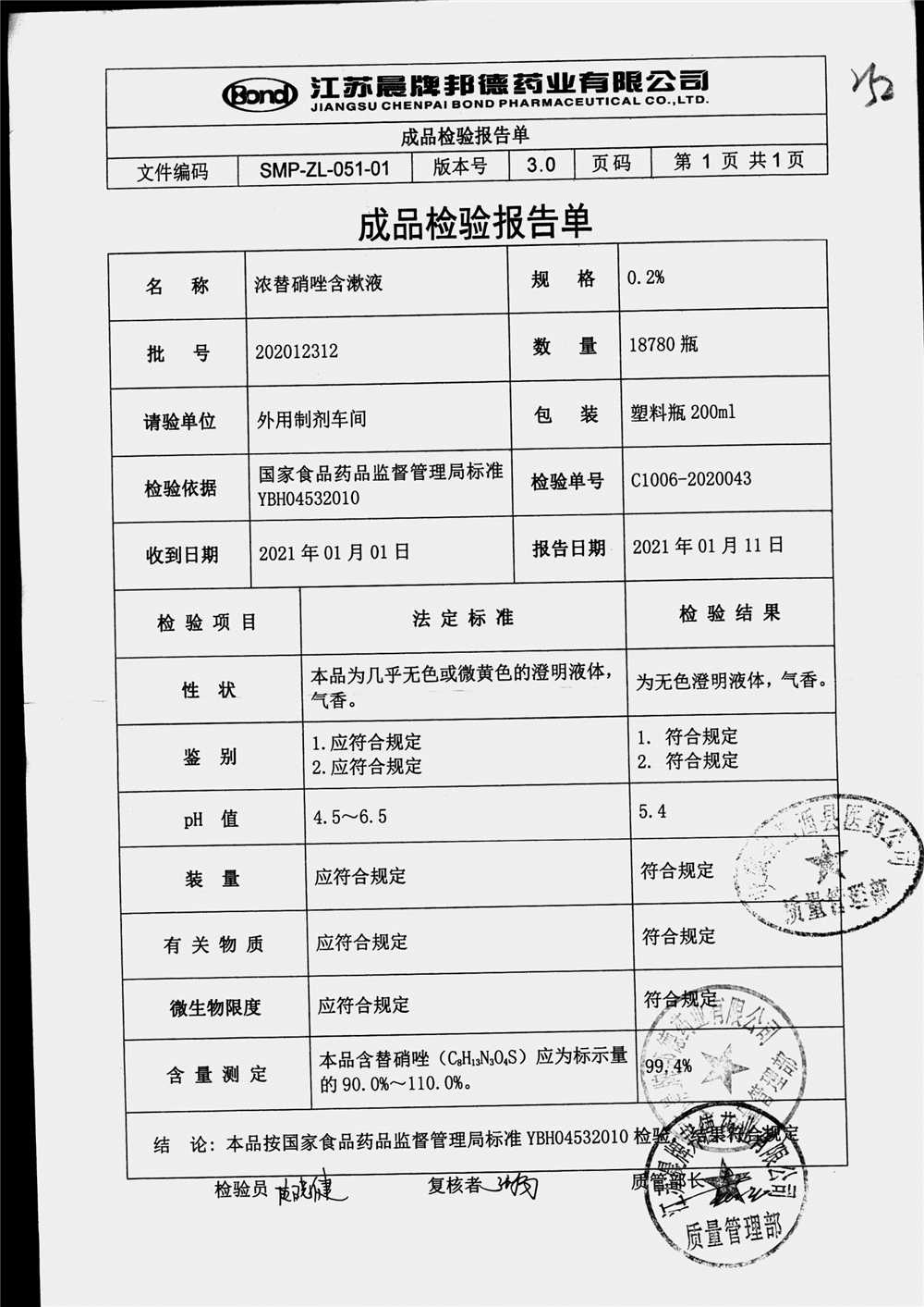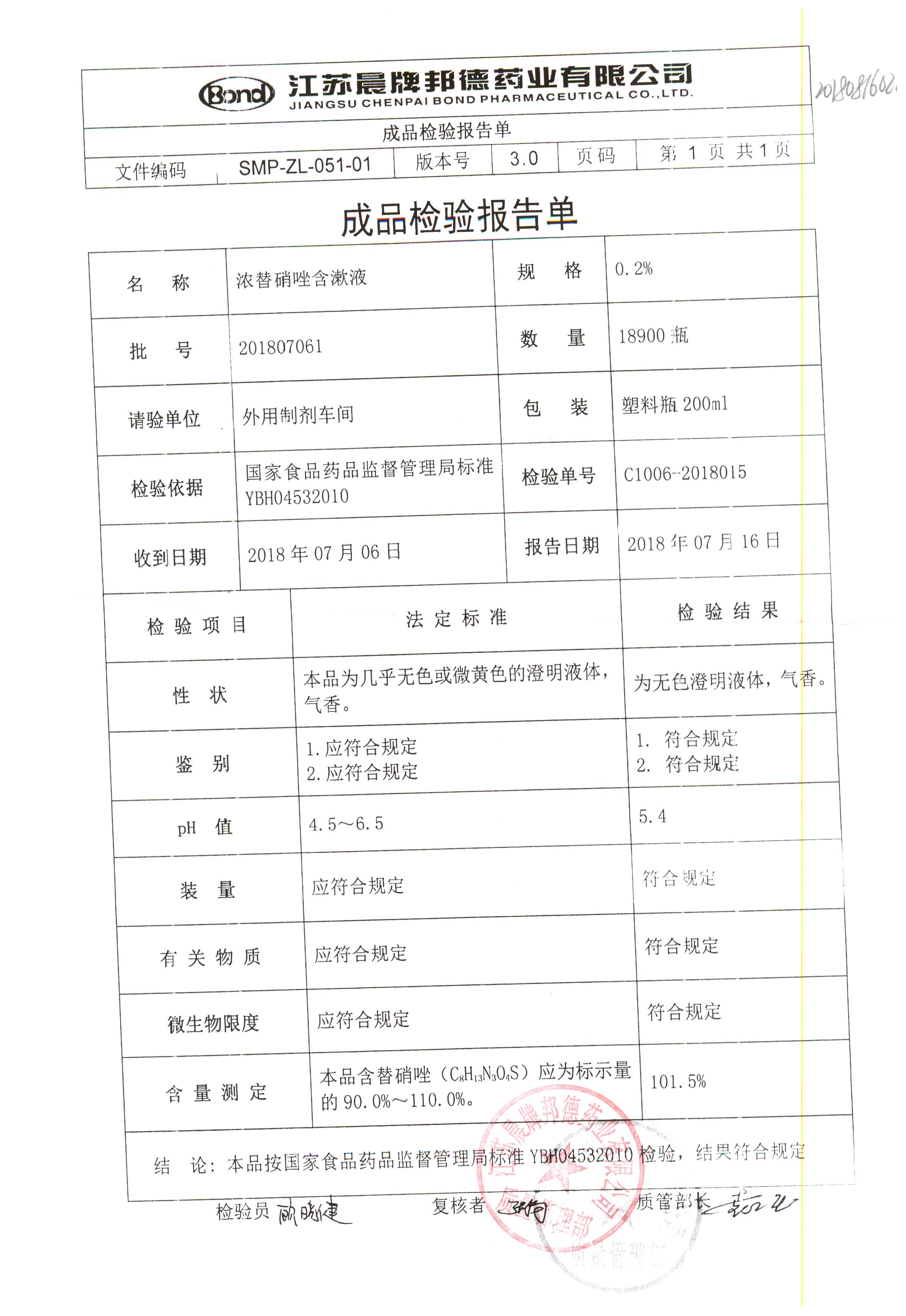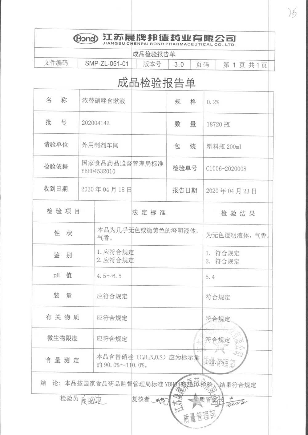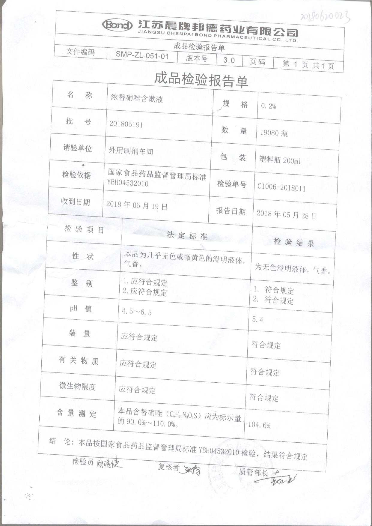 浓替硝唑含漱液 | 200ml | 201805191 | 查看详情 |