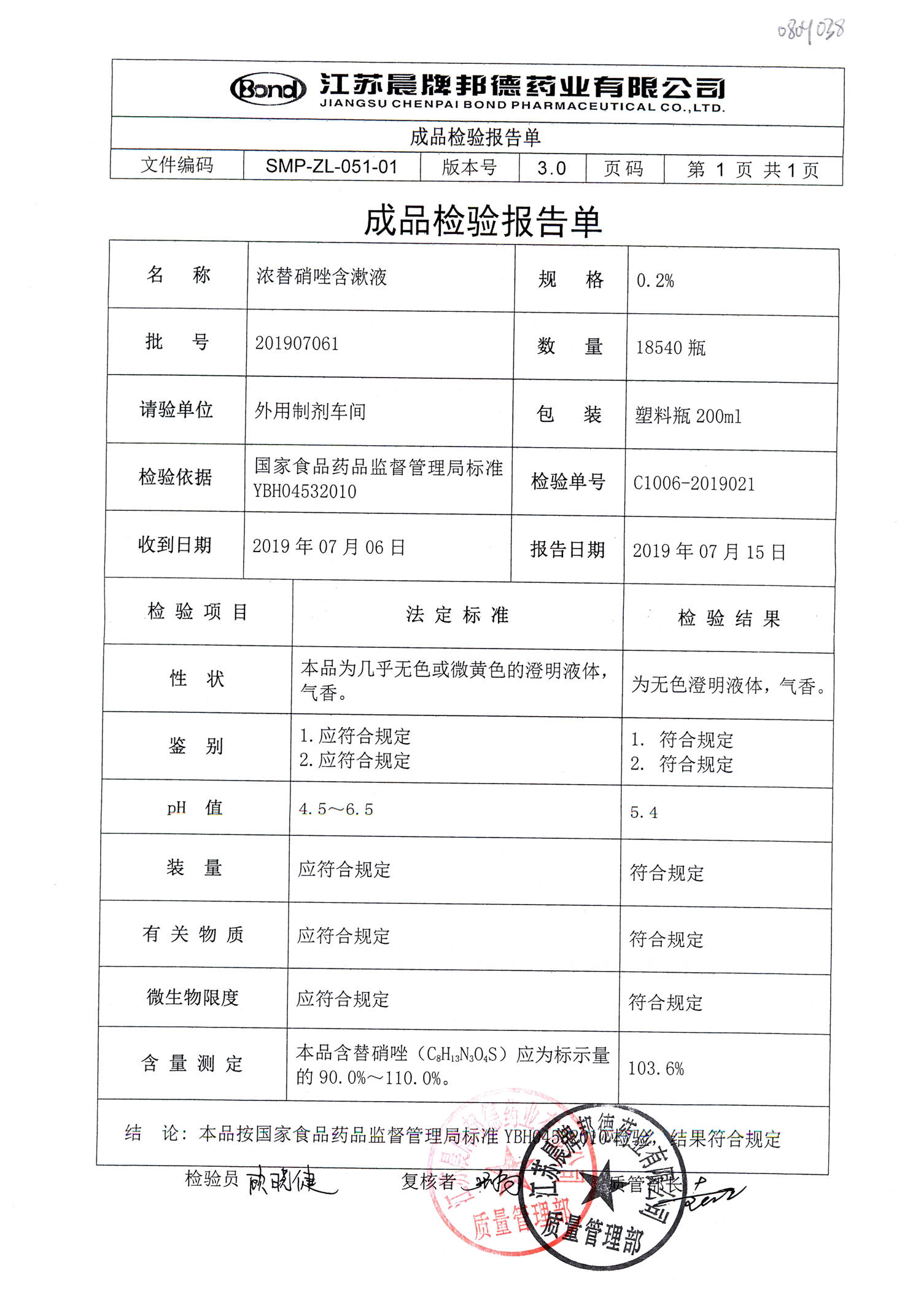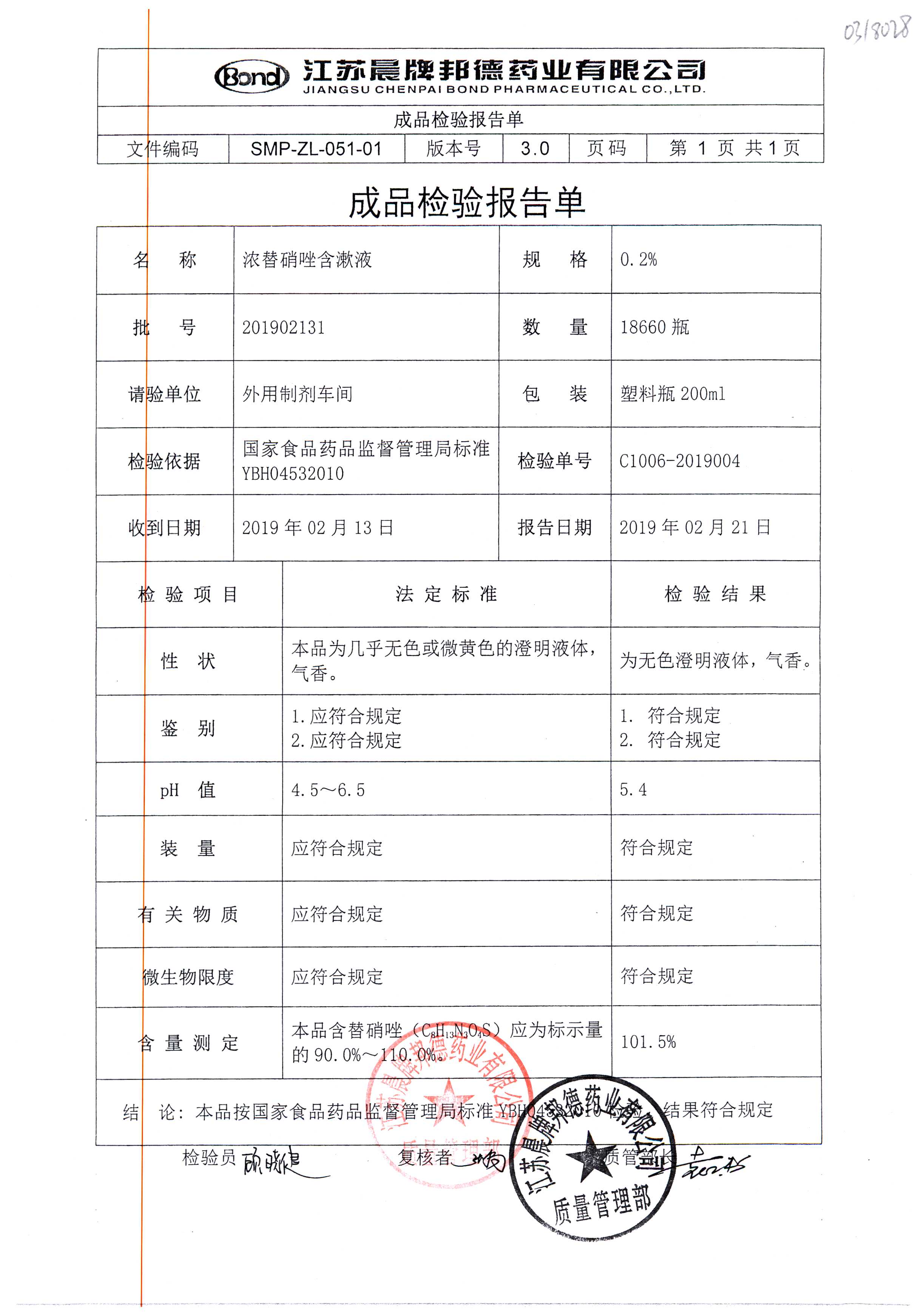 浓替硝唑含漱液 | 200ml | 201902131 | 查看详情 |