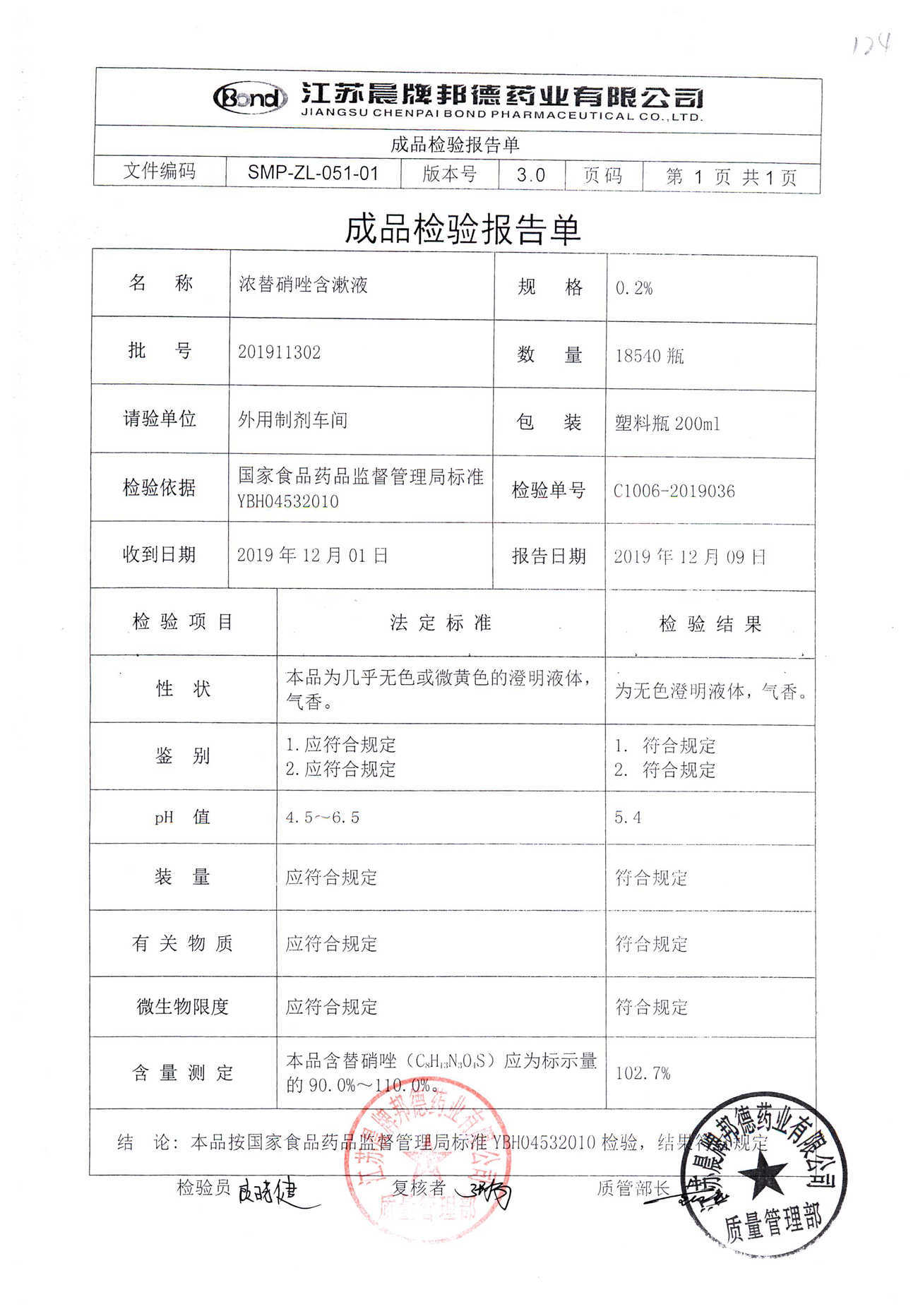 浓替硝唑含漱液 | 200ml | 201911302 | 查看详情 |