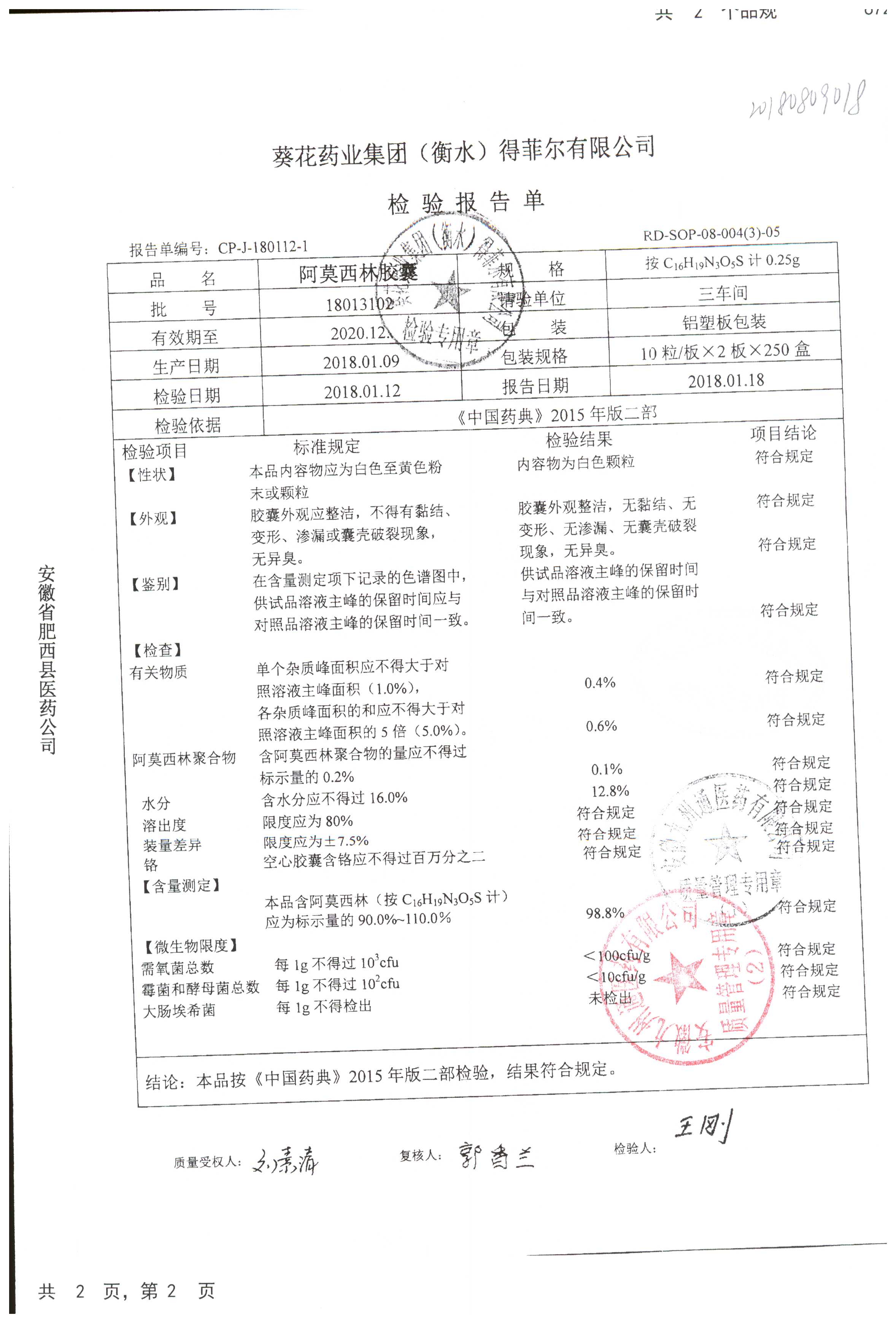 阿莫西林胶囊 | 0.25g*20粒 | 18013103 | 查看详情 |