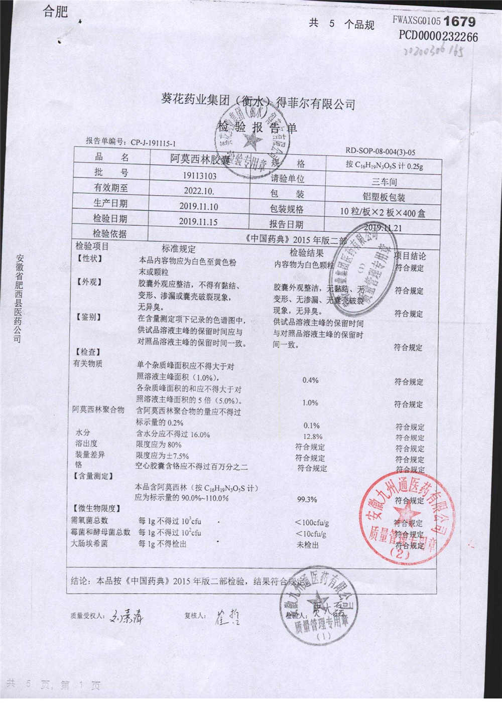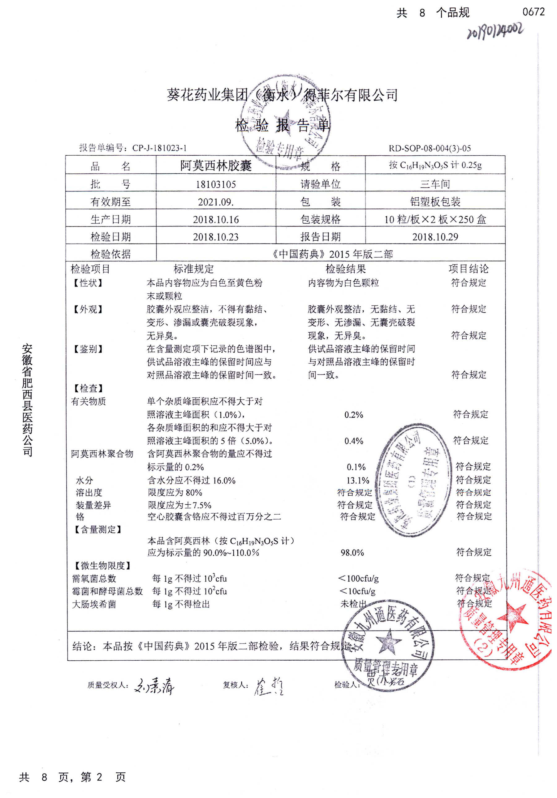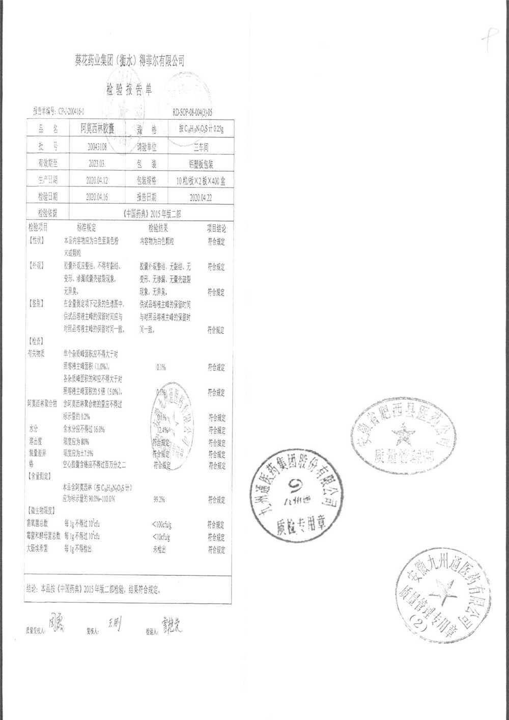 阿莫西林胶囊 | 0.25g*20粒 | 18053110 | 查看详情 |