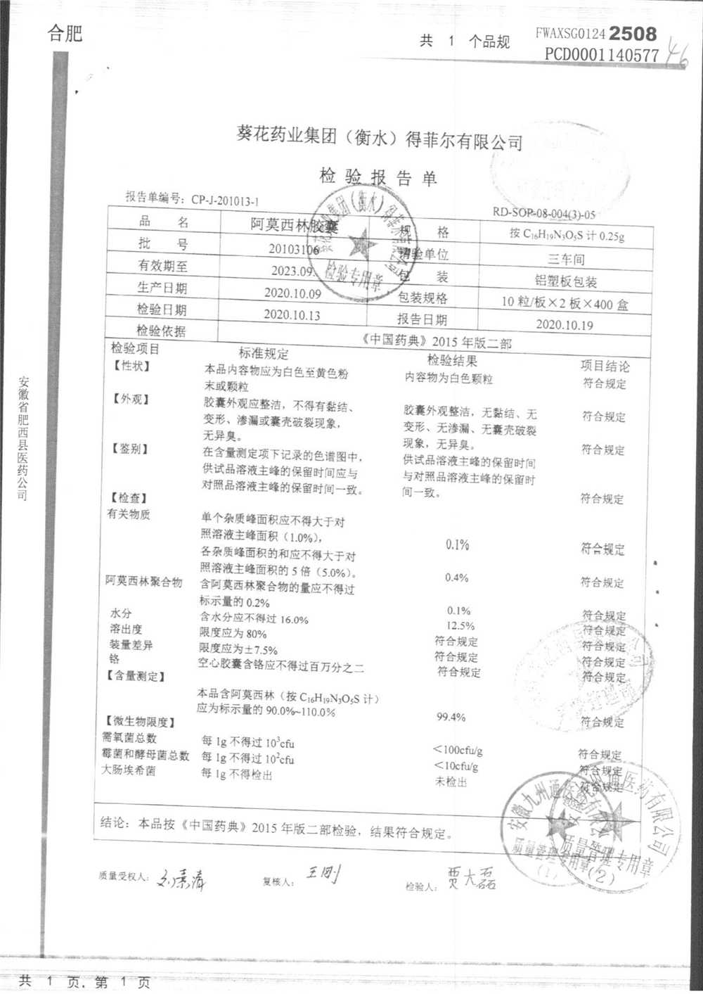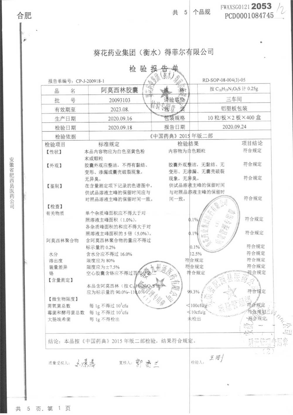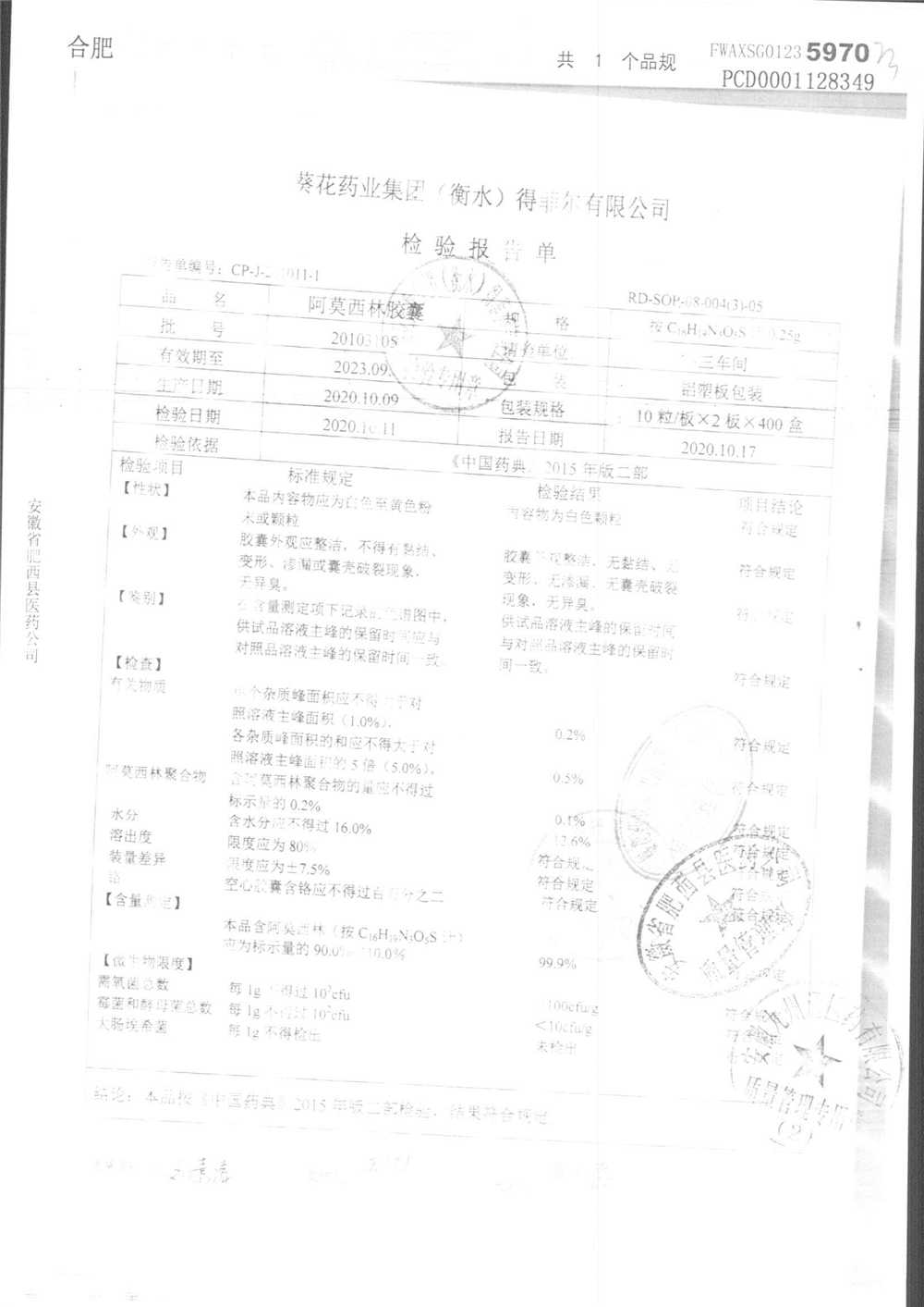 阿莫西林胶囊 | 0.25g*20粒 | 18053110 | 查看详情 |