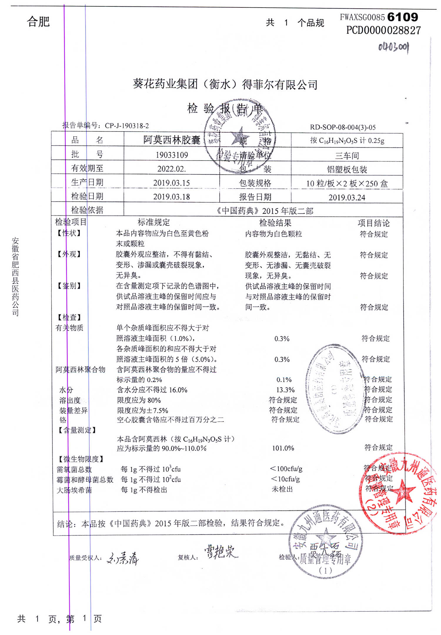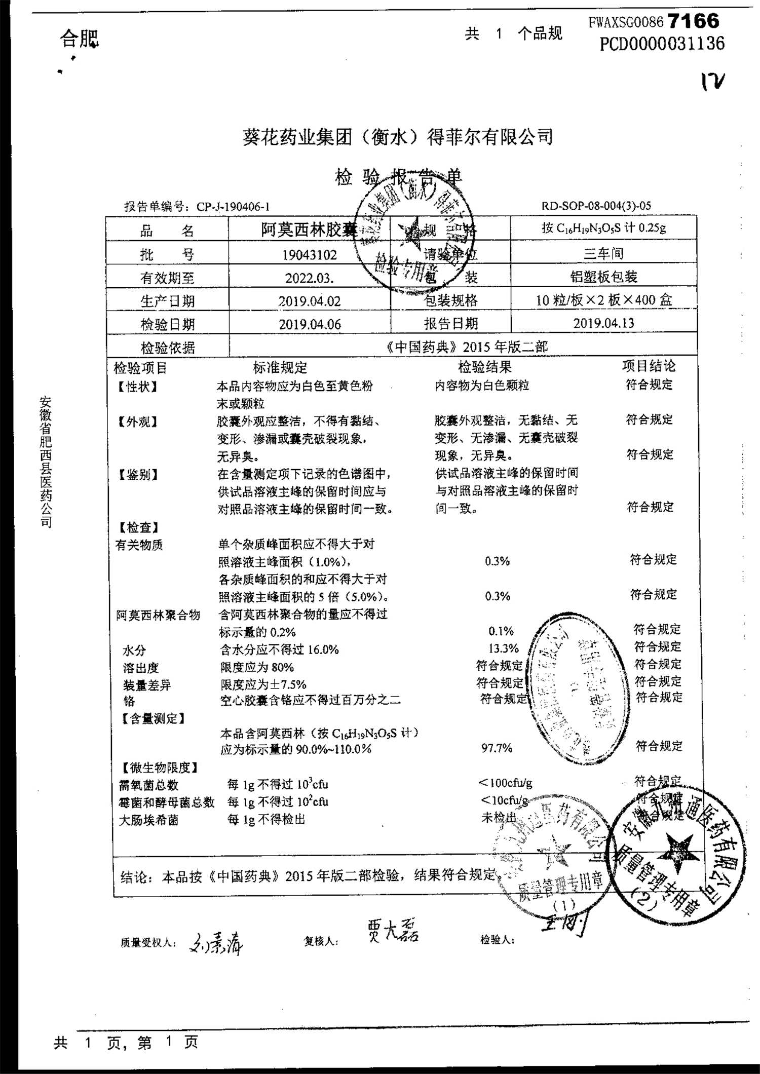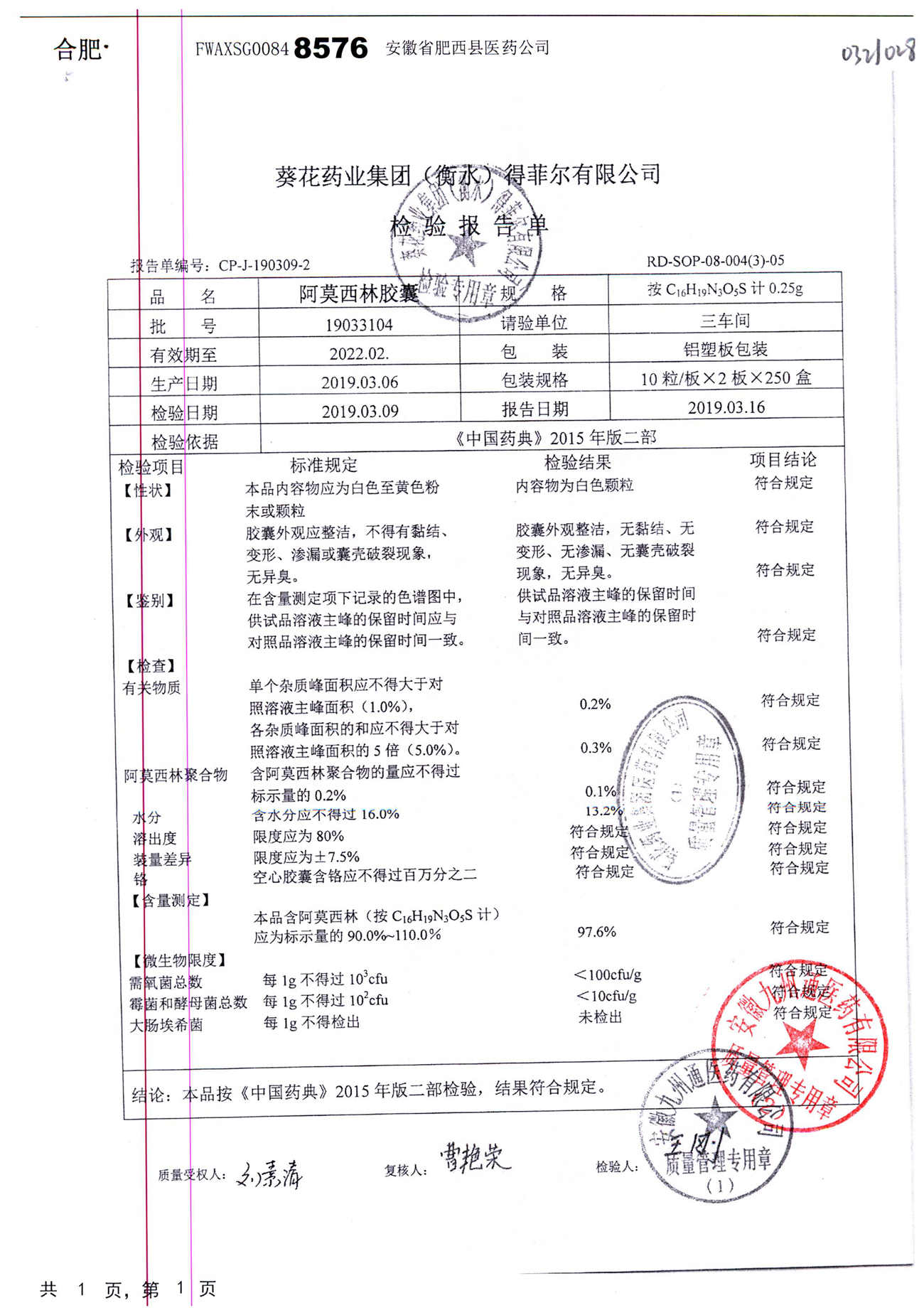 阿莫西林胶囊 | 0.25g*20粒 | 19033109 | 查看详情 |