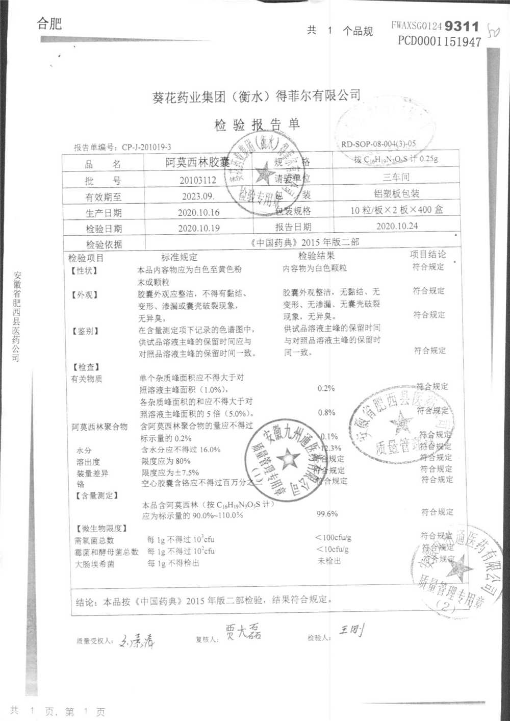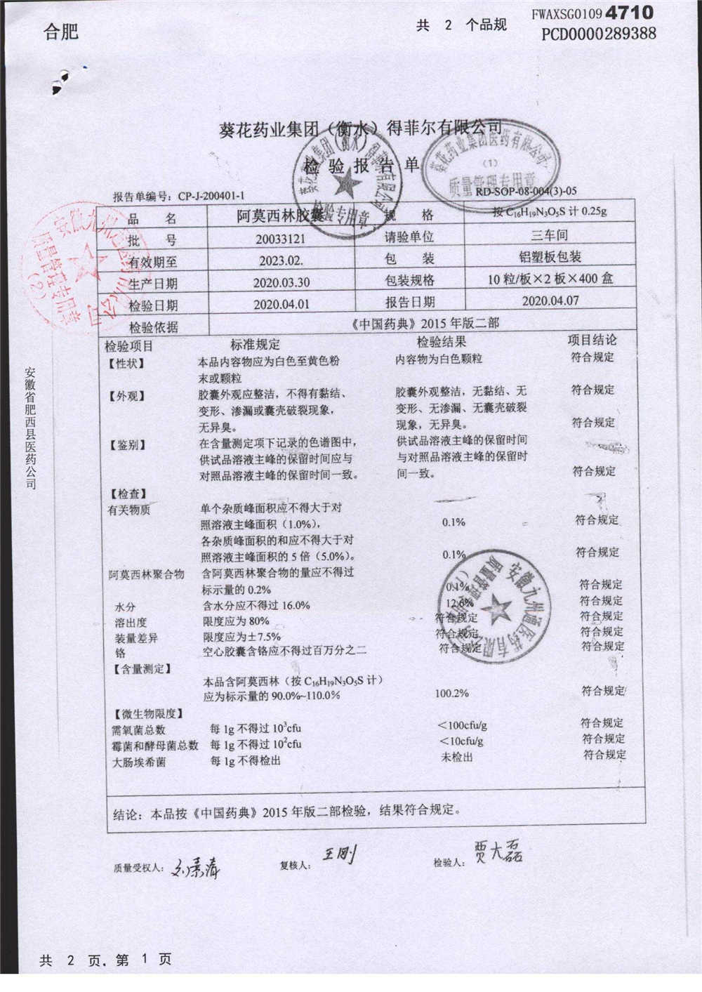 阿莫西林胶囊 | 0.25g*20粒 | 20033121 | 查看详情 |