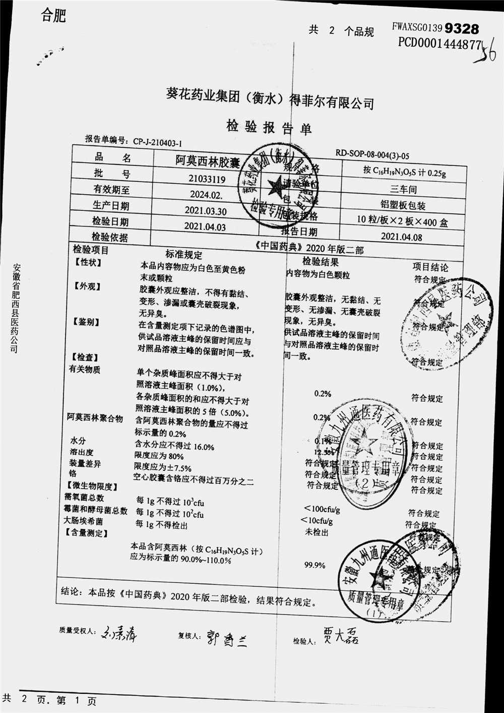 阿莫西林胶囊 | 0.25g*20粒 | 21033119 | 查看详情 |