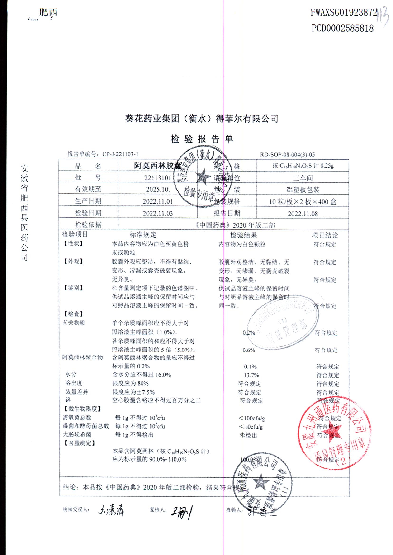 阿莫西林胶囊 | 0.25g*20粒 | 22113101 | 查看详情 |