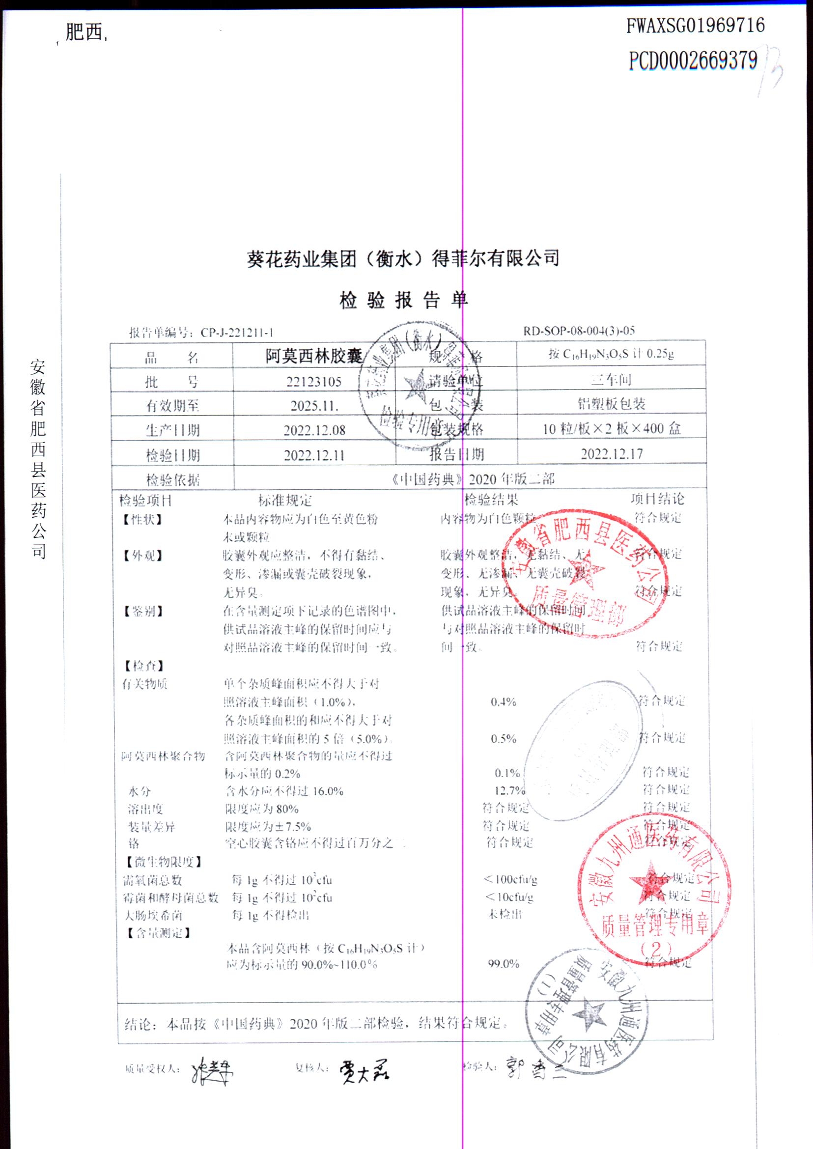 阿莫西林胶囊 | 0.25g*20粒 | 22123105 | 查看详情 |