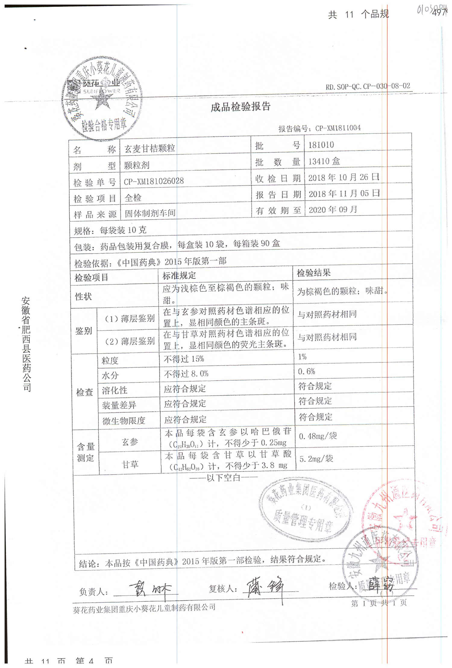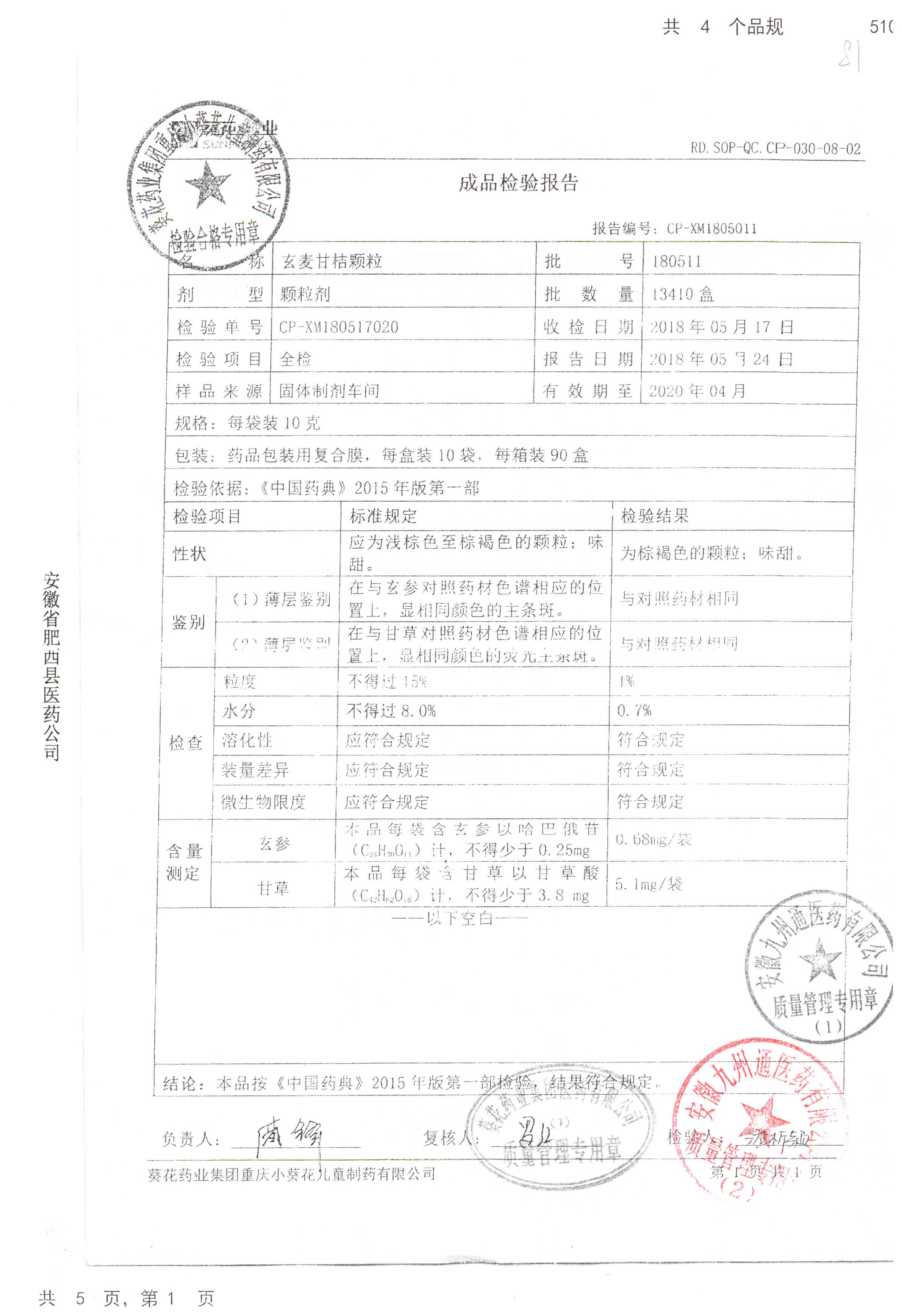 玄麦甘桔颗粒 | 10g*10袋 | 180511 | 查看详情 |