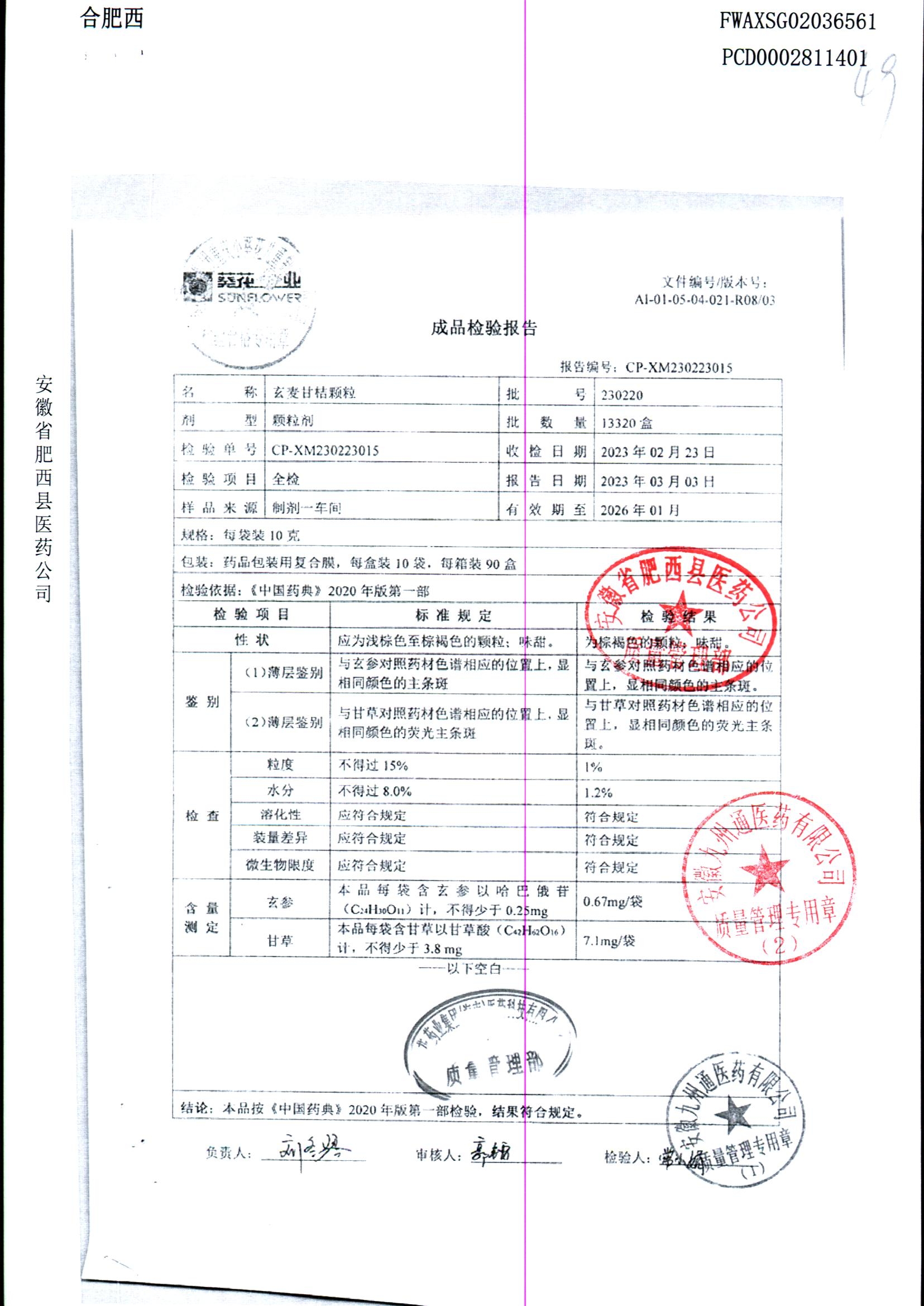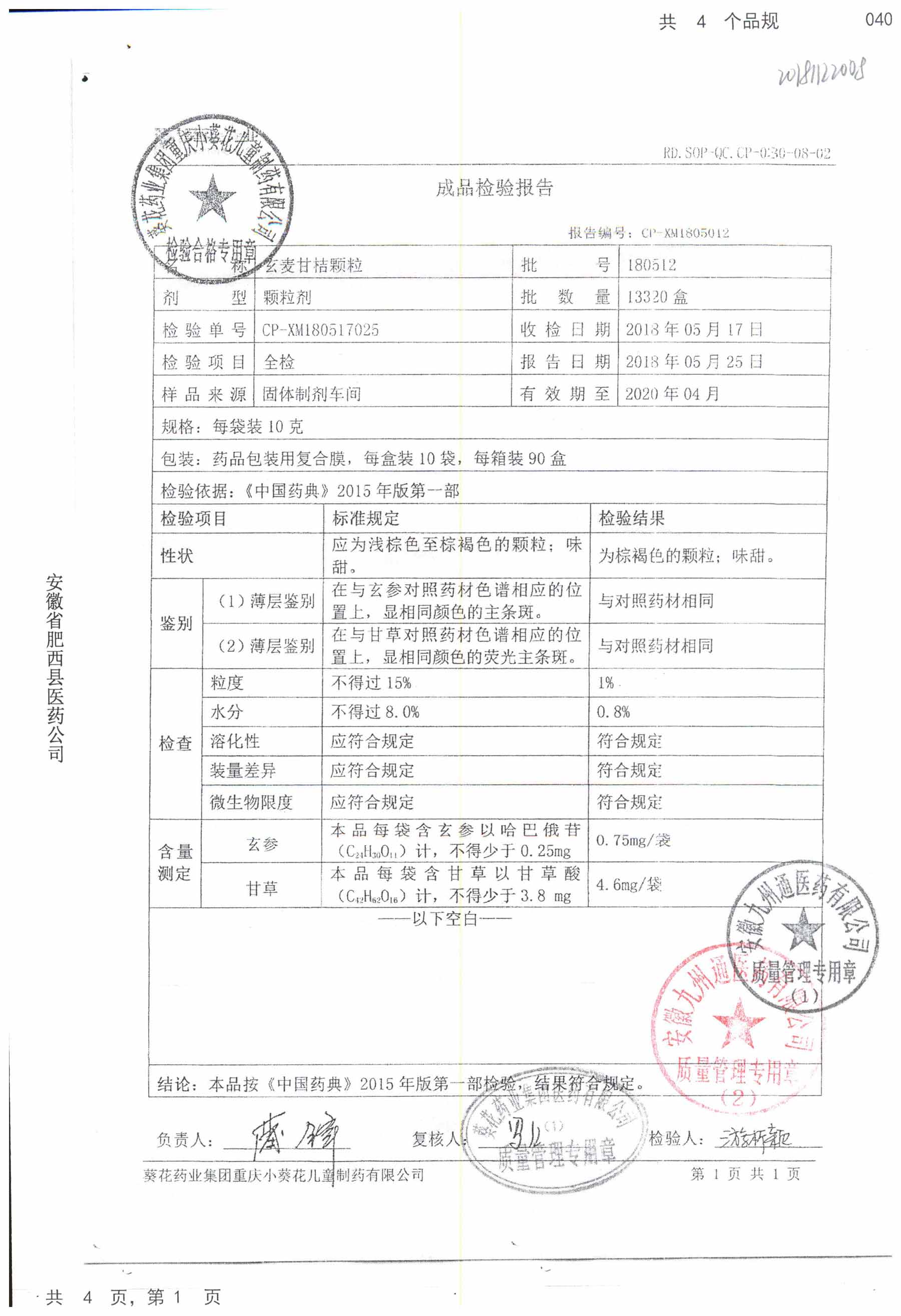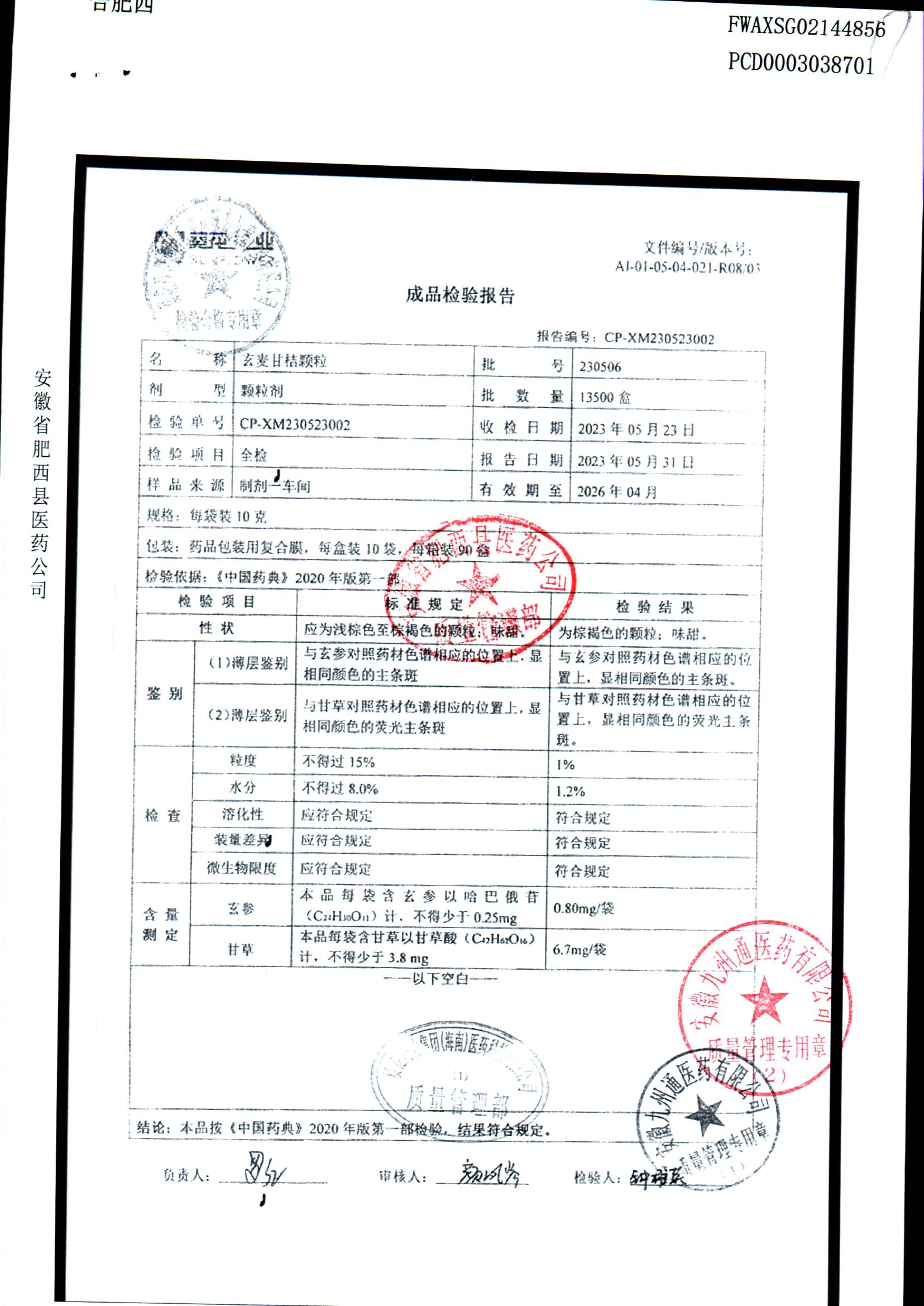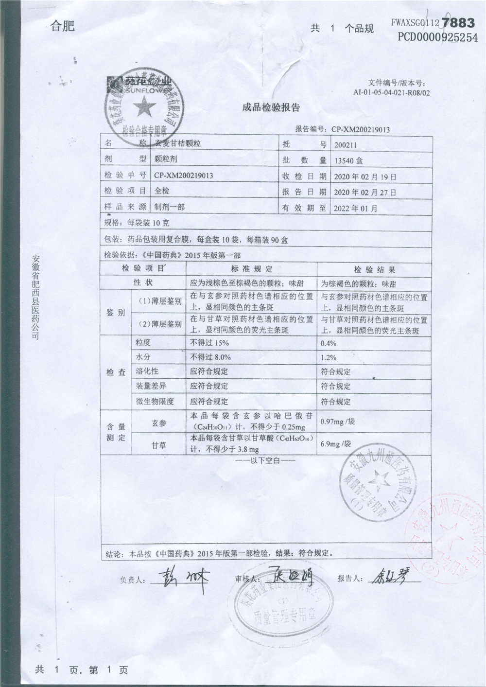 玄麦甘桔颗粒 | 10g*10袋 | 210307 | 查看详情 |