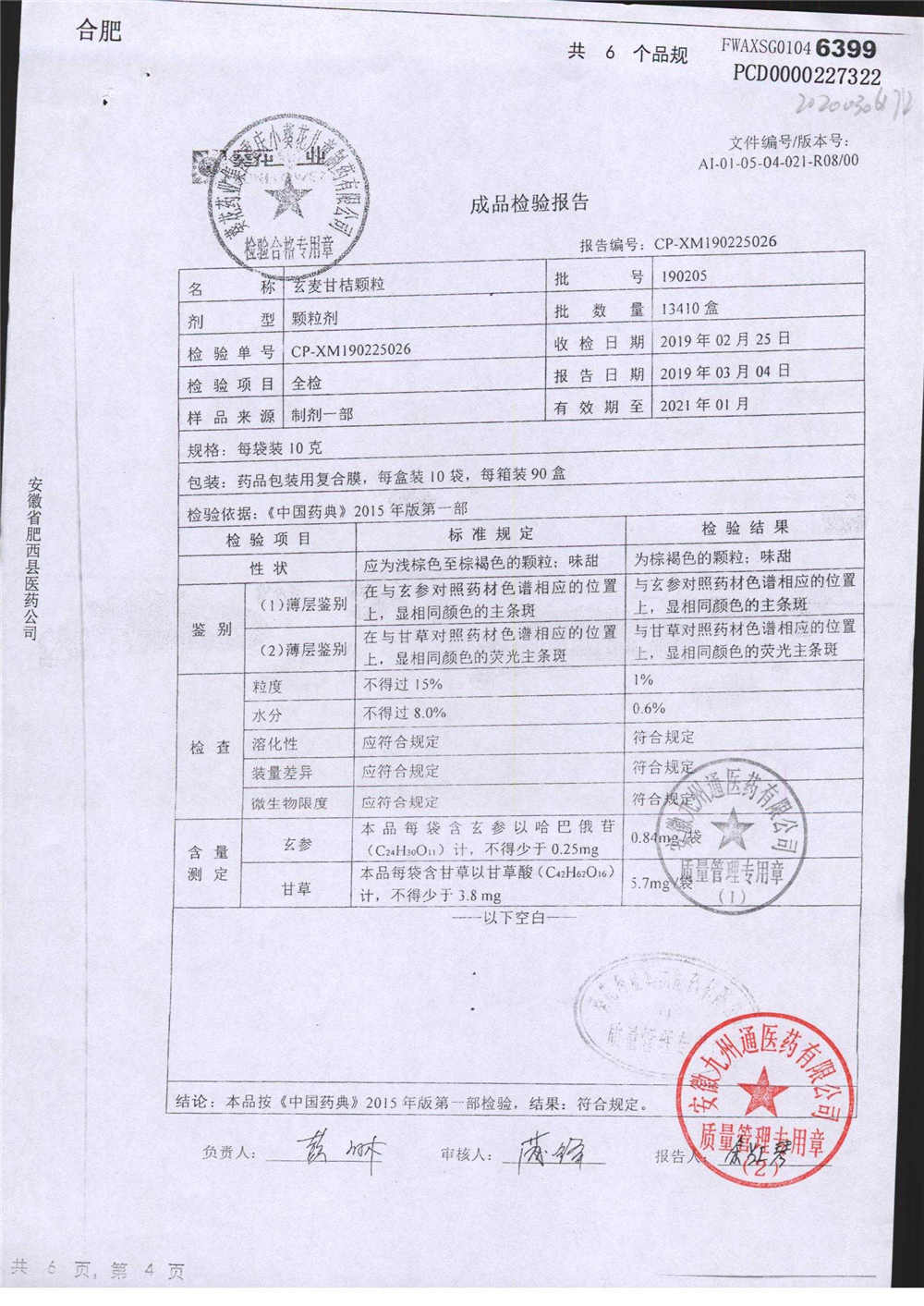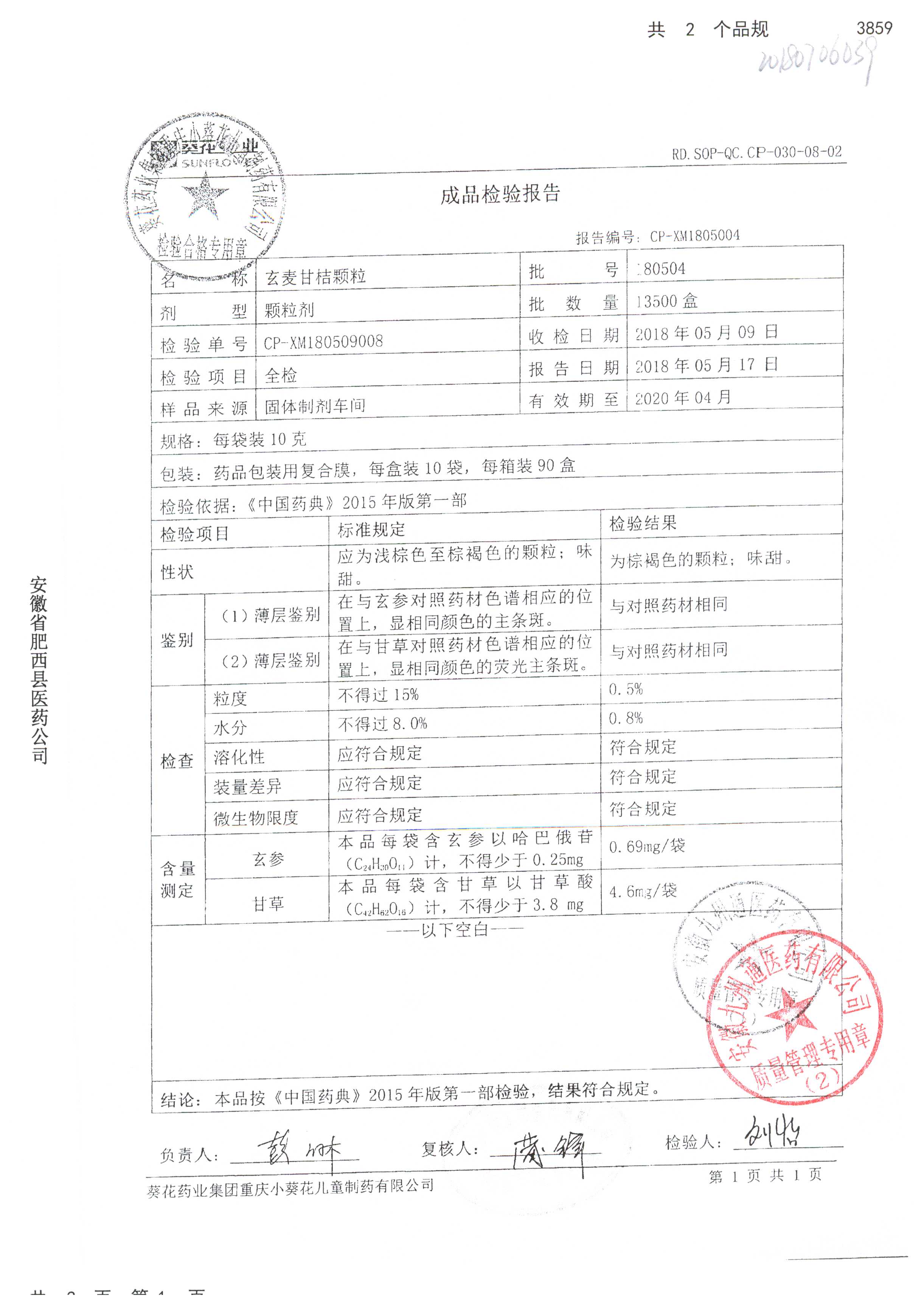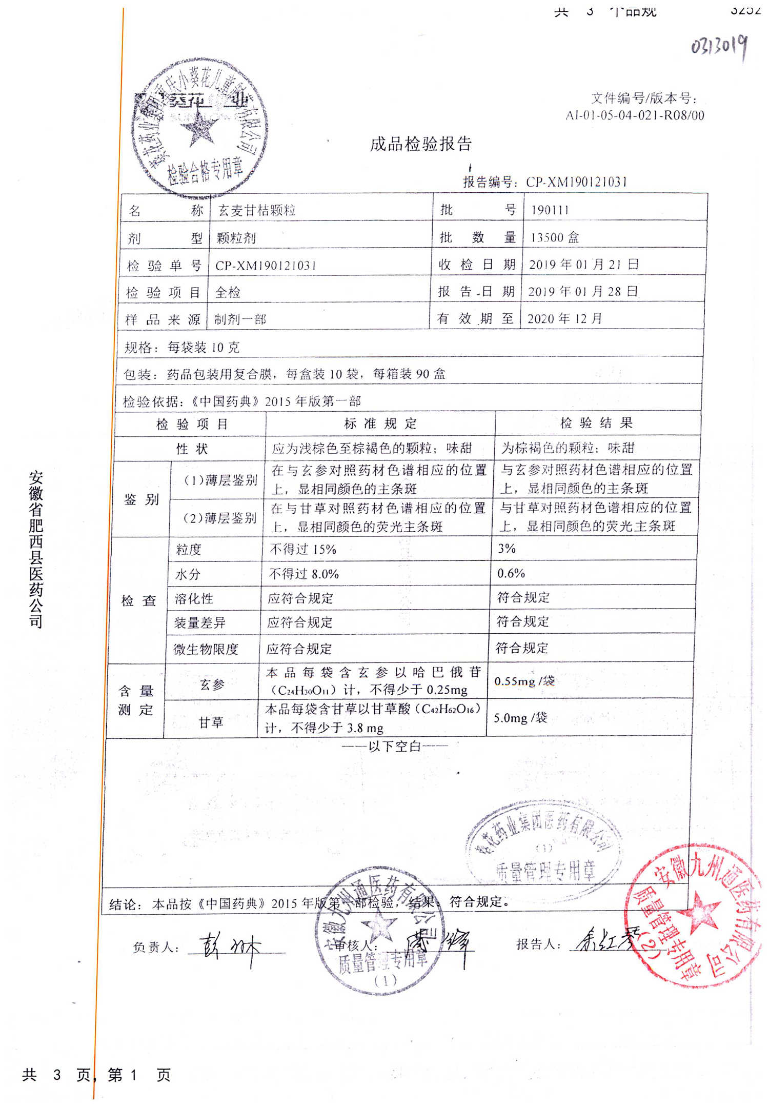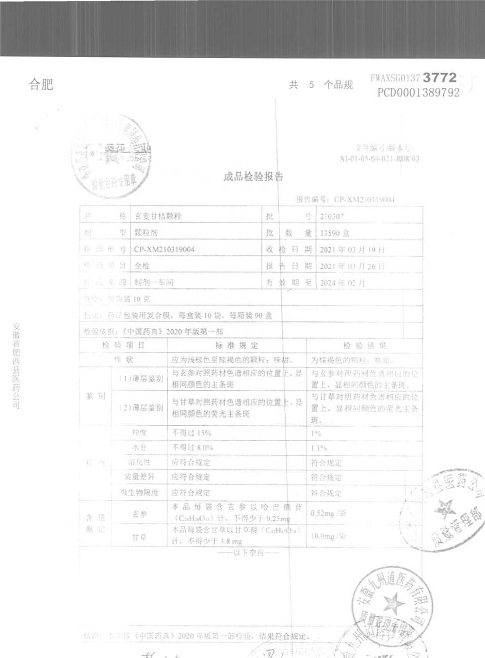 玄麦甘桔颗粒 | 10g*10袋 | 210307 | 查看详情 |