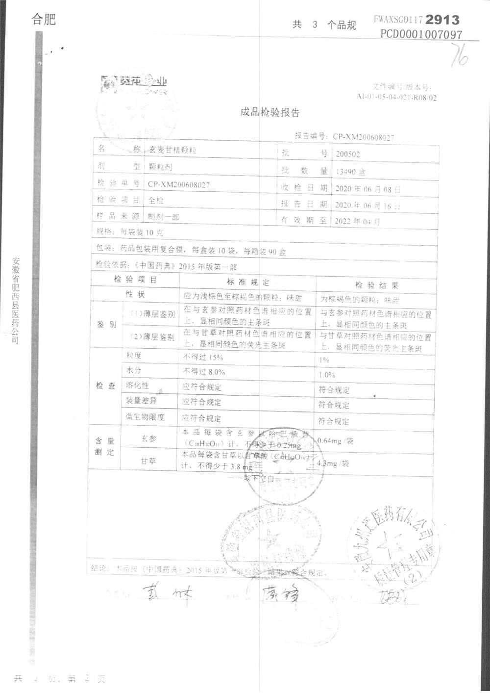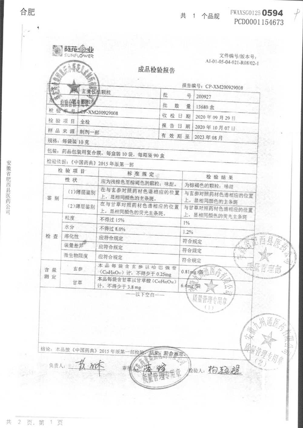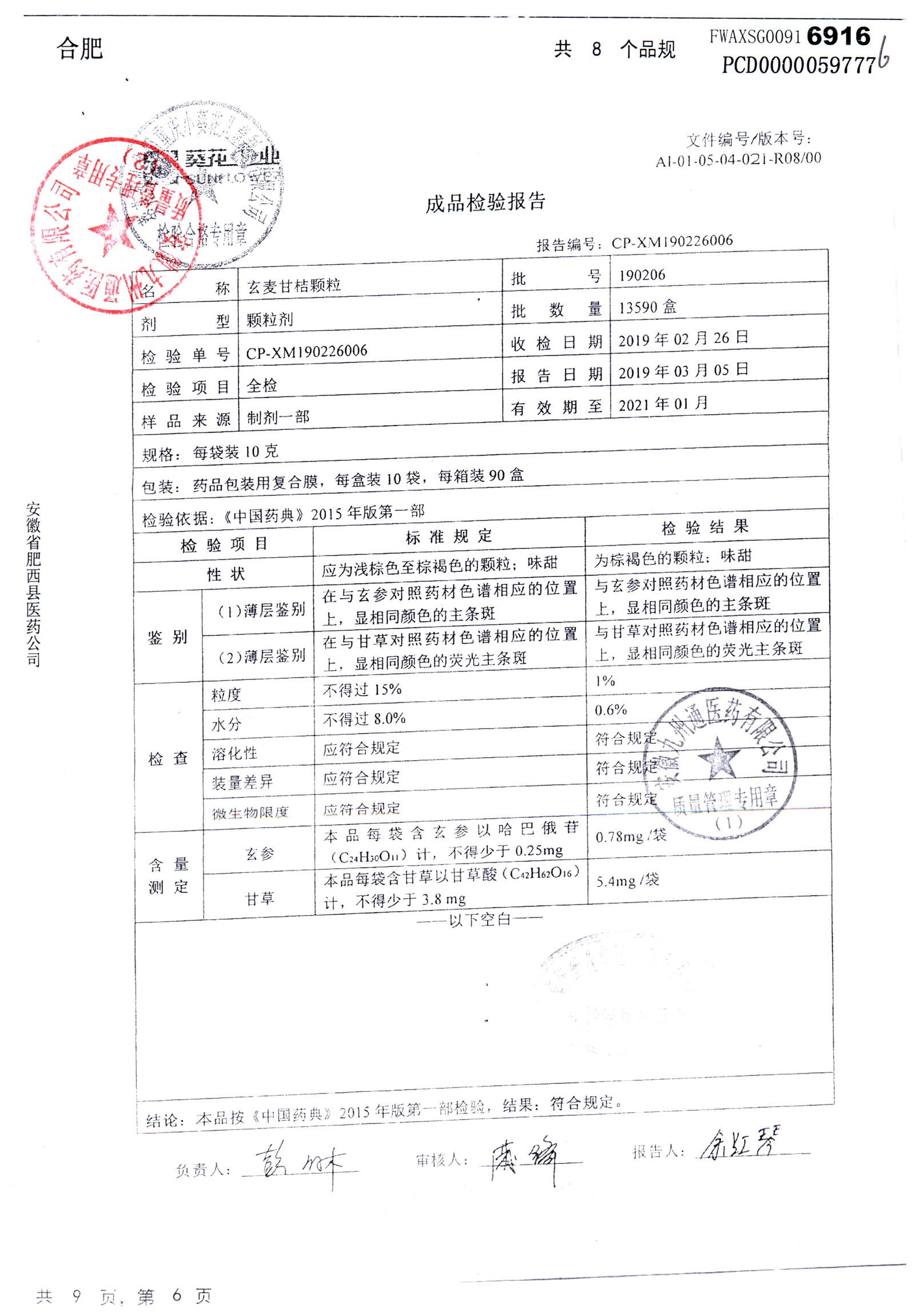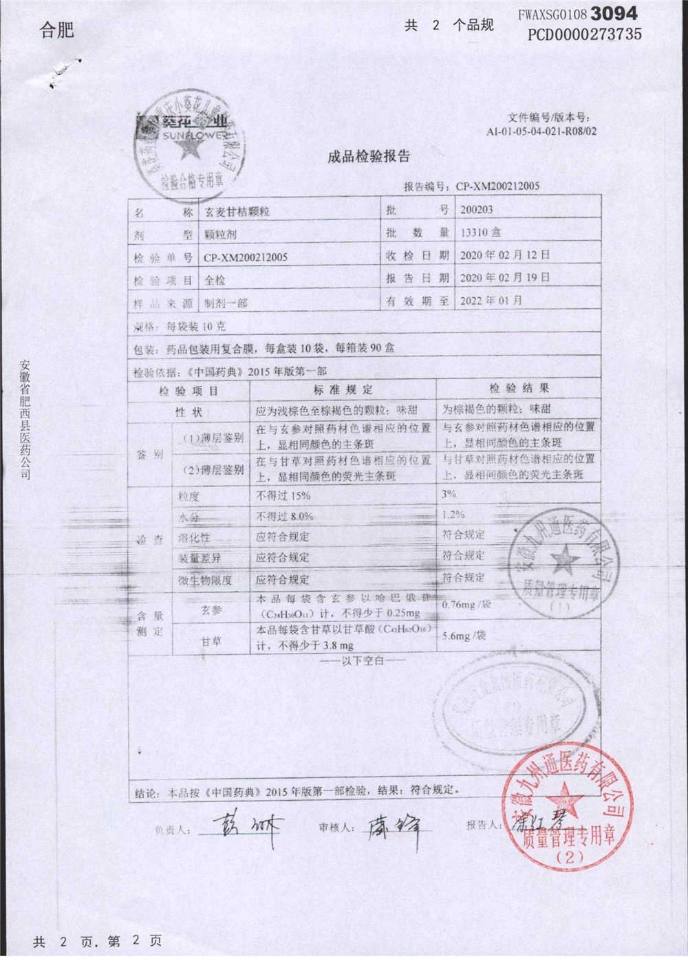 玄麦甘桔颗粒 | 10g*10袋 | 210307 | 查看详情 |