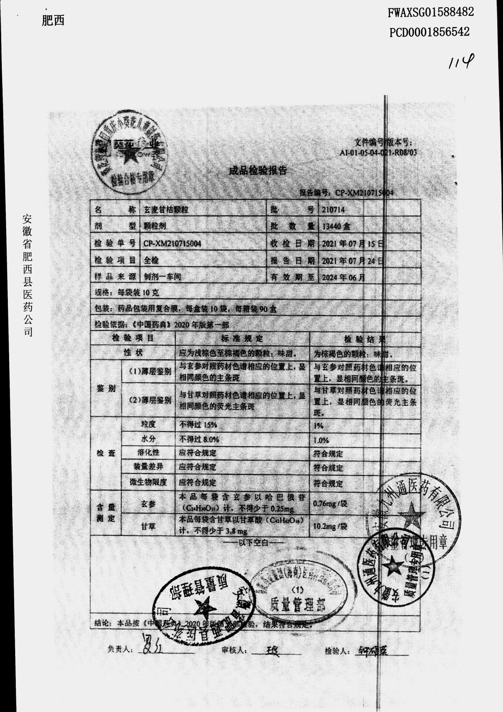 玄麦甘桔颗粒 | 10g*10袋 | 210714 | 查看详情 |