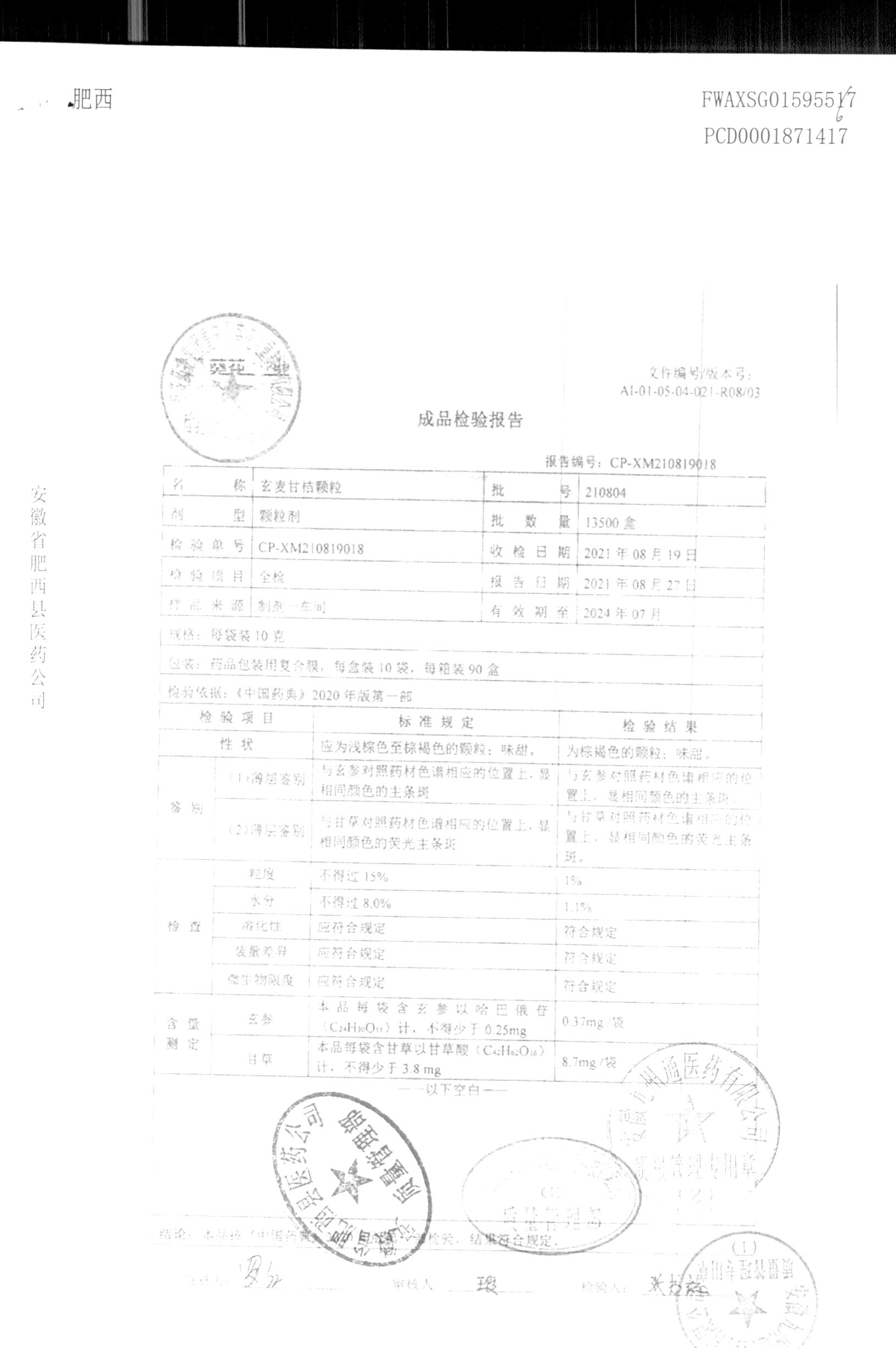 玄麦甘桔颗粒 | 10g*10袋 | 210804 | 查看详情 |