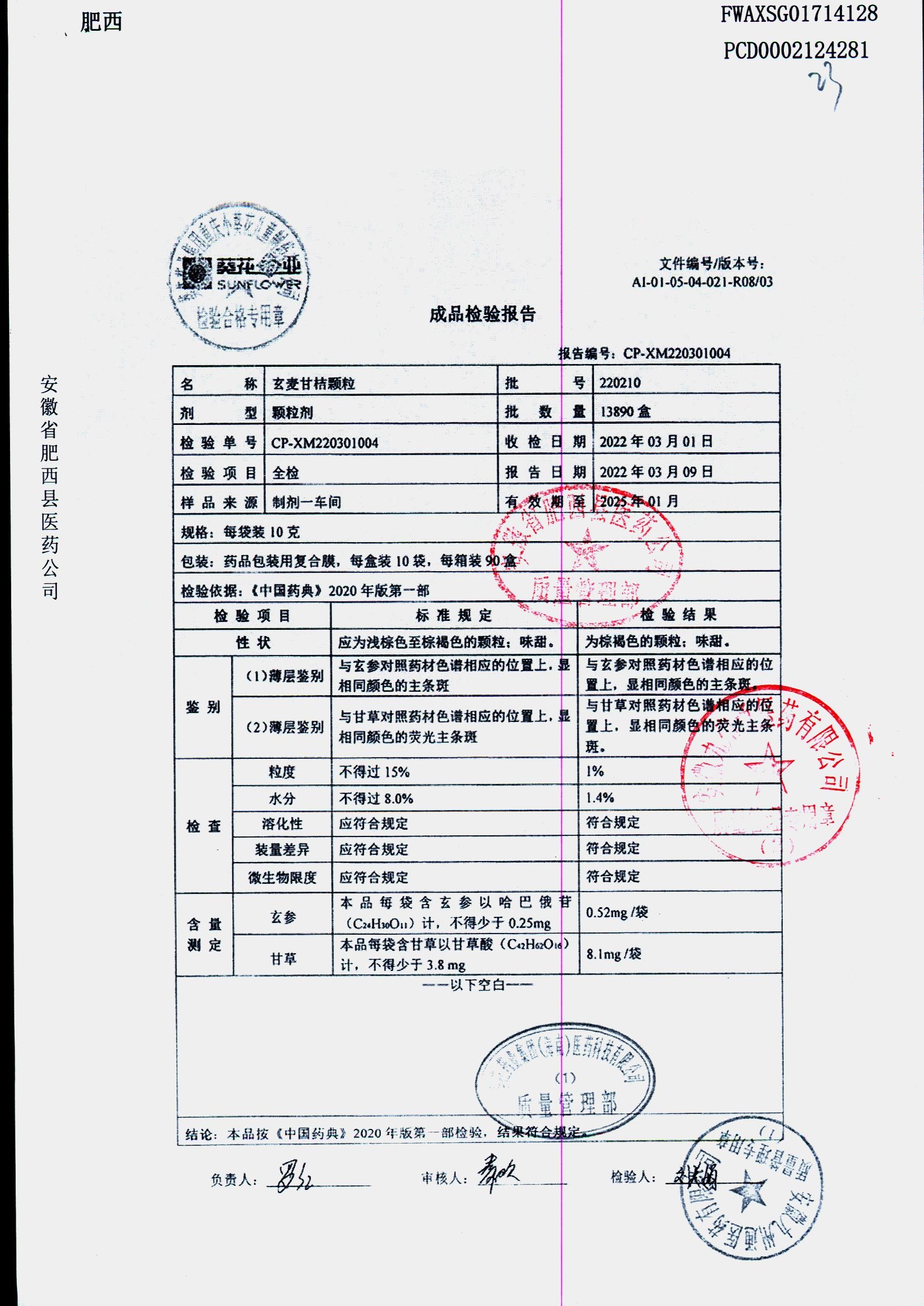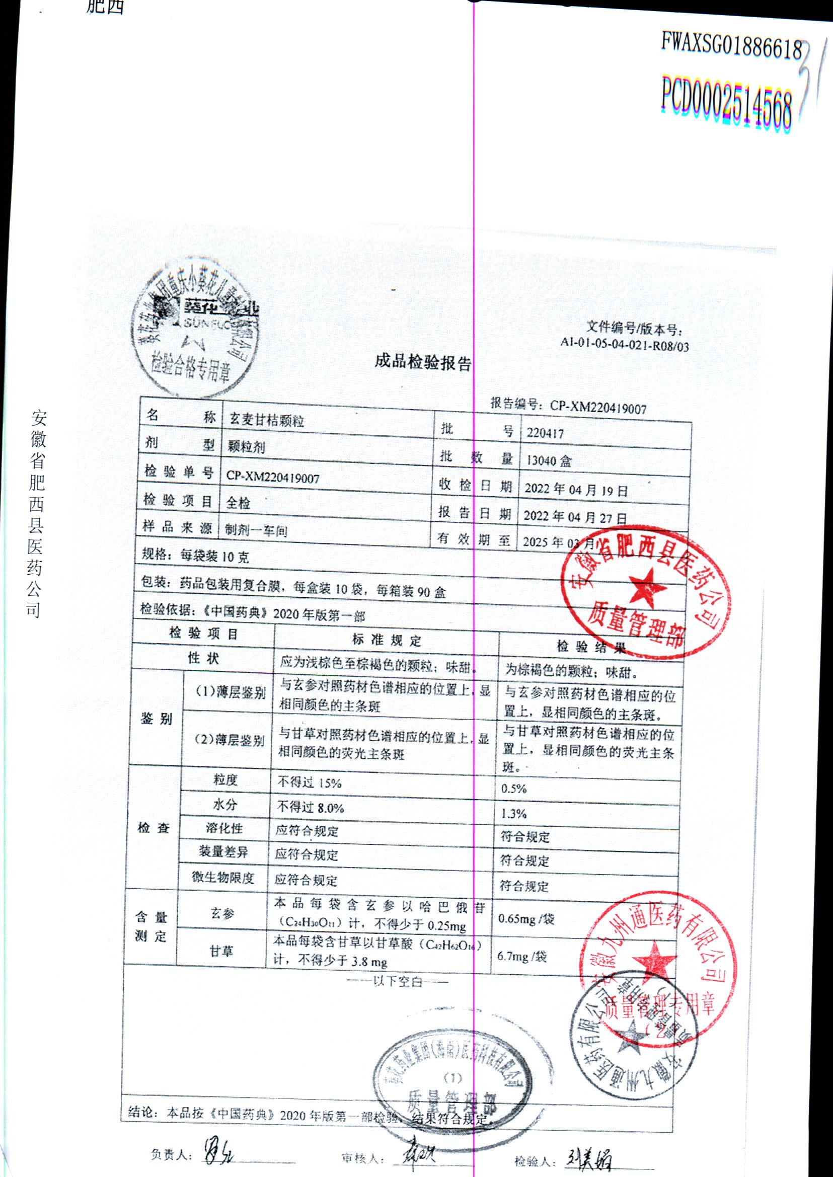 玄麦甘桔颗粒 | 10g*10袋 | 220417 | 查看详情 |