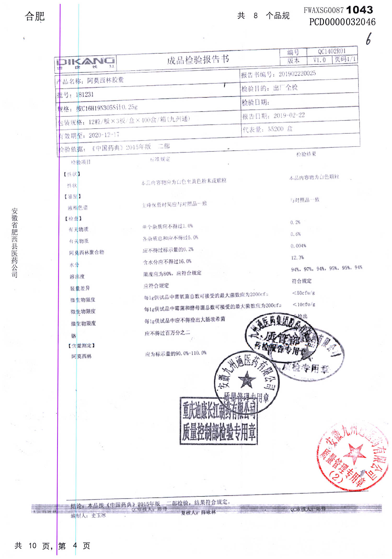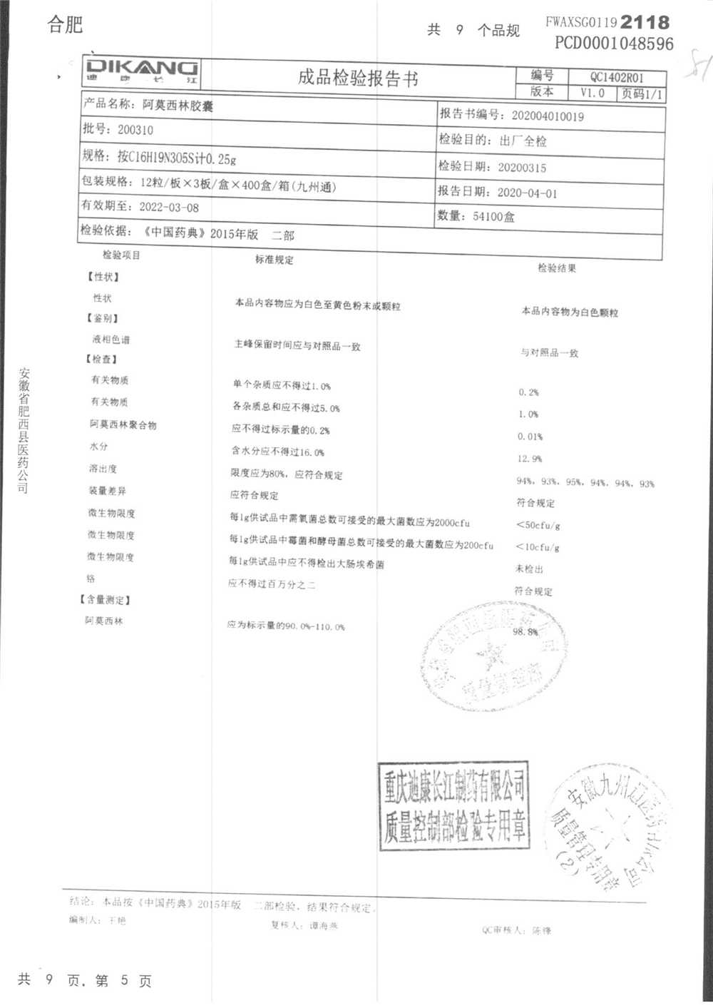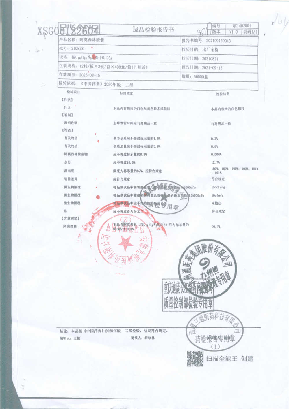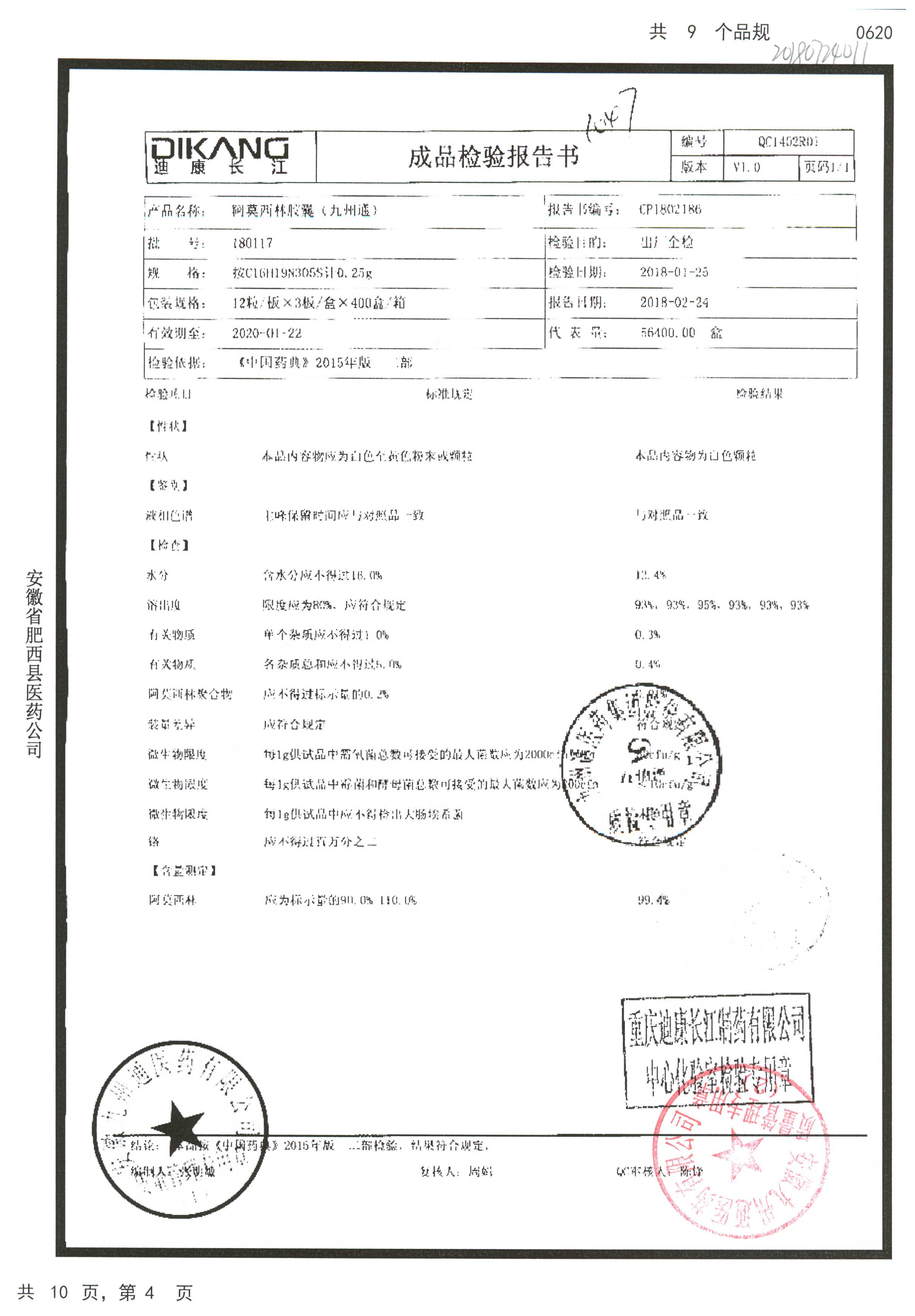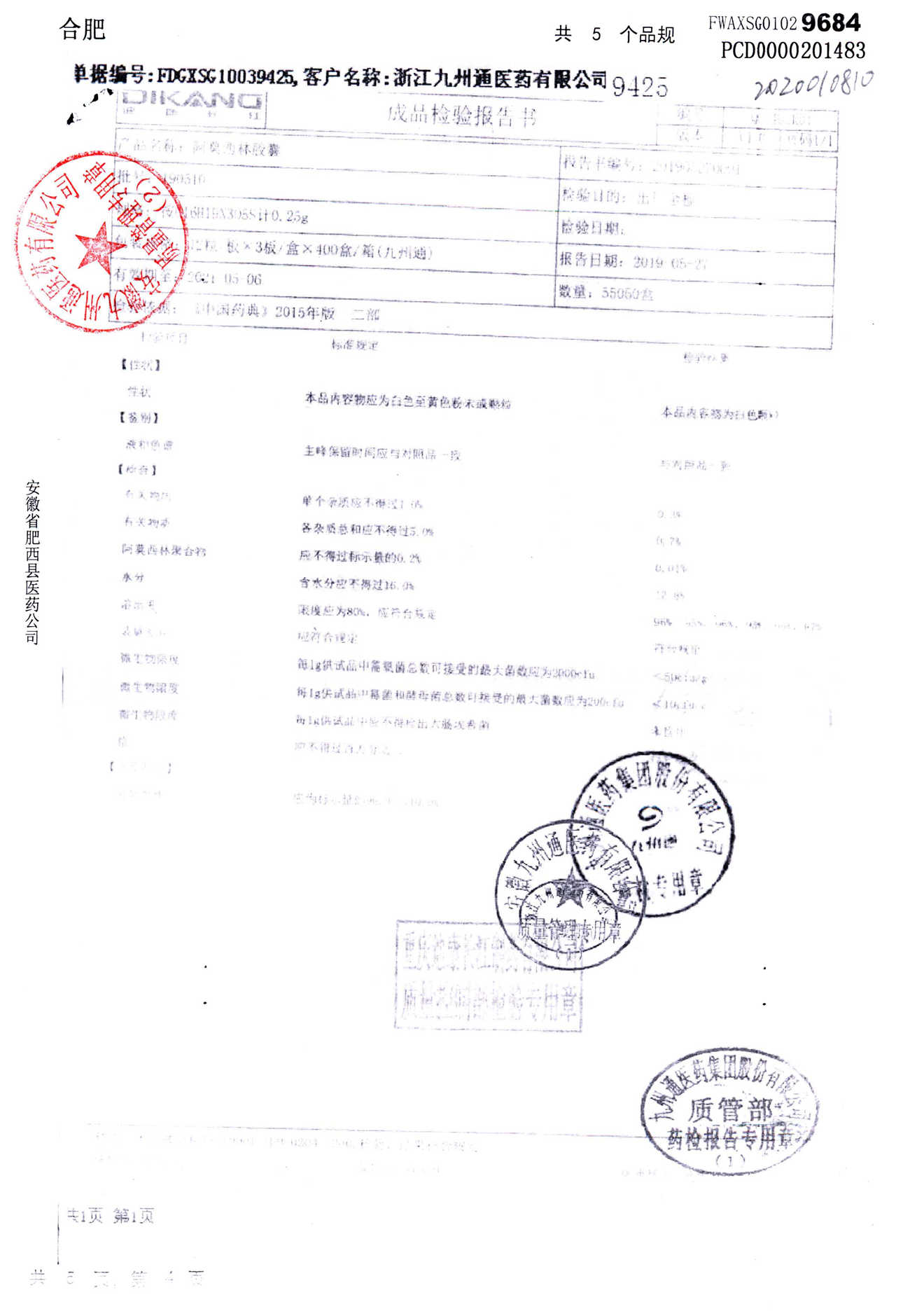 阿莫西林胶囊 | 0.25g*36粒 | 190510 | 查看详情 |